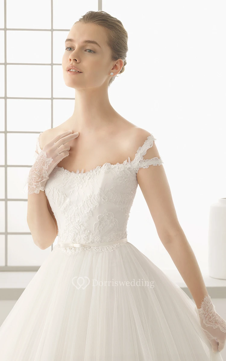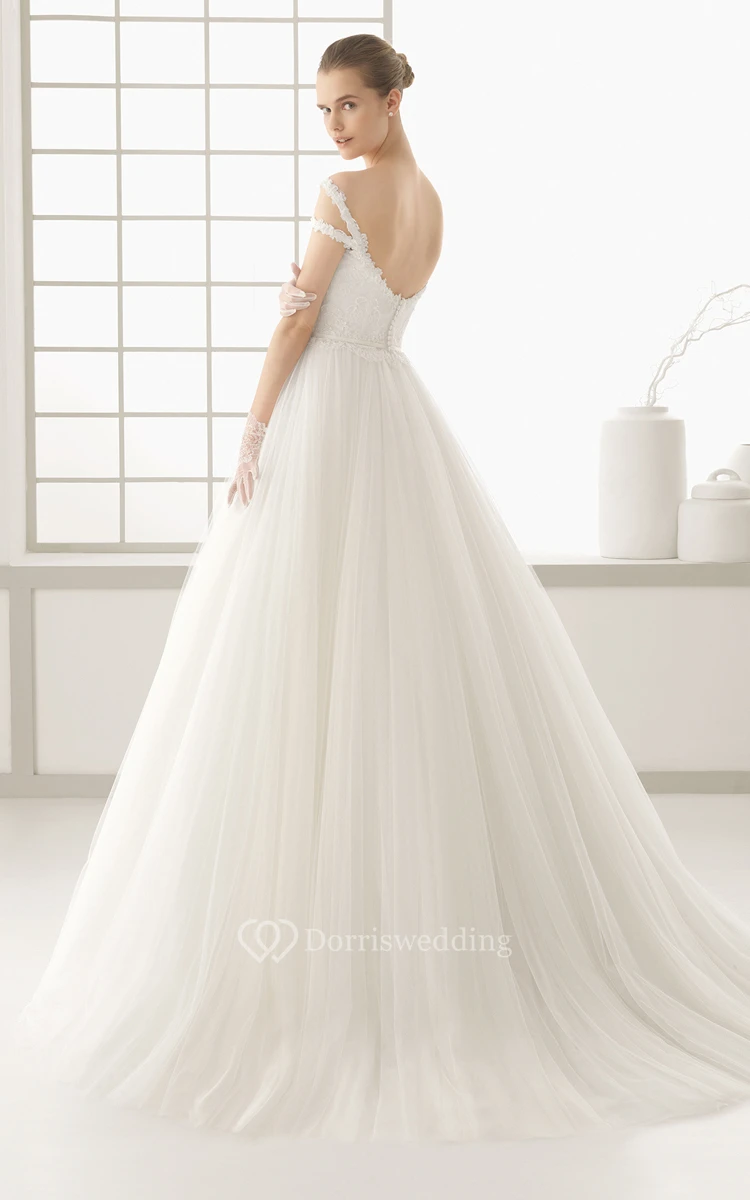 Embroidery Bodice Shoulder Off Gown With Pleats