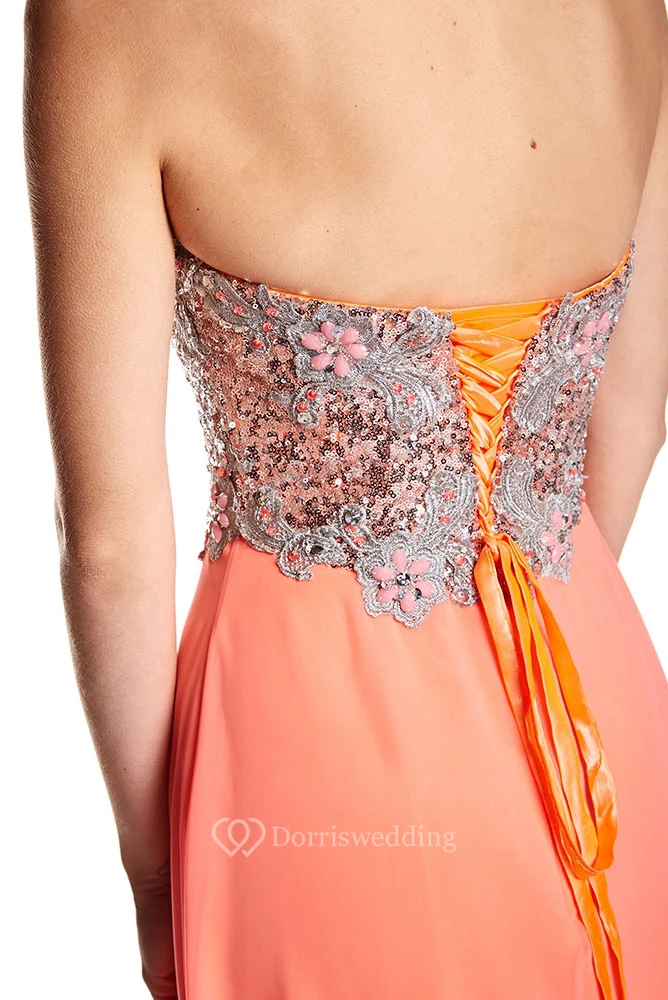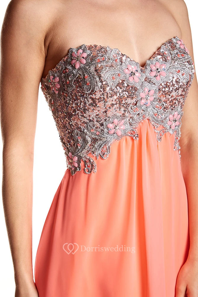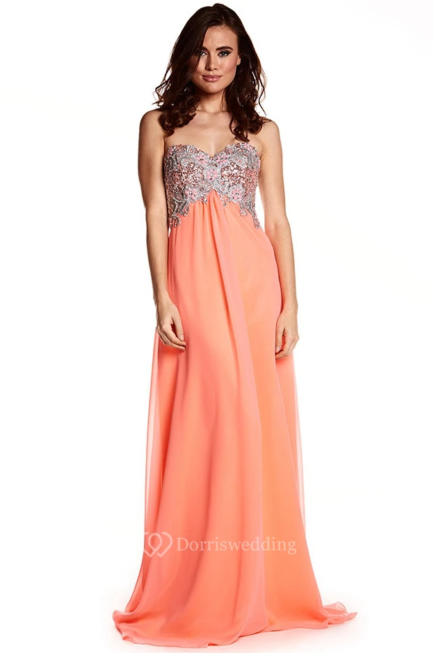 Empire Beaded Strapless Chiffon Prom Dress With Brush Train