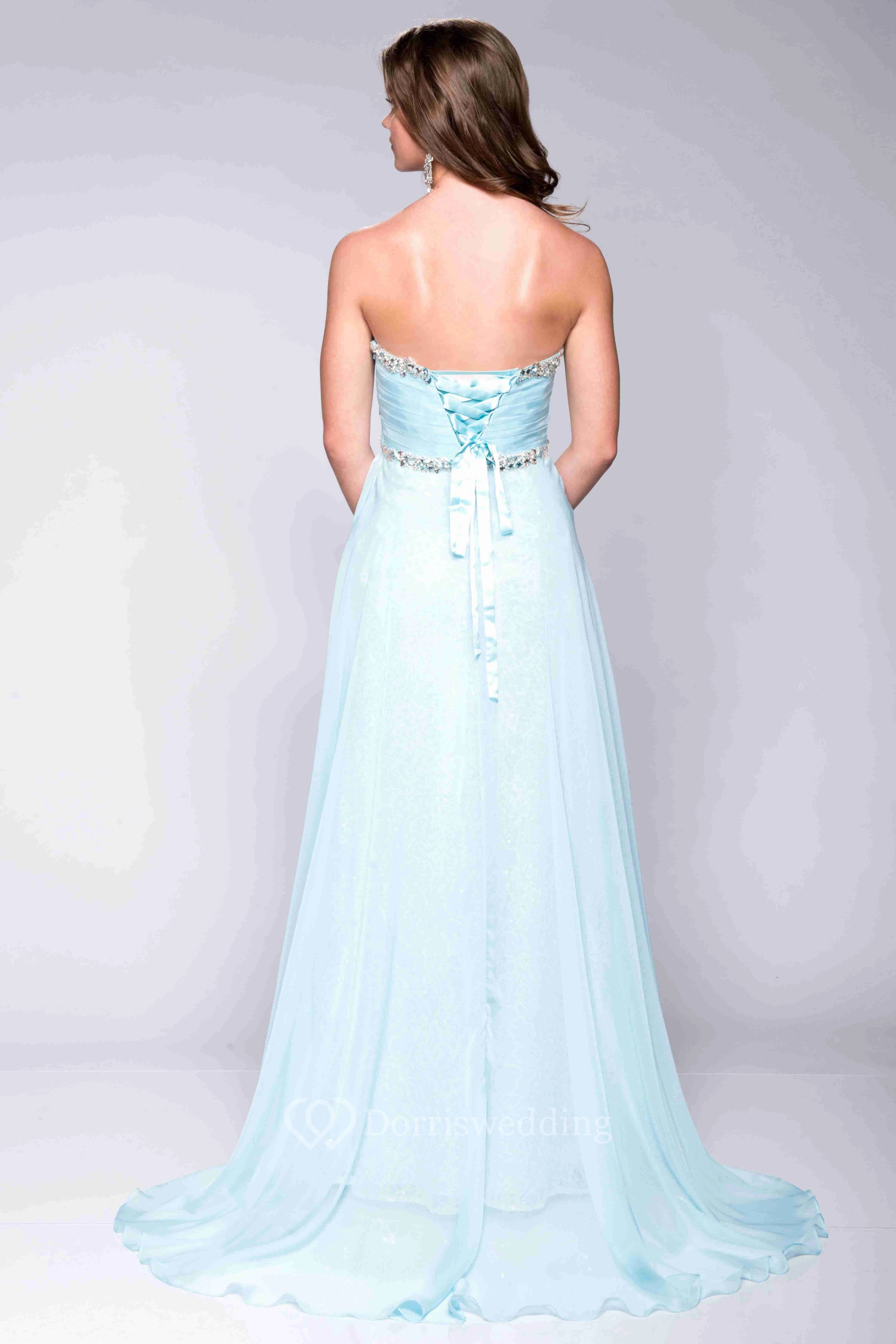 Empire Column Chiffon Sweetheart Prom Dress With Jeweled Top