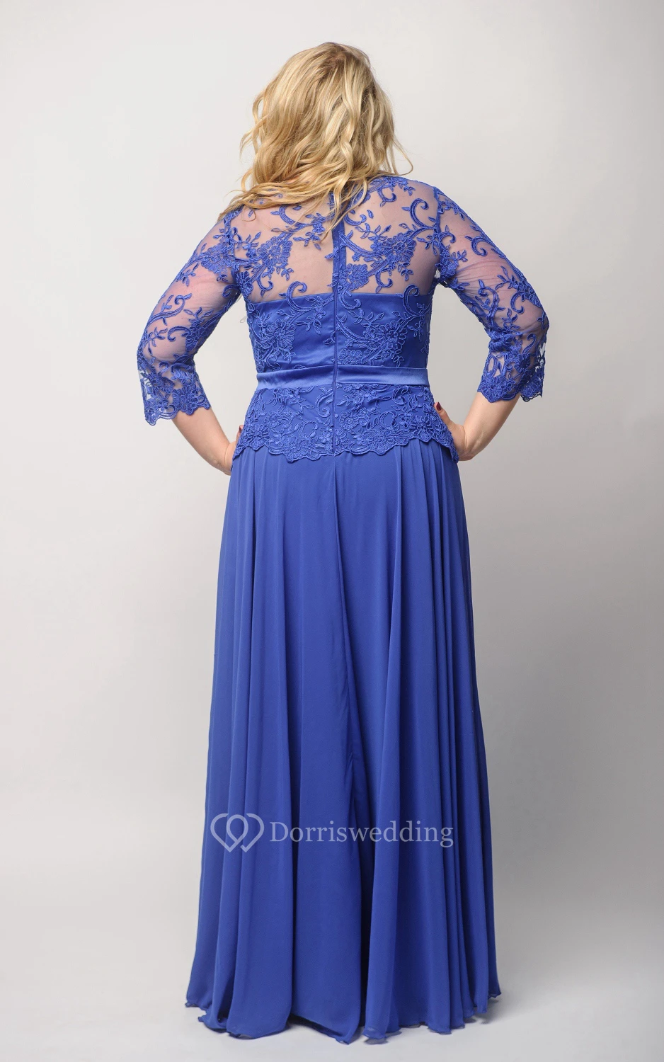 Empire Floor-Length Bateau 3 Empire Chiffon Lace Illusion Dress