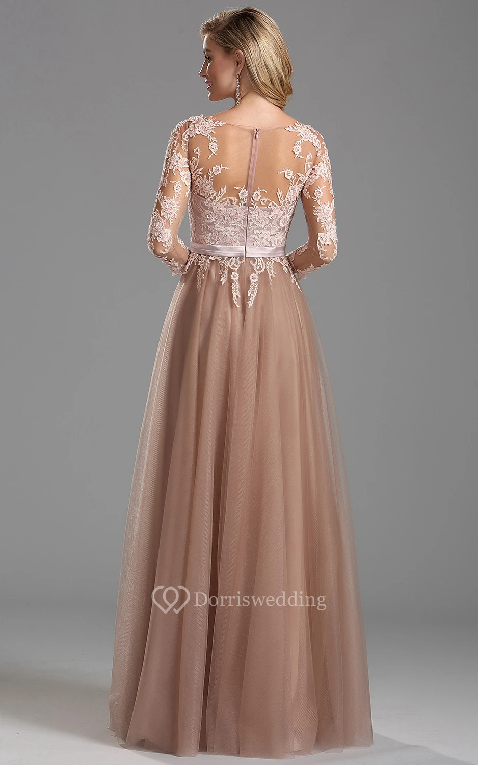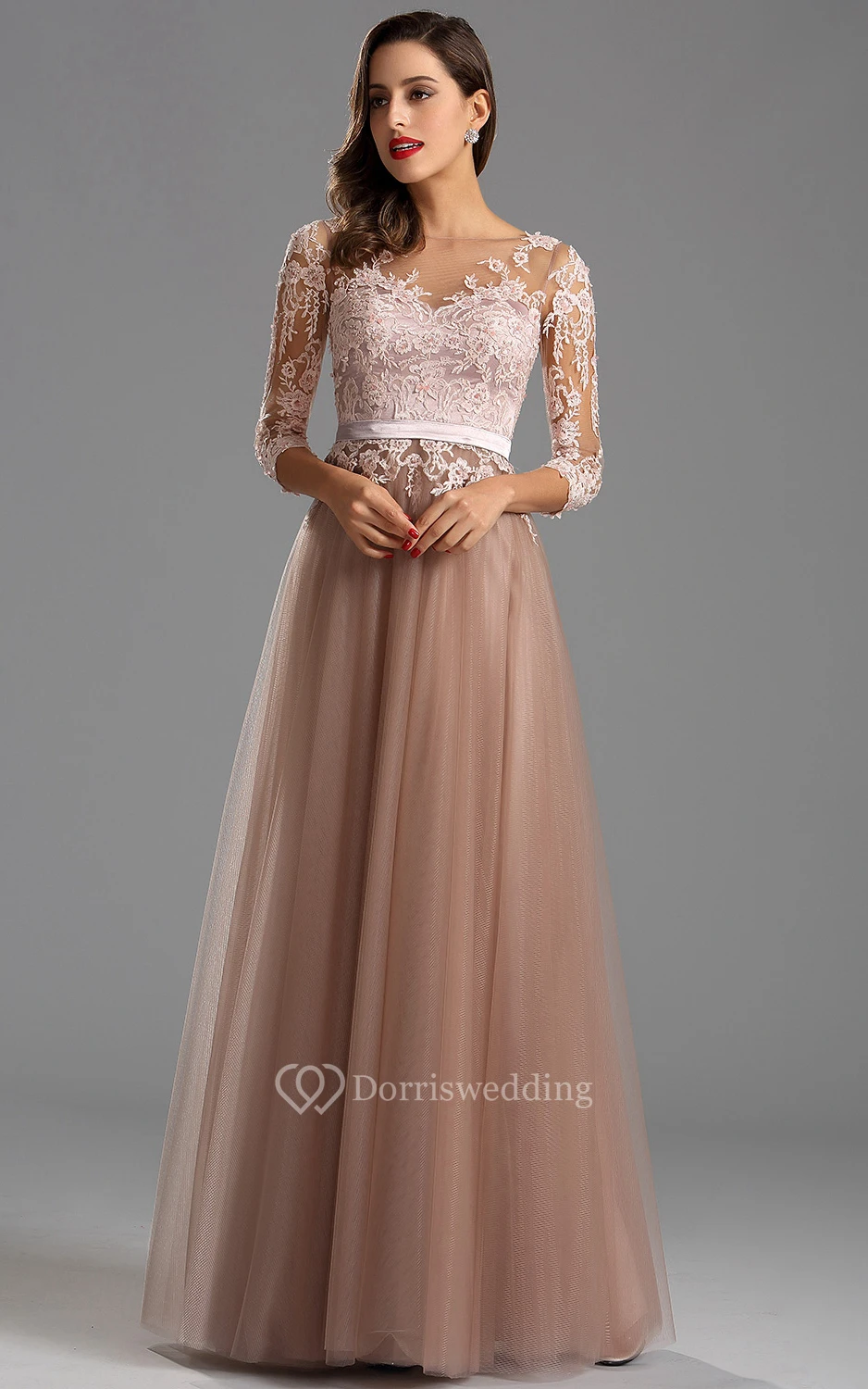 Empire Floor-Length Bateau 3 Empire Tulle Appliques Zipper Dress