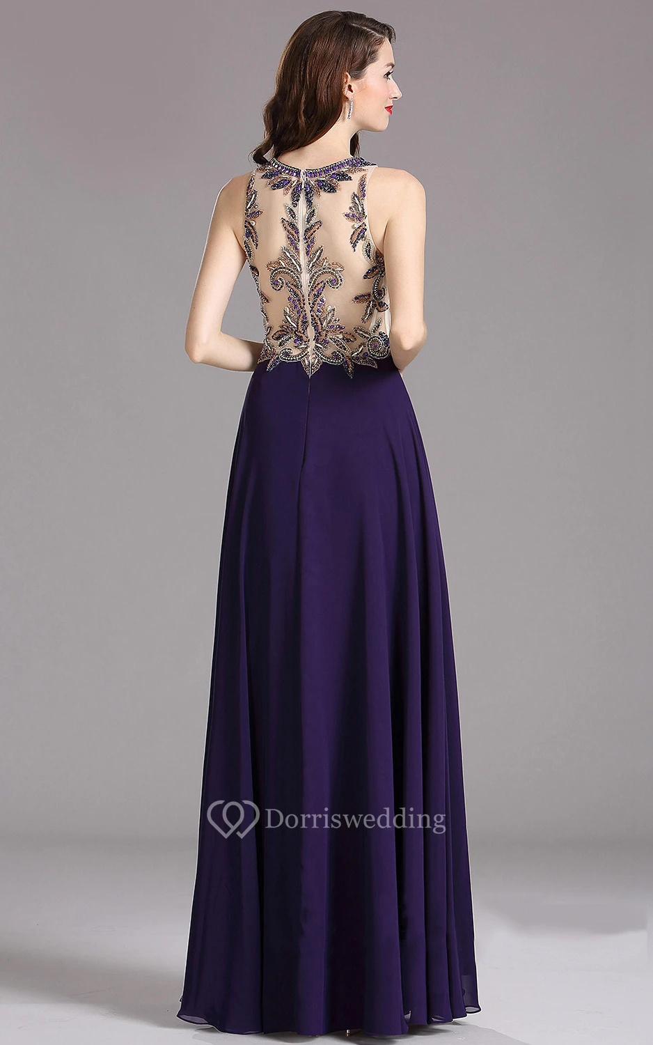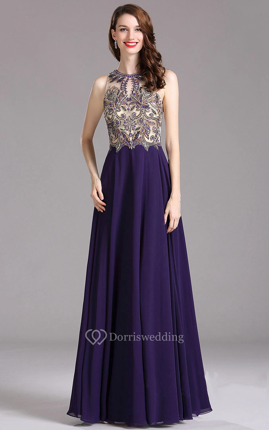 Empire High-Neck Sleeveless Empire Chiffon Beading Illusion Dress
