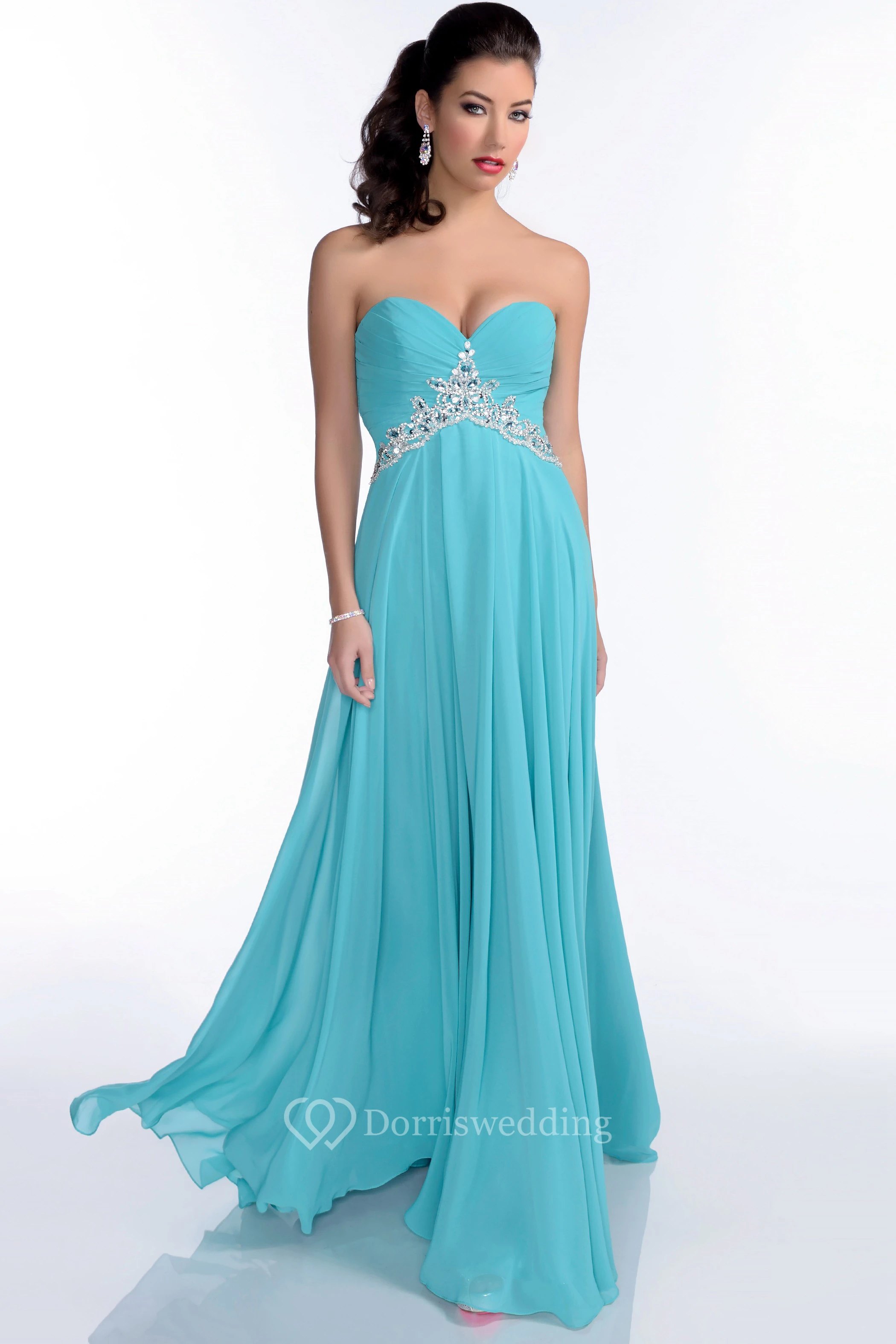 Empire Long Chiffon A-Line Prom Dress With Crystal Detailing