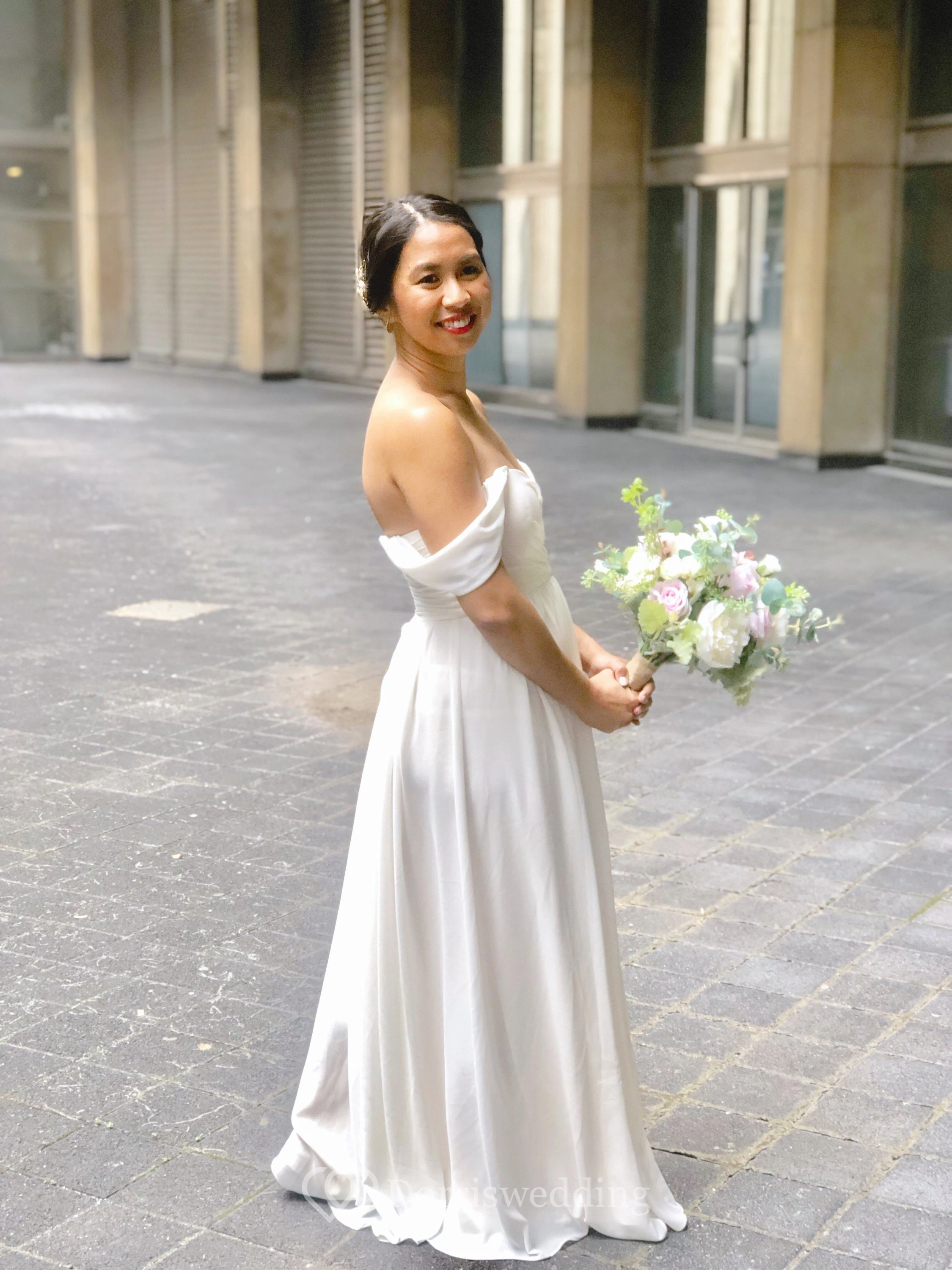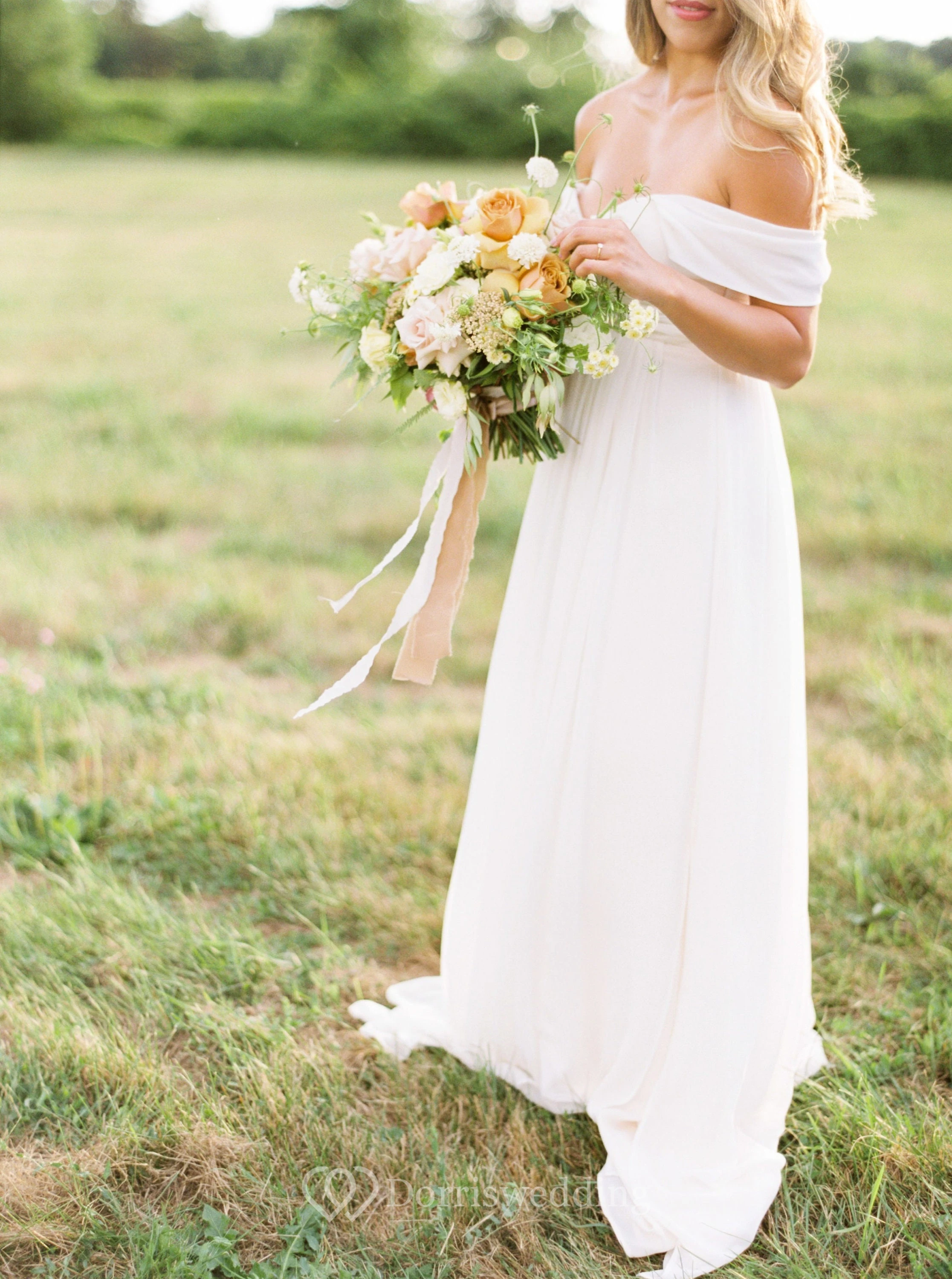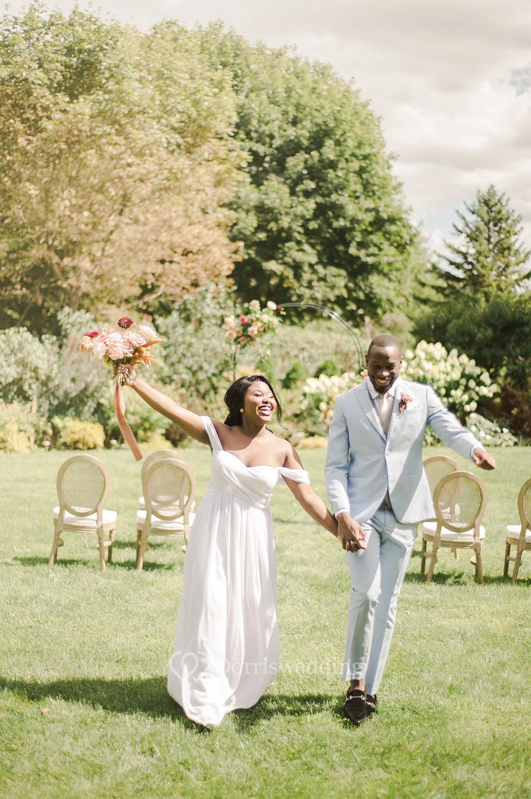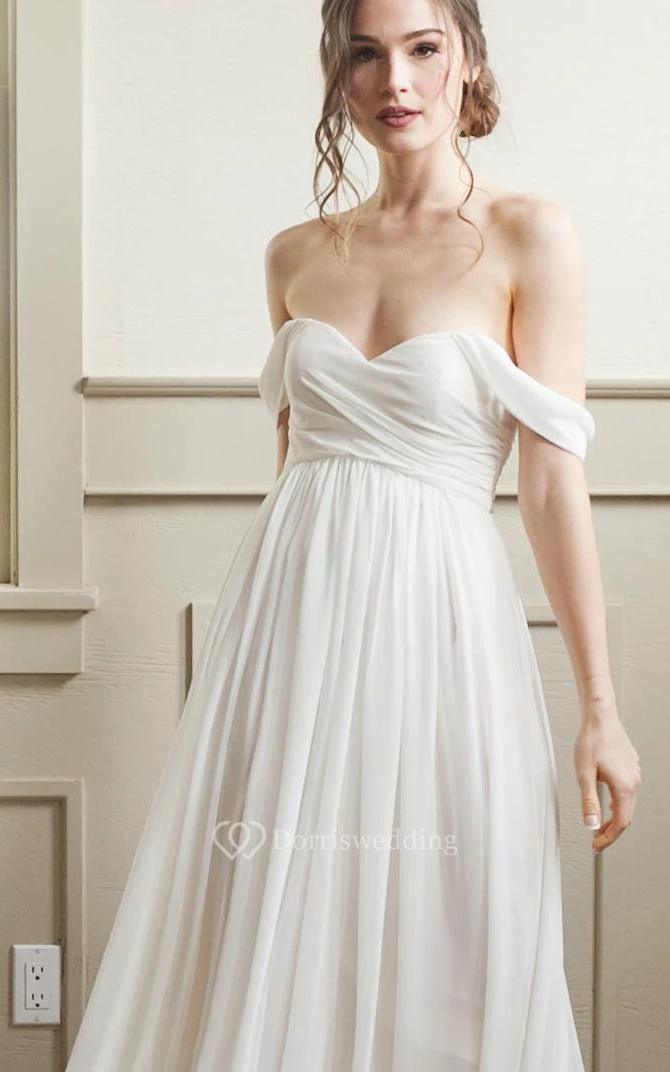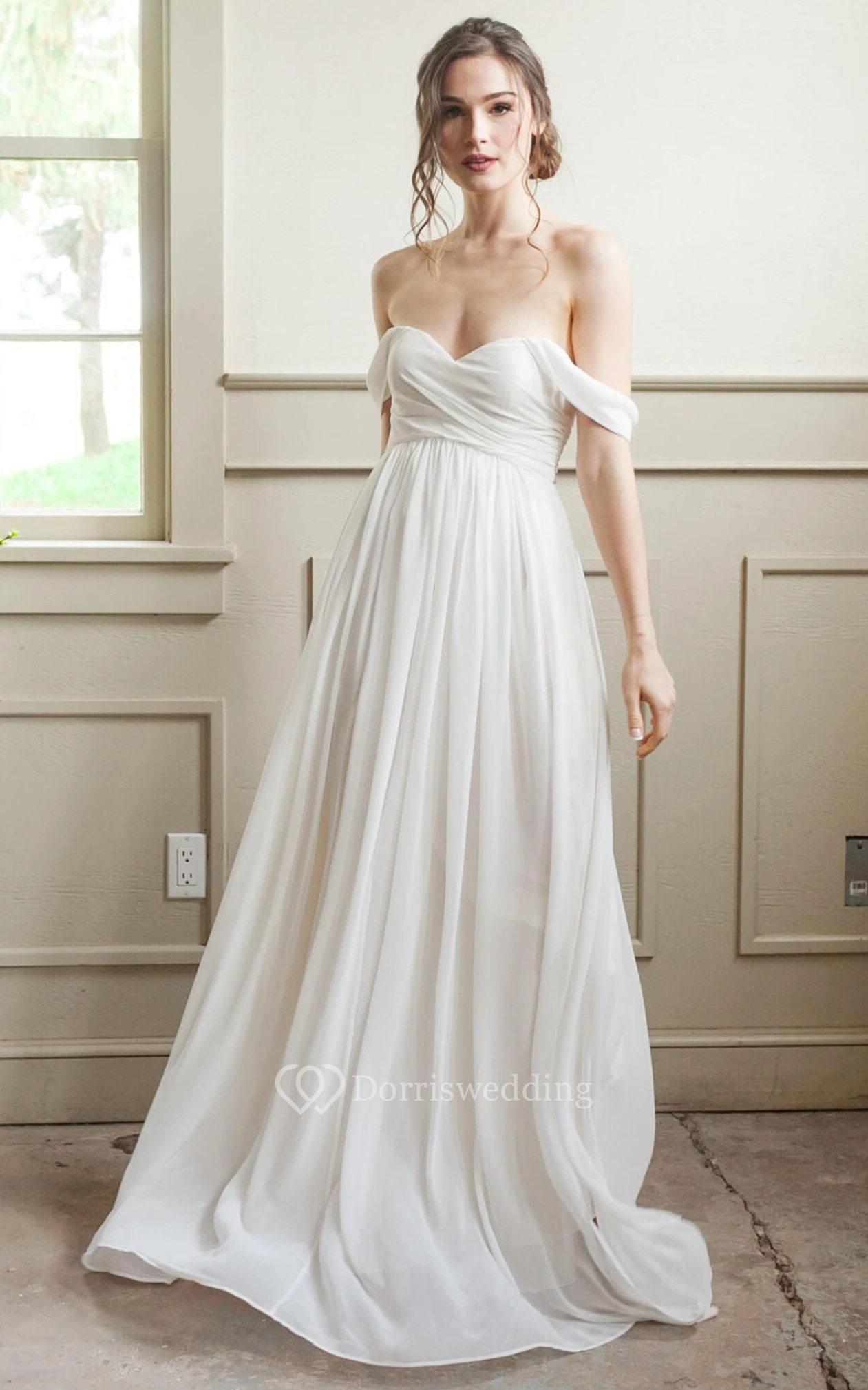 Empire Off-the-shoulder Chiffon Simple Garden Wedding Dress