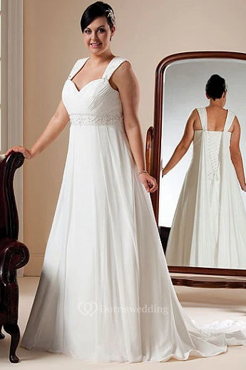 Empire Plus Size A-Line Bridal Gown With Lace Up And Straps