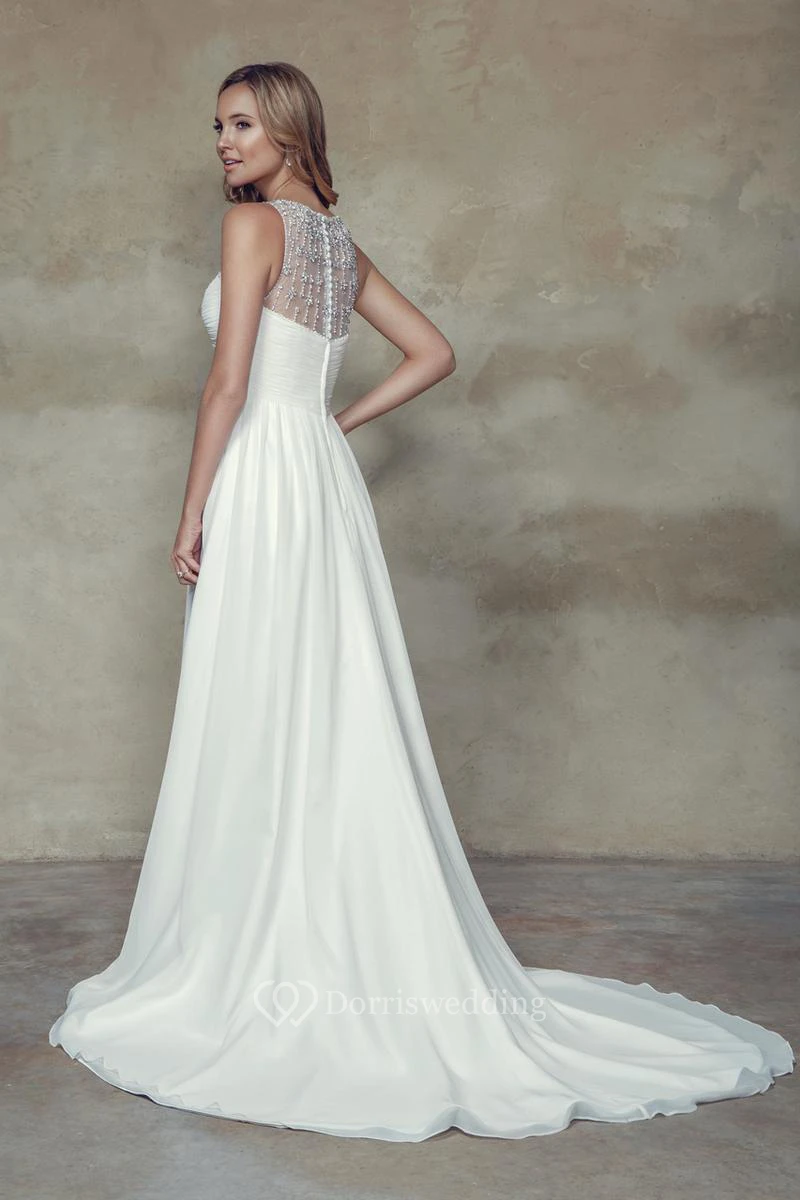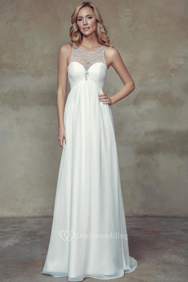 Empire Ruched Sleeveless Scoop Neck Chiffon Beach Wedding Dress
