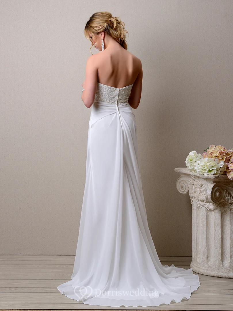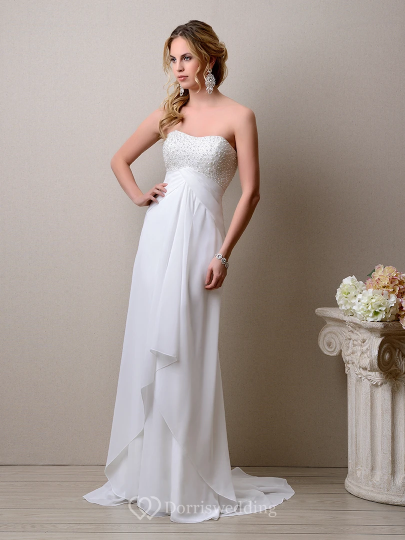 Empire Sleeveless A-Line Chiffon Wedding Dress With Bust Pearls