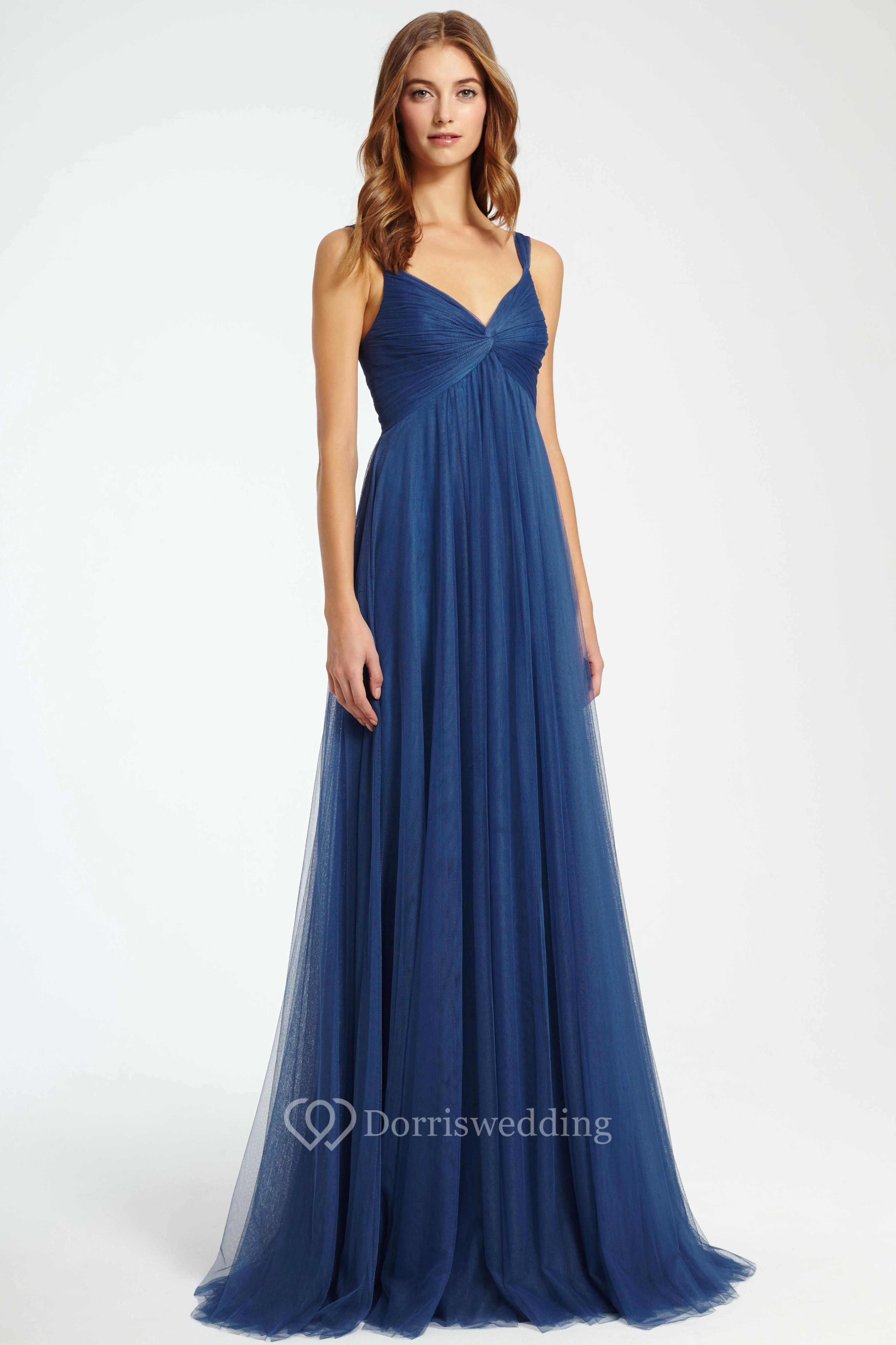Empire Sleeveless Strapped Ruched Tulle Bridesmaid Dress With Pleats