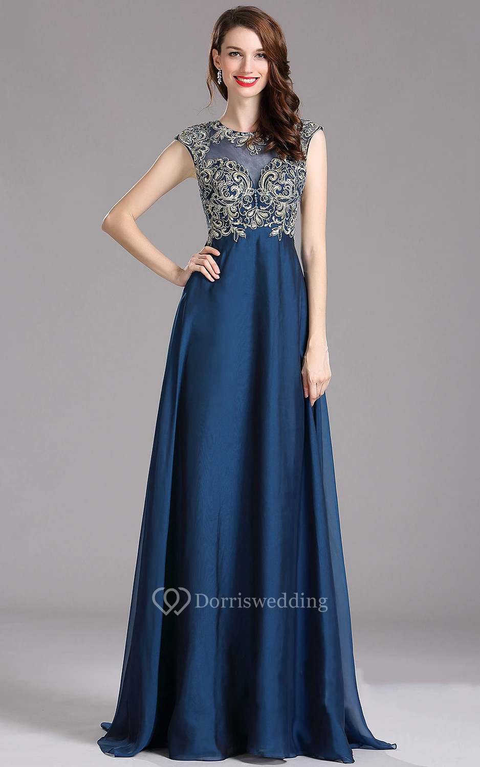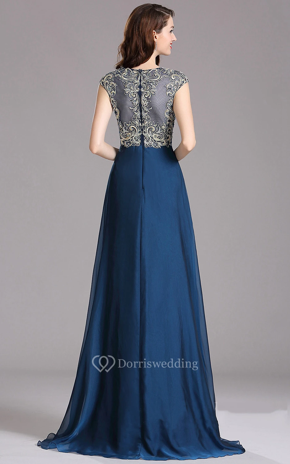 Empire Sweep Bateau Short Sleeve Empire Taffeta Appliques Zipper Dress