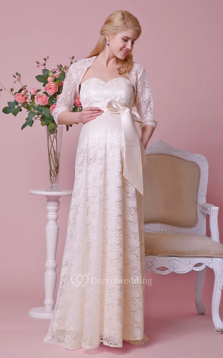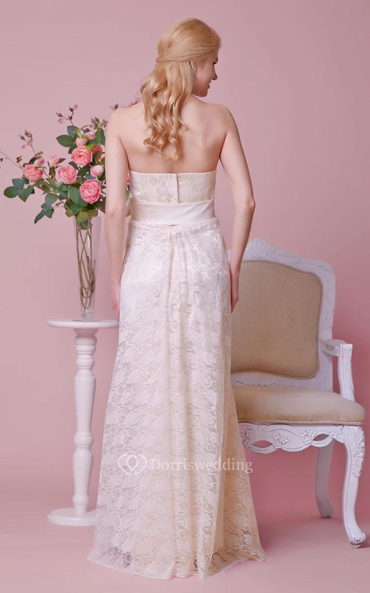 Empire Sweetheart A-line Lace Long Dress With Sash