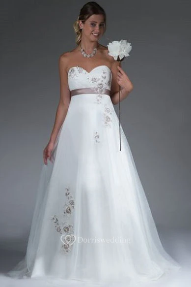 Empire Sweetheart A-Line Tulle Bridal Gown With Applique And Sash