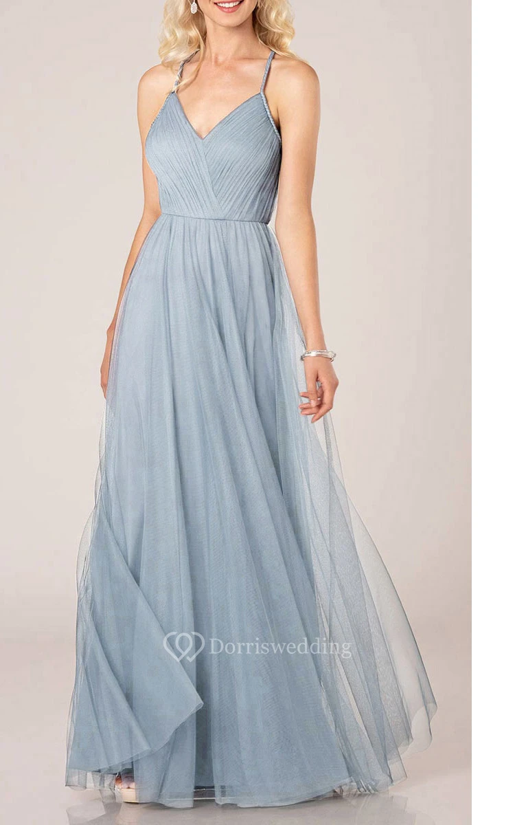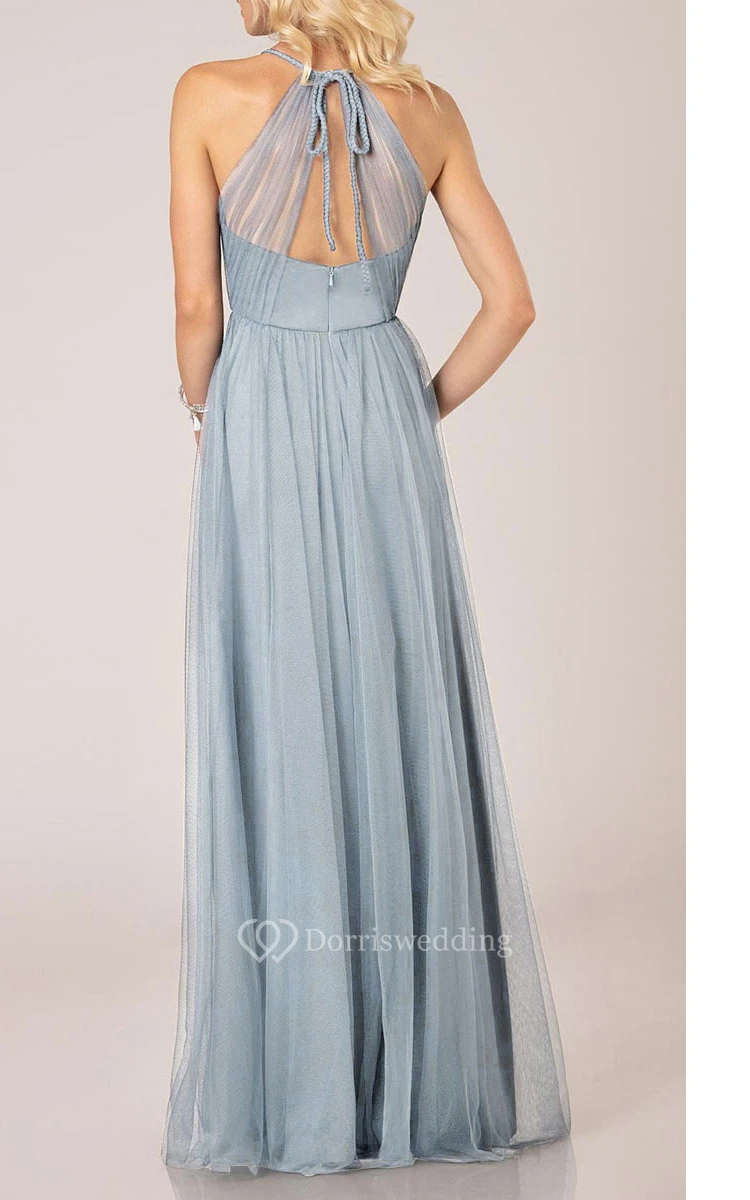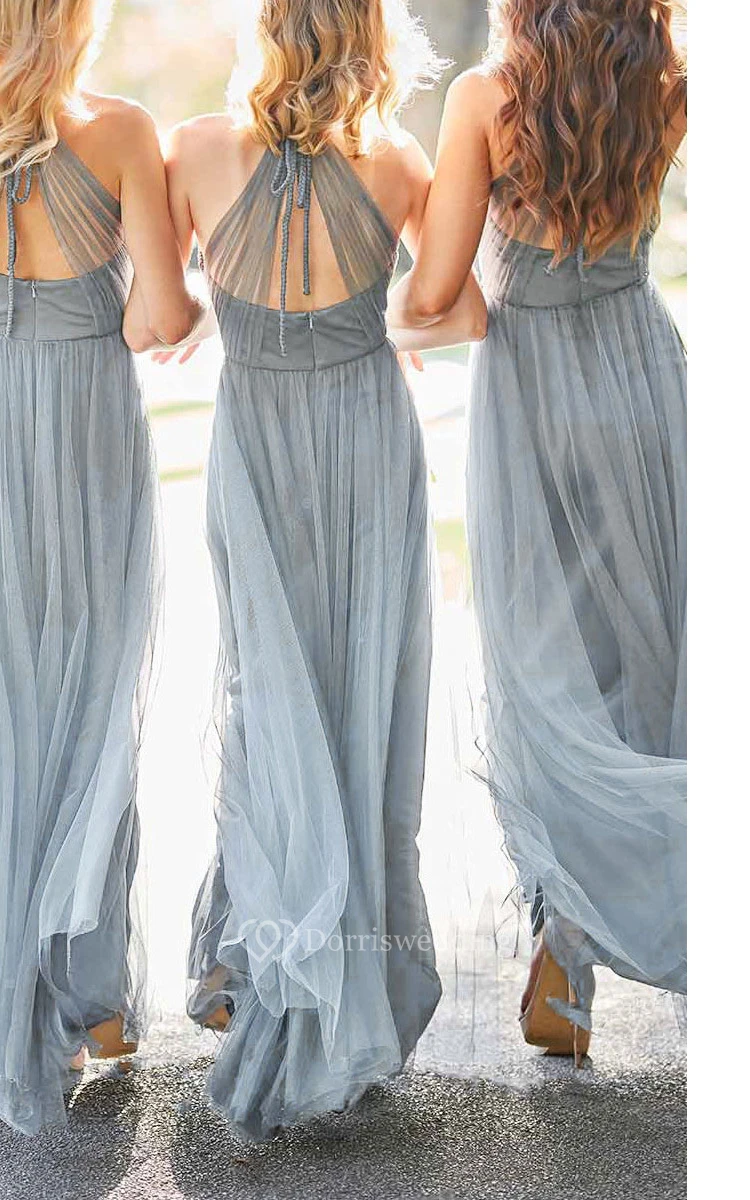 Empire V-Neck Sleeveless Floor-length Bridesmaid dress with Crisscross and Halter