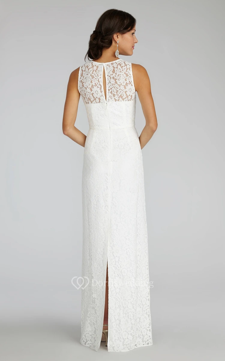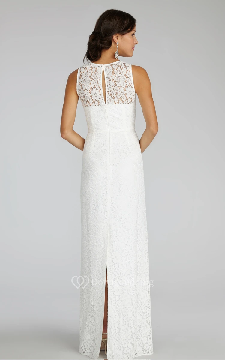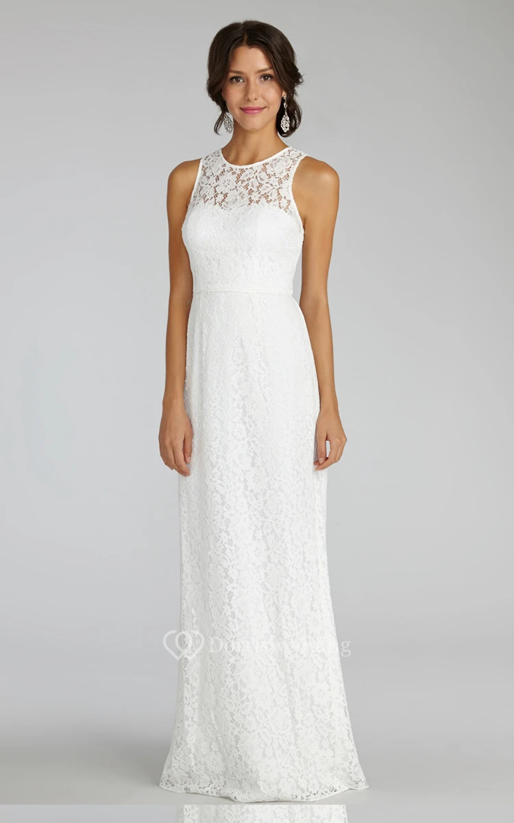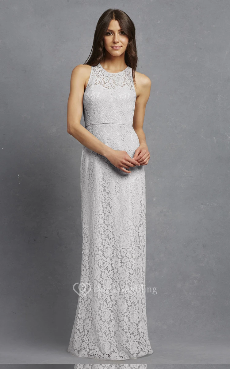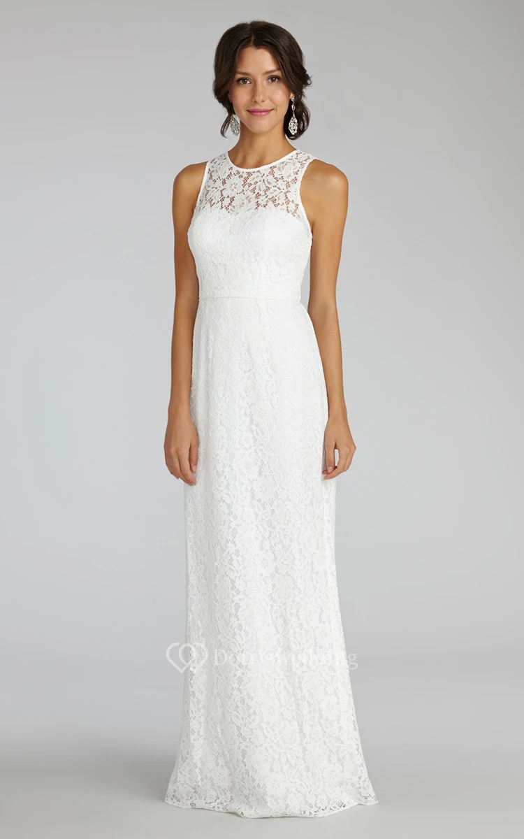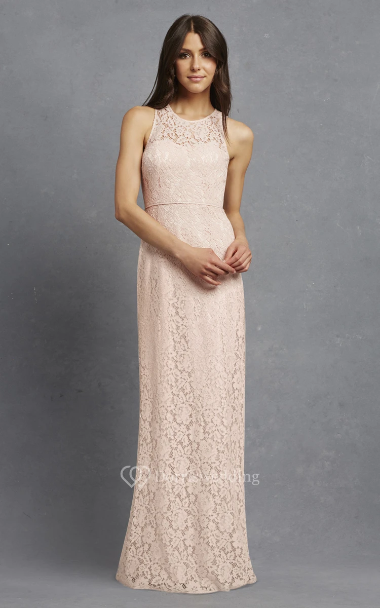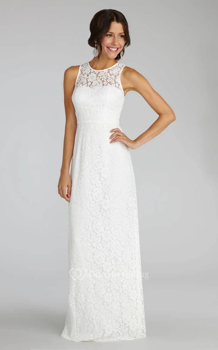 Enchanting Sleeveless Floor-length Lace Dress with Keyhole Back and Jewel Neck