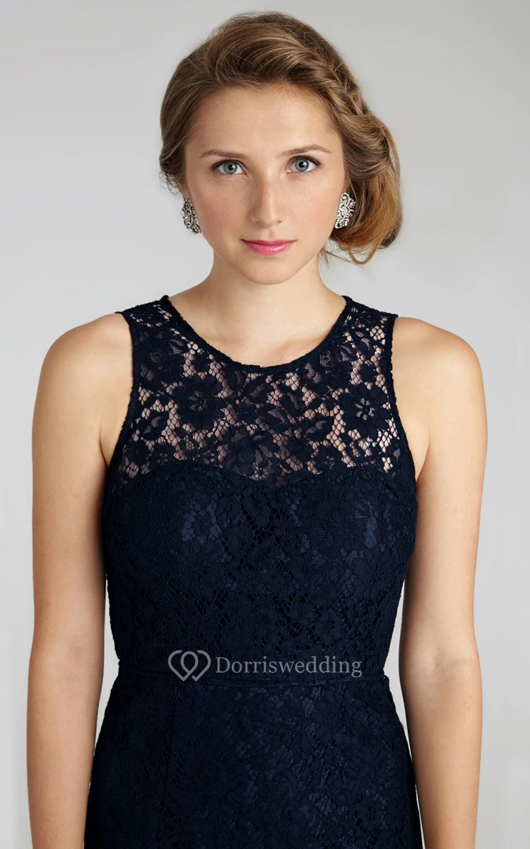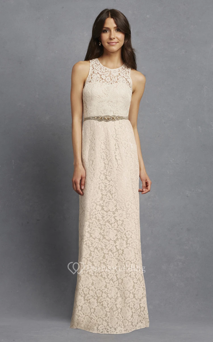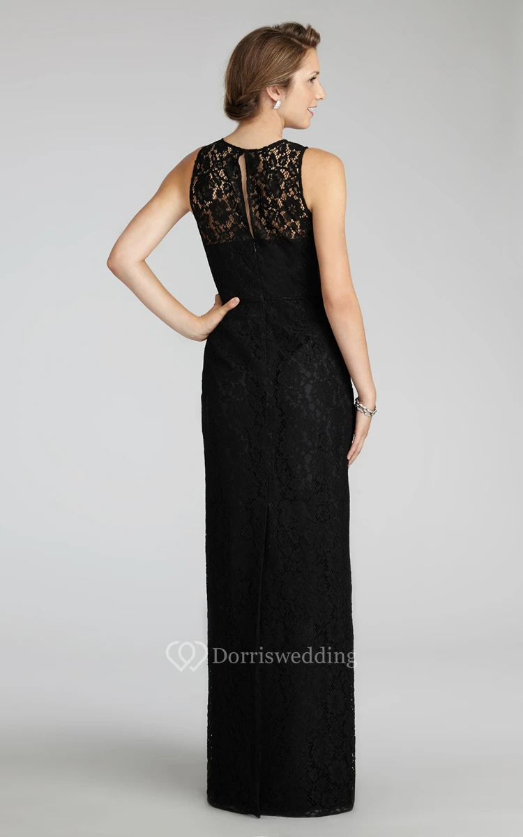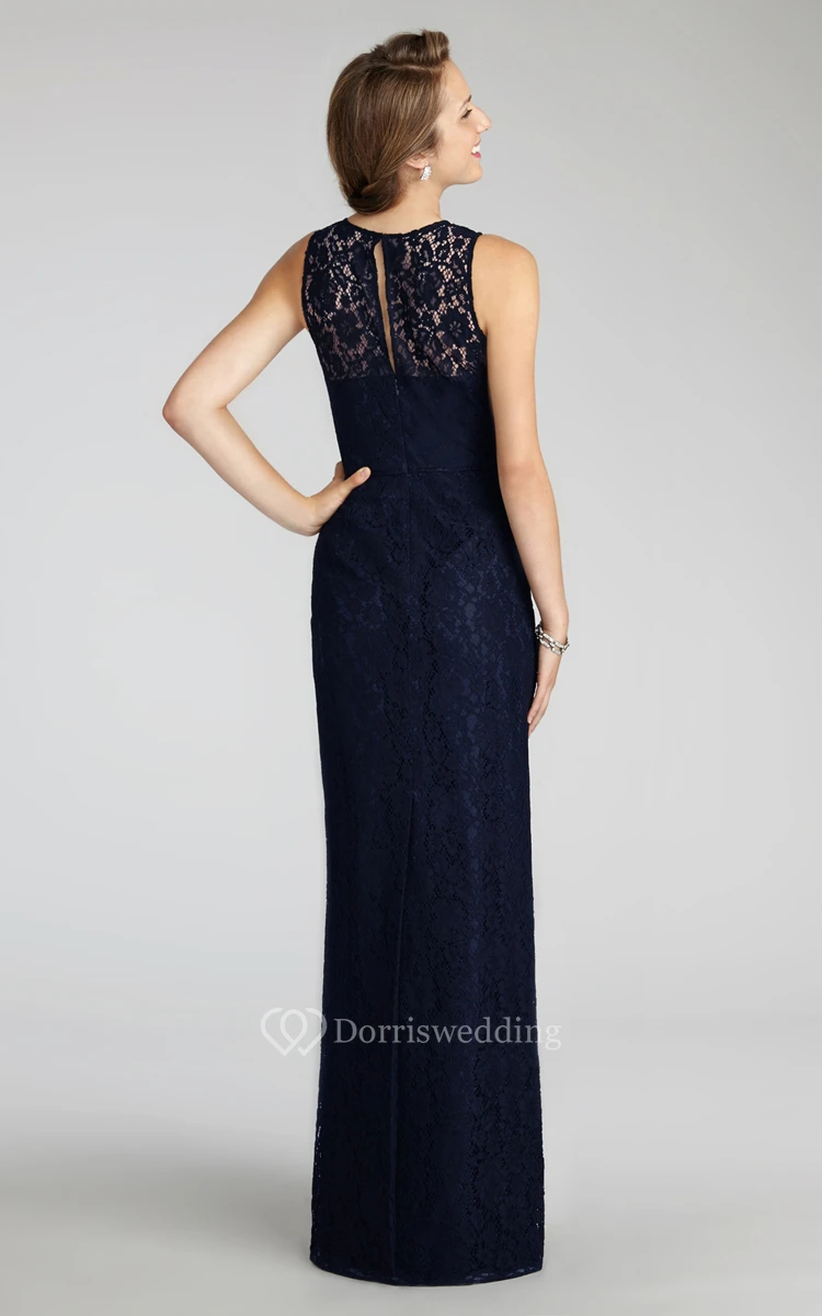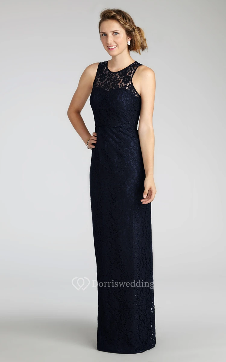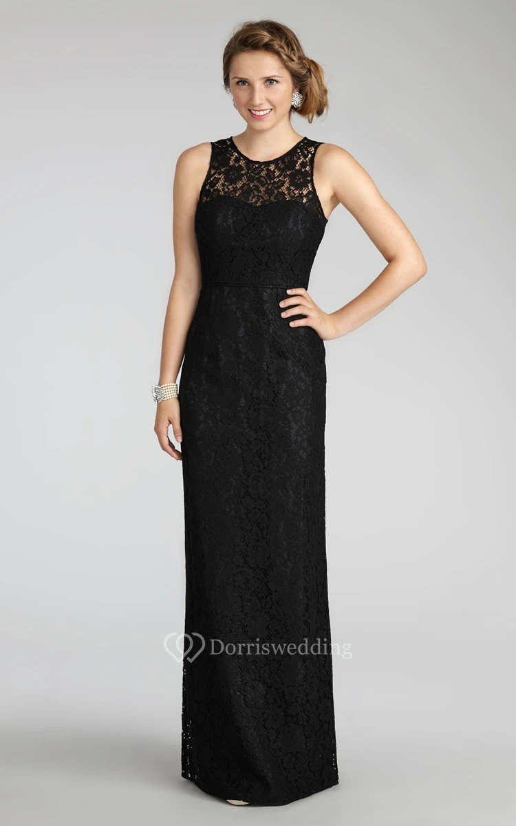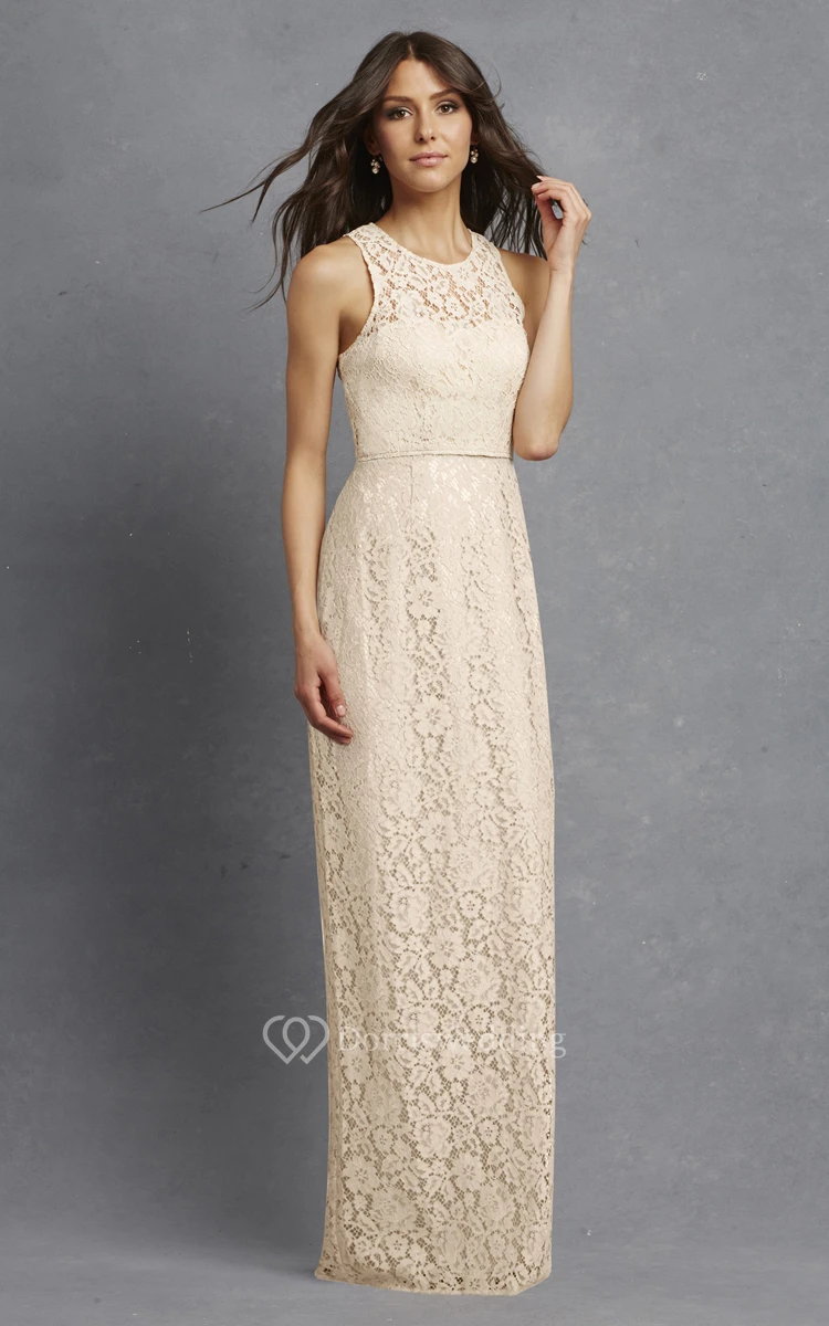 Enchanting Sleeveless Floor-length Lace Dress with Keyhole Back and Jewel Neck