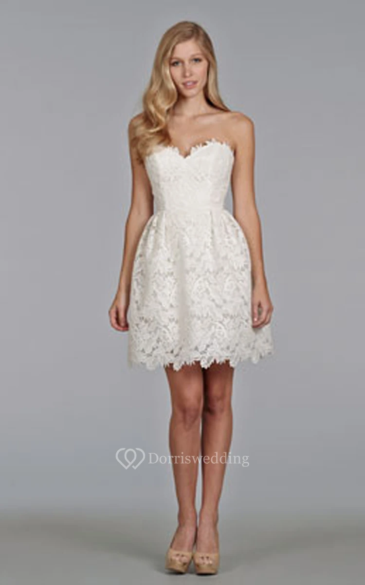 Enchanting Sweetheart Neckline Mini Lace Dress