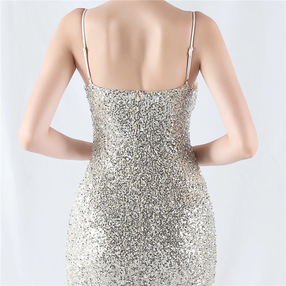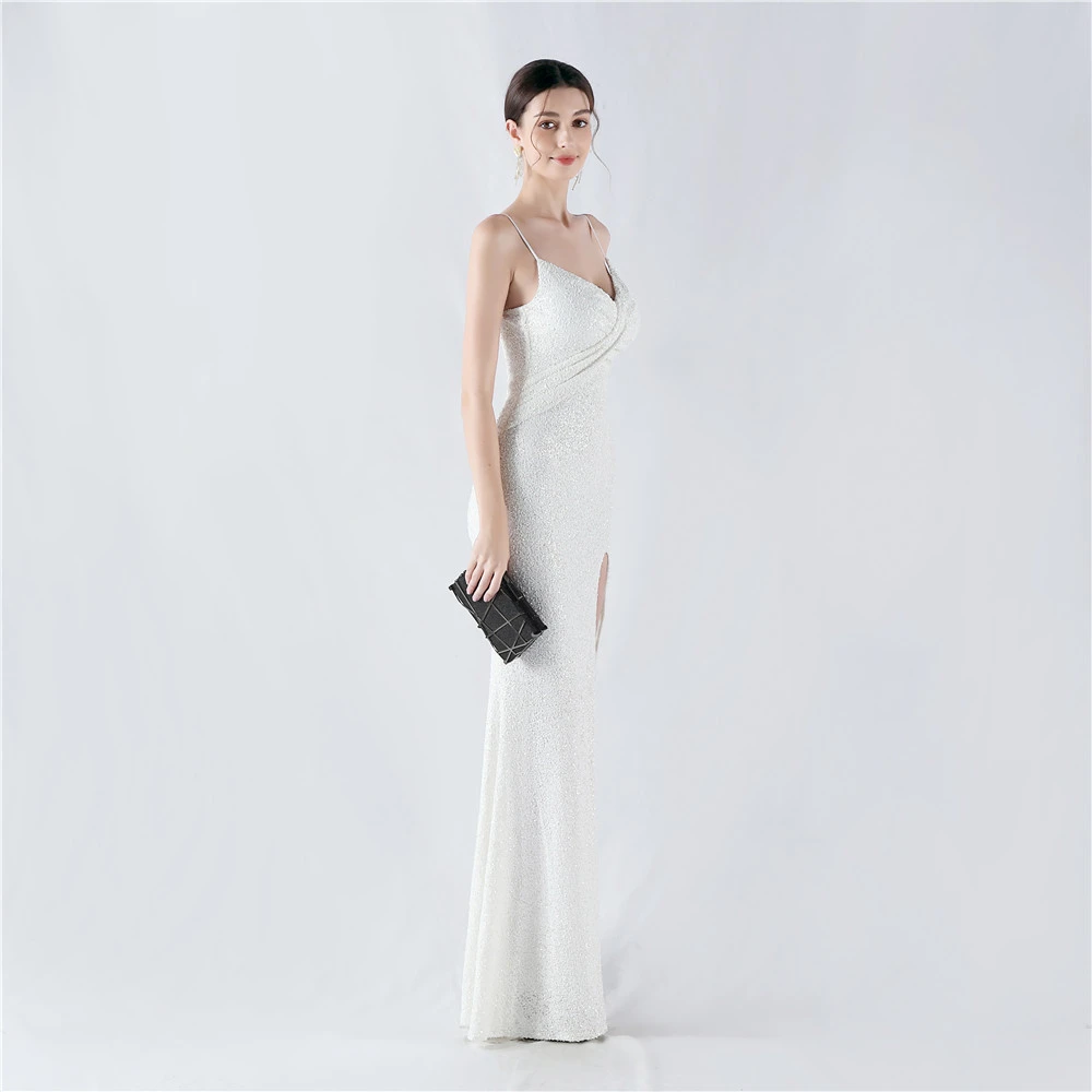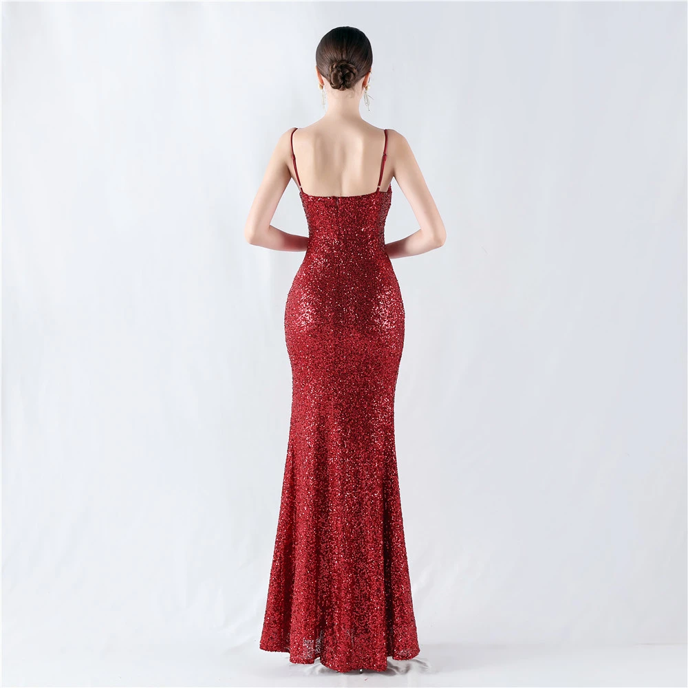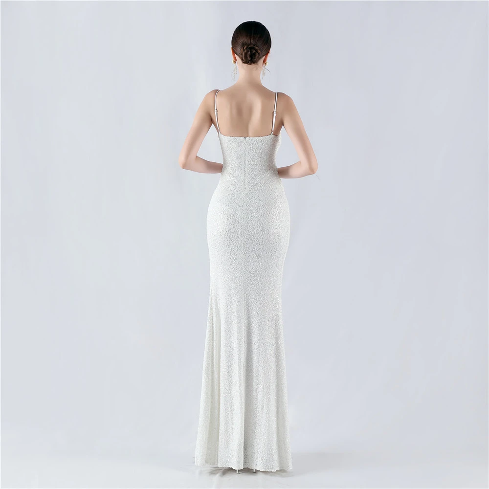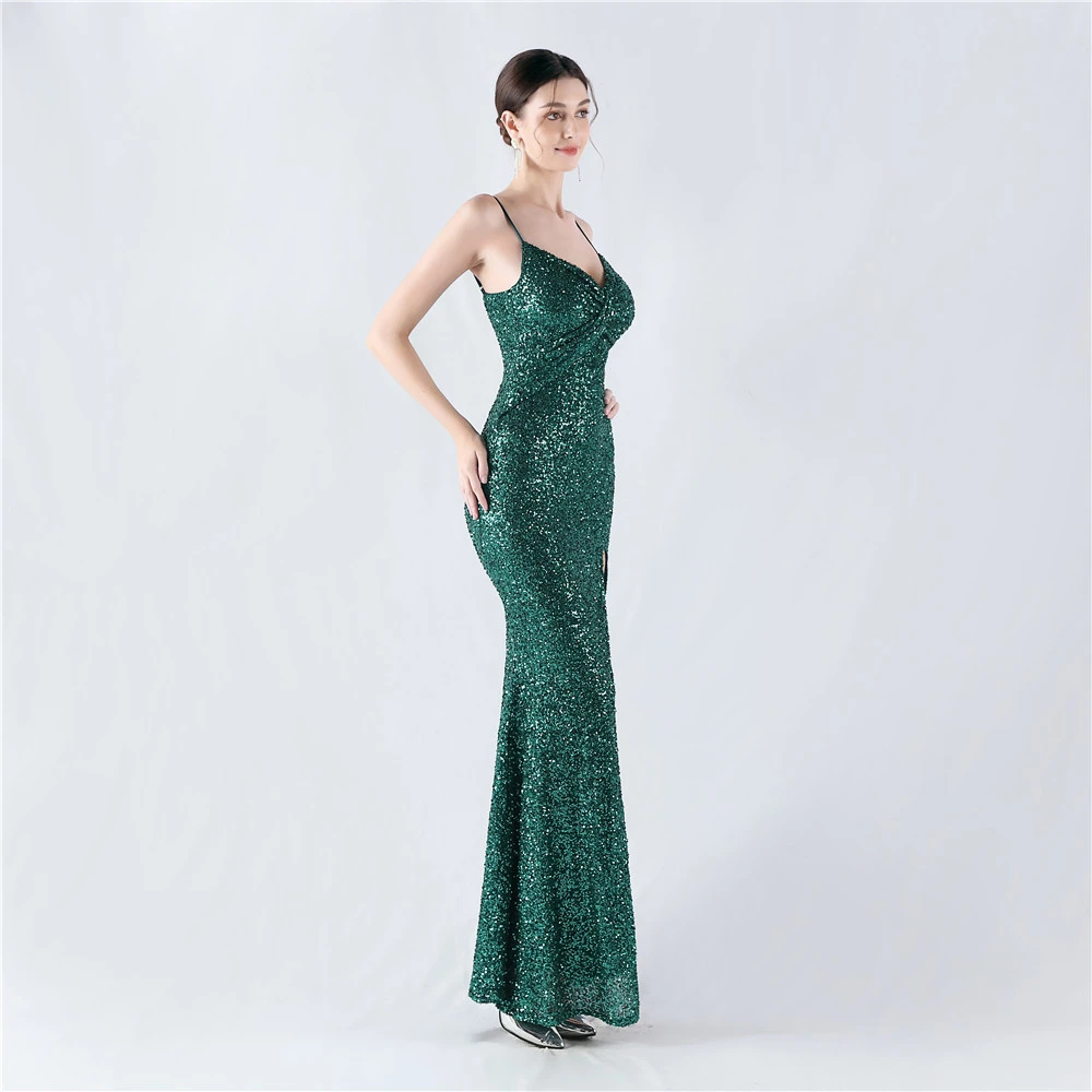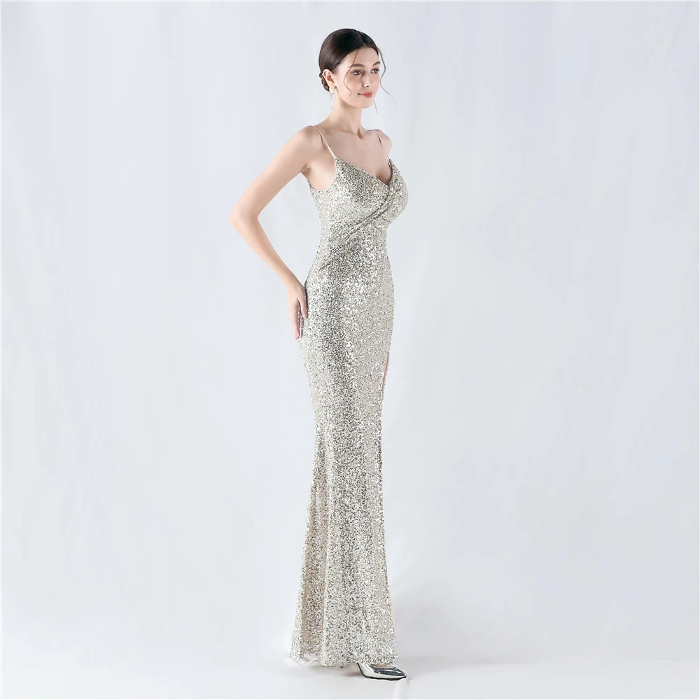 Encrypted Sequined Sexy High-Slit Suspender Evening Dress