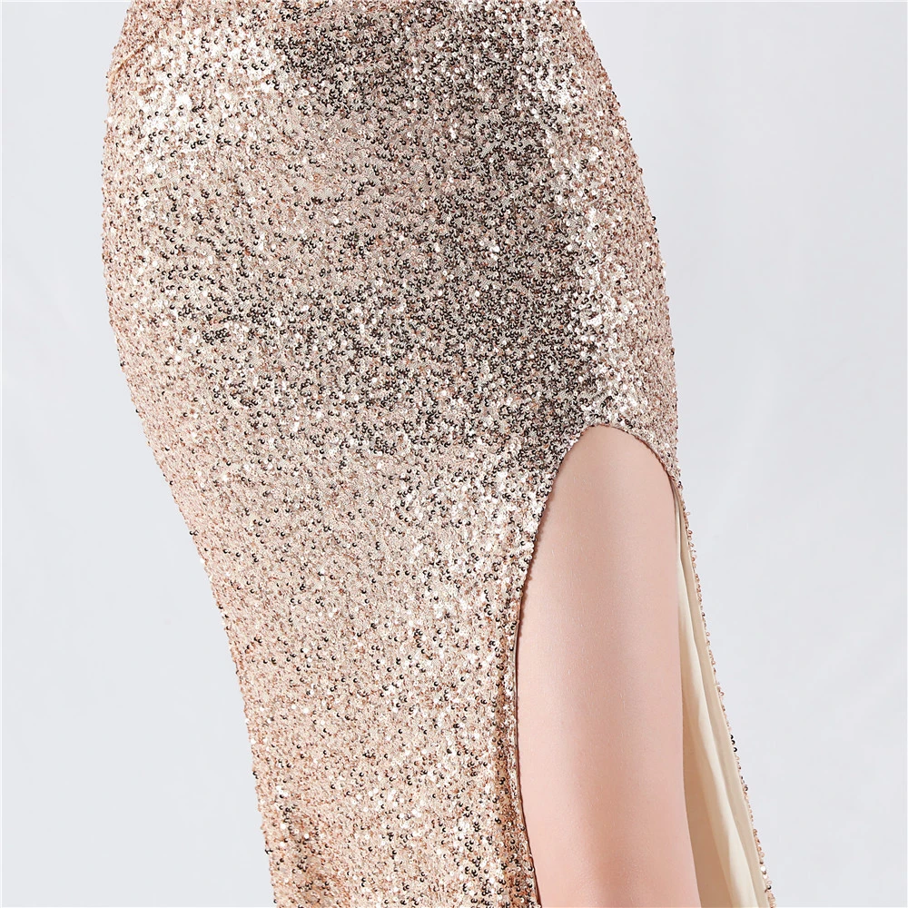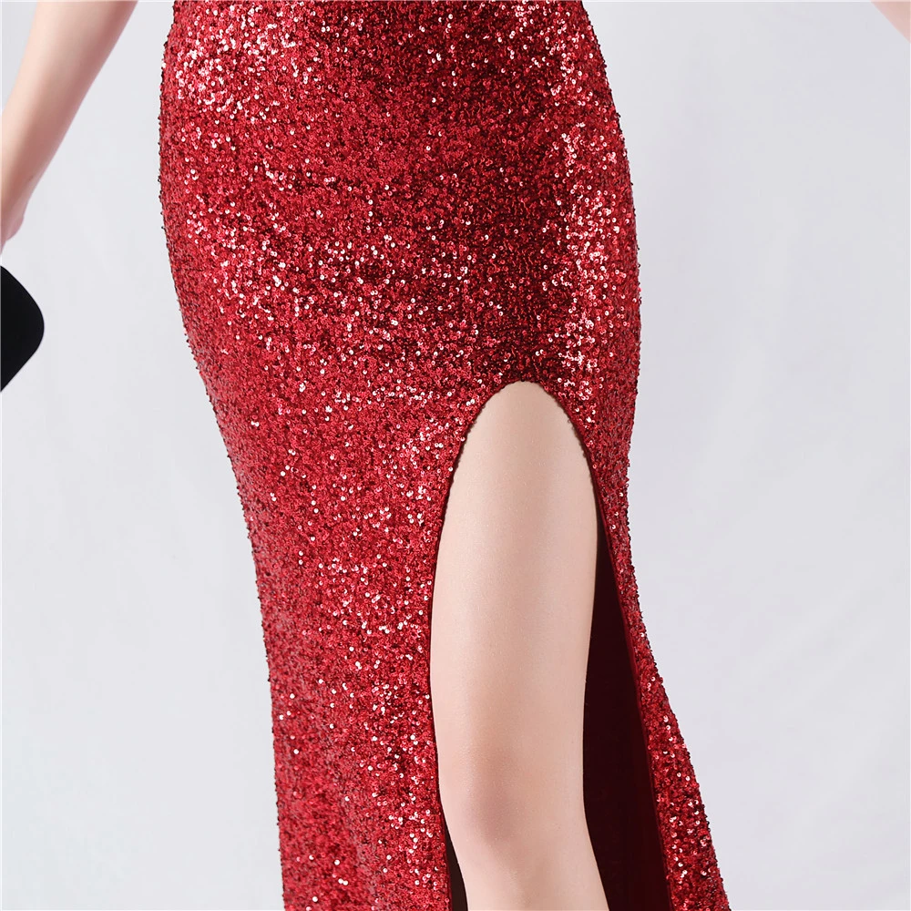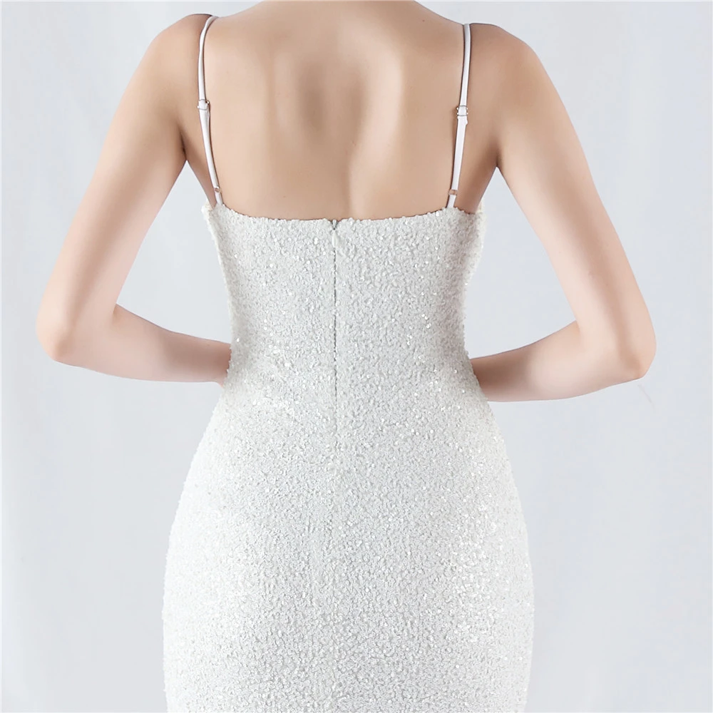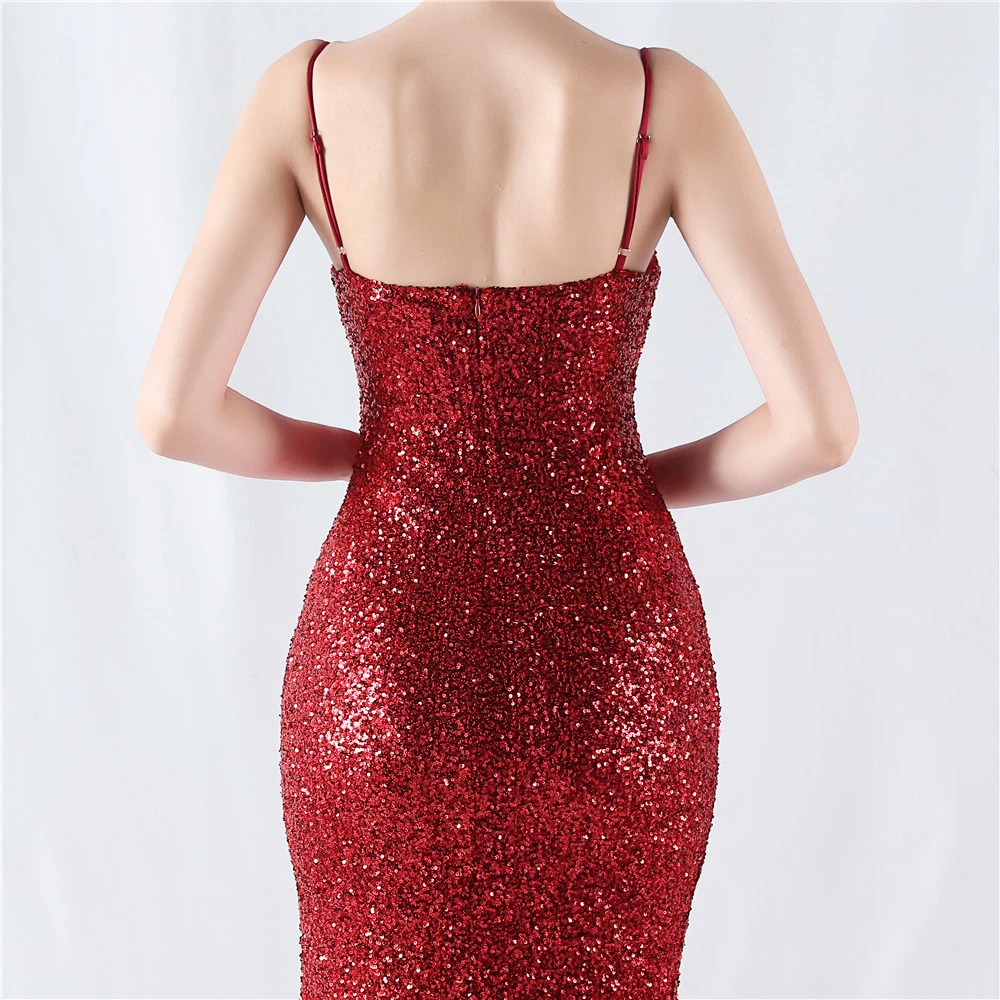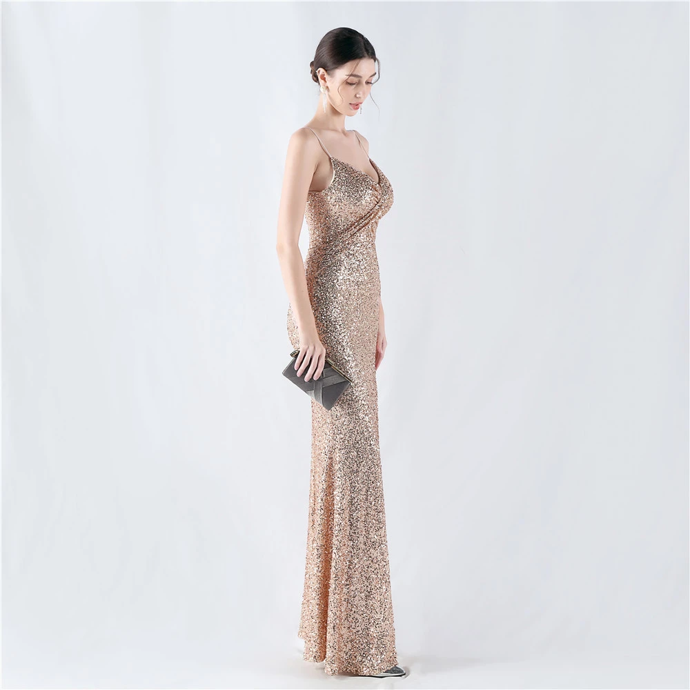 Encrypted Sequined Sexy High-Slit Suspender Evening Dress