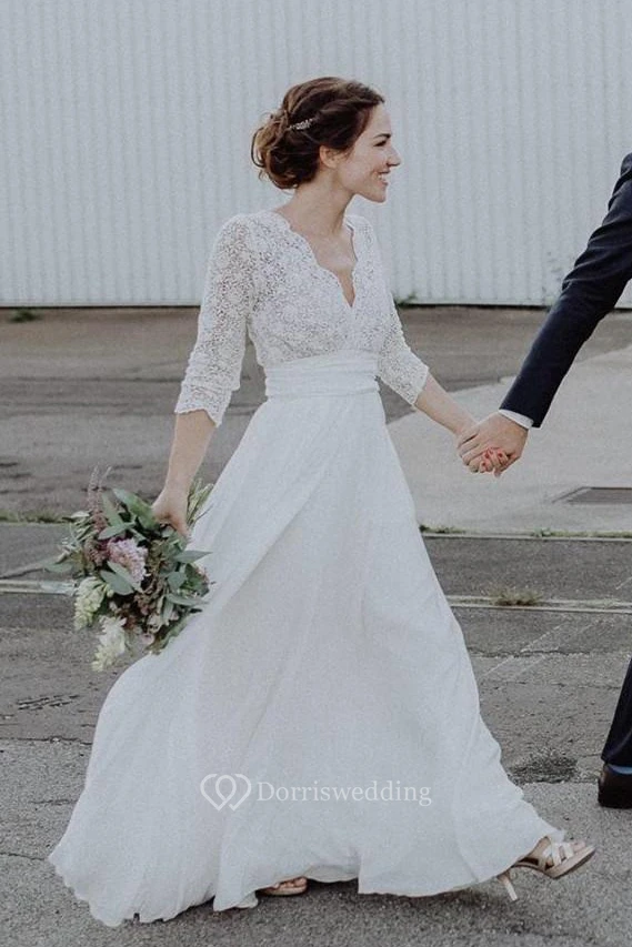 The floor-length dress is still a little long for me. Maybe I'm too short. But the quality is very good, I like the lace very much, I also like the sleeves can be longer.