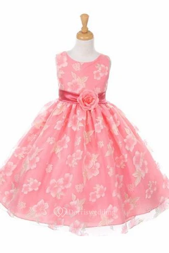 Tea-Length Tiered Organza&Satin Flower Girl Dress