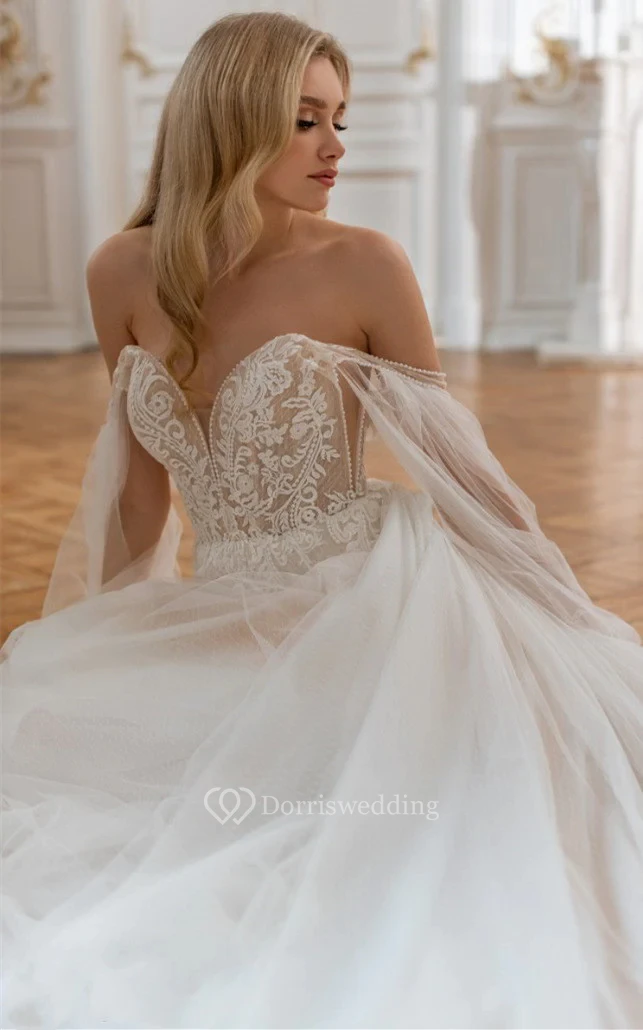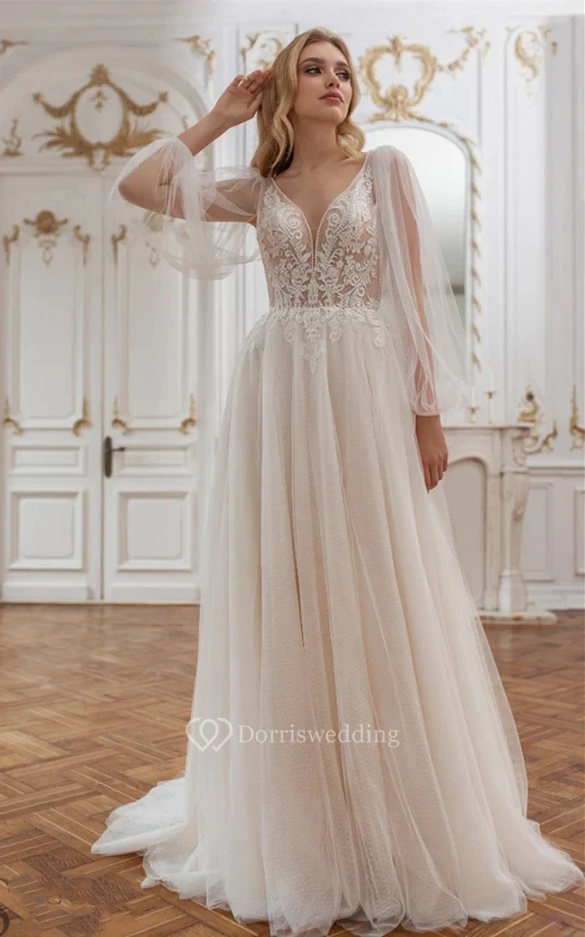 Ethereal Long Sleeve Illusion Empire A-line Lace Pleated Wedding Dress