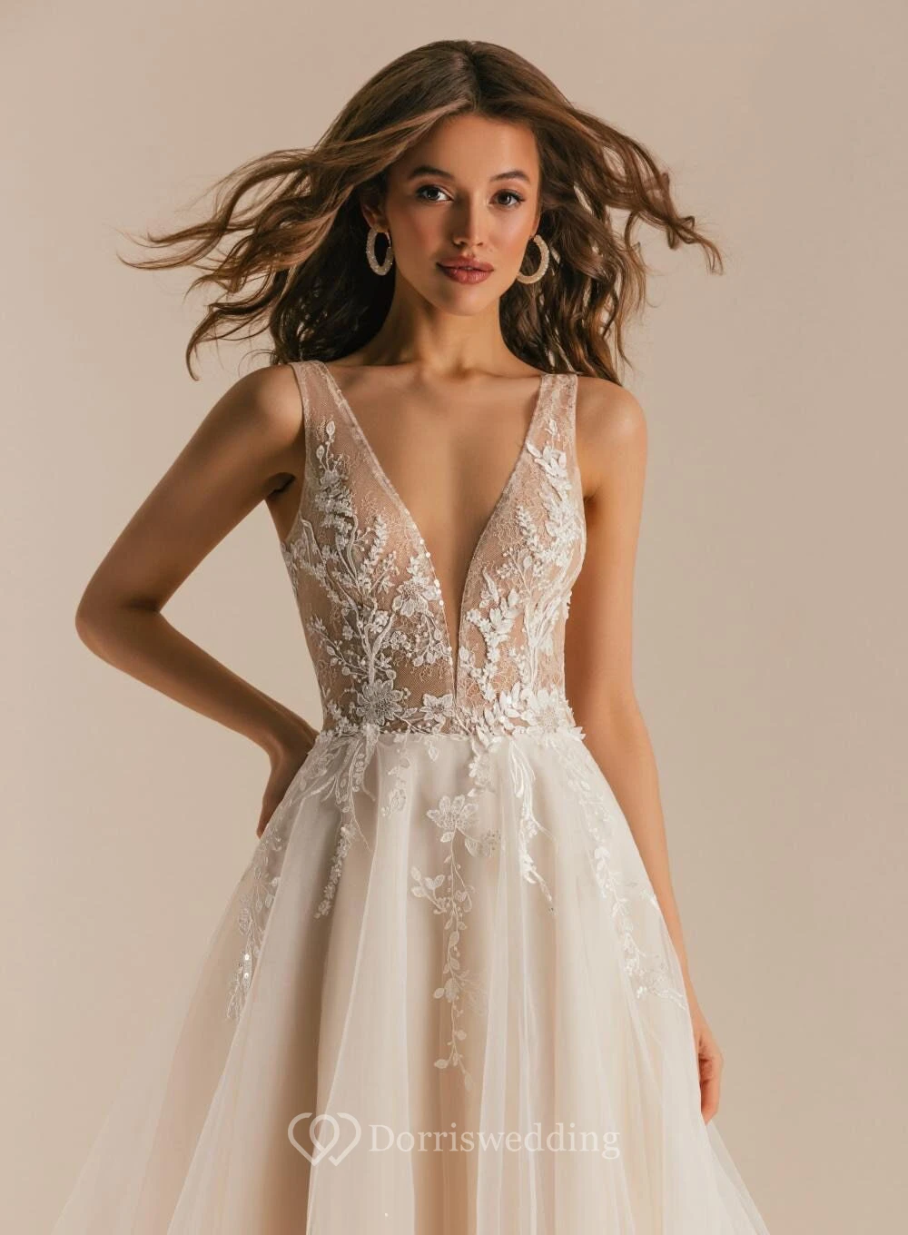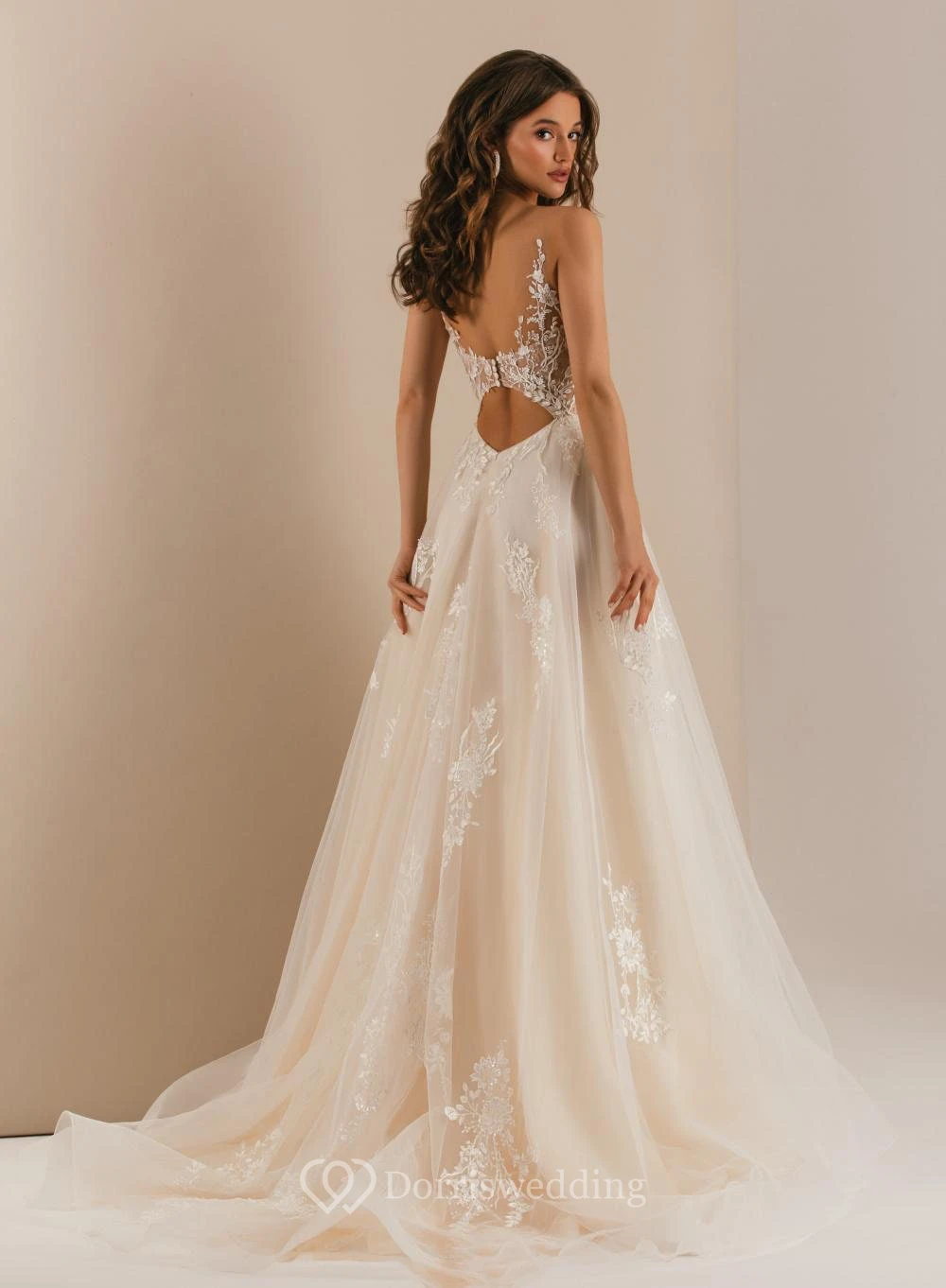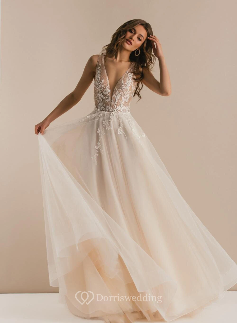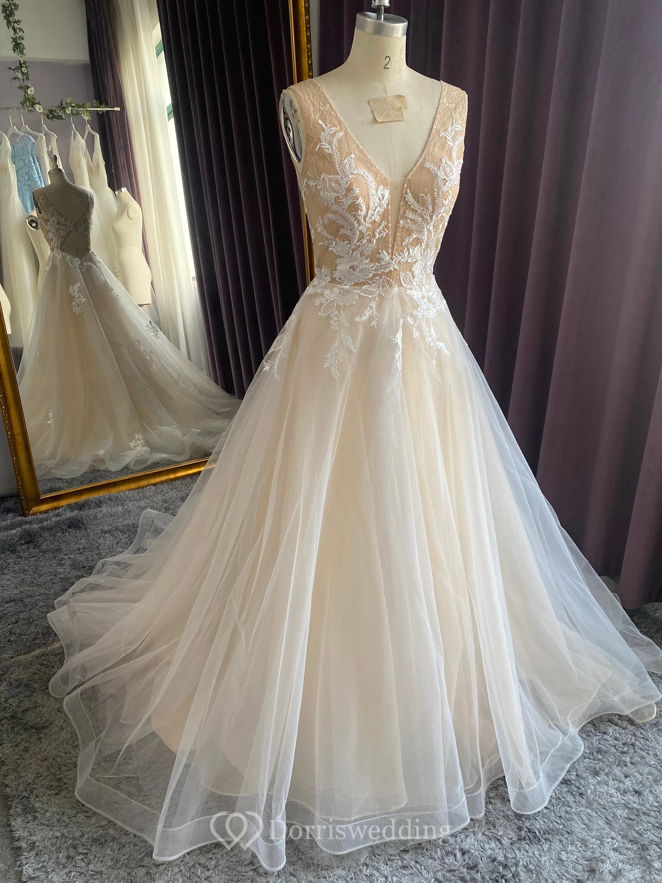 Ethereal Sexy V-neck Sleeveless A-line Tulle Tulle Wedding Dress