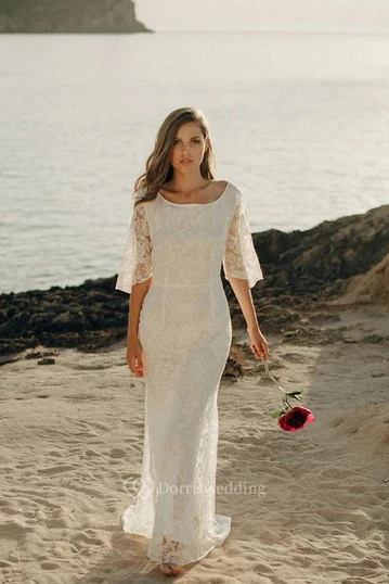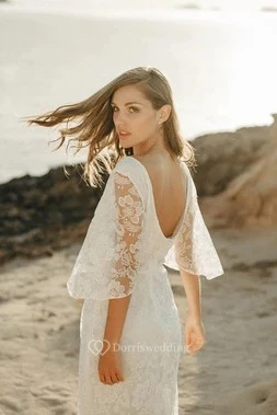 Ethereal Sheath Illusion Bat Sleeve Low-V Back Bridal Separates Gown