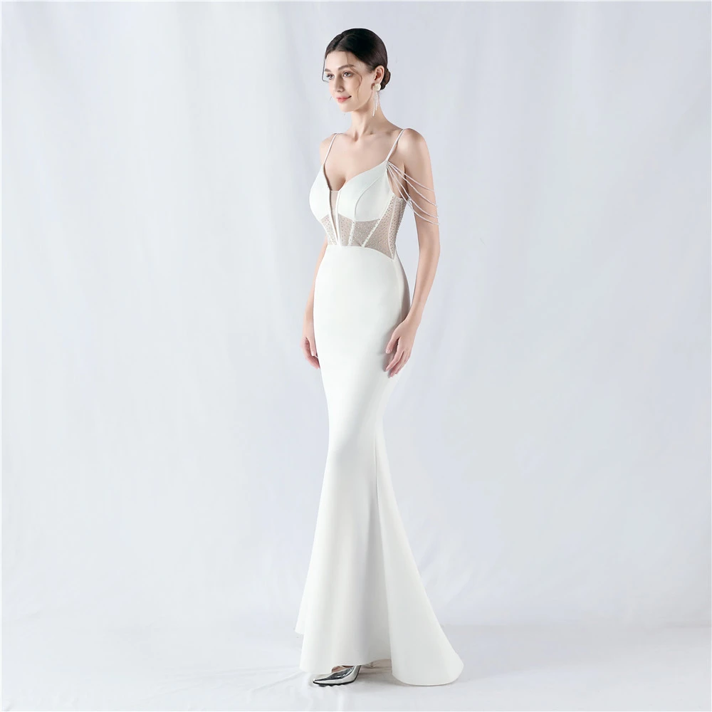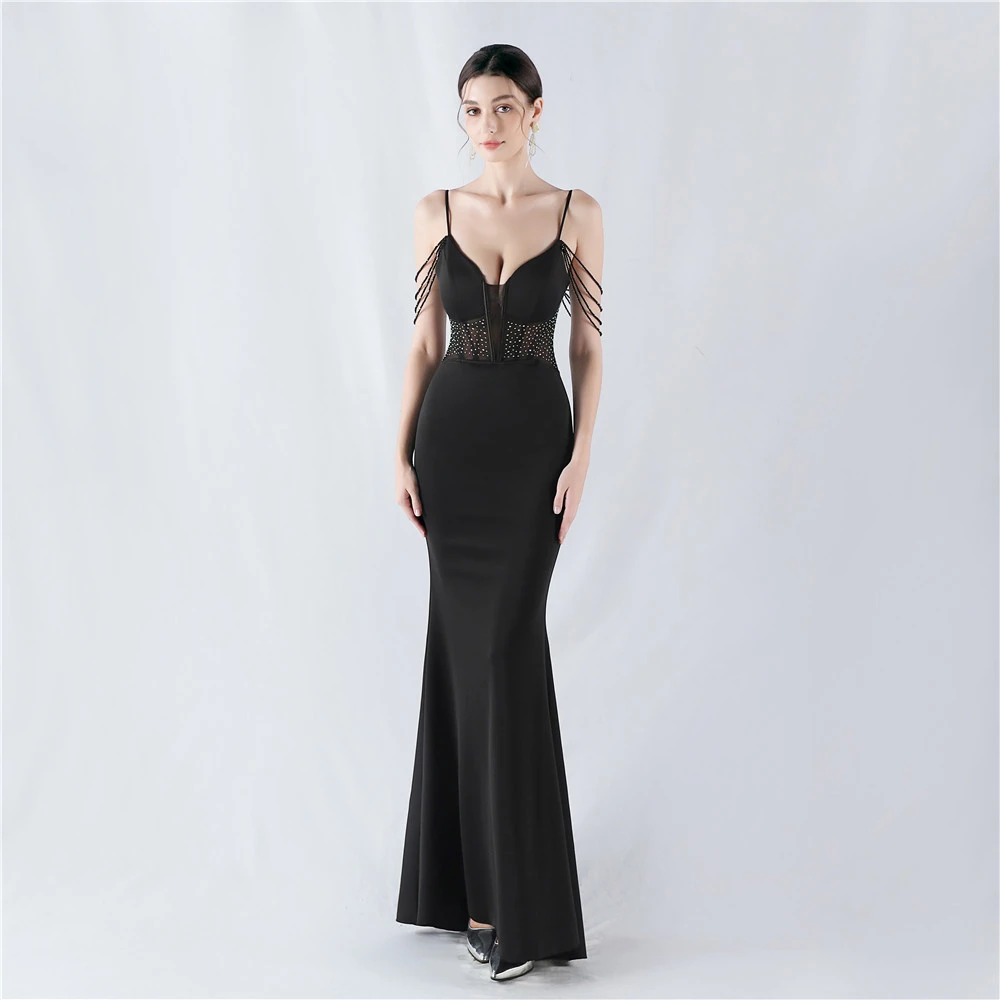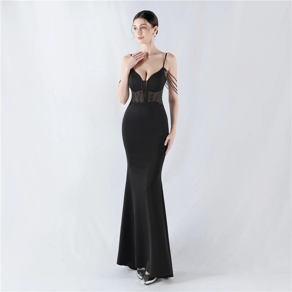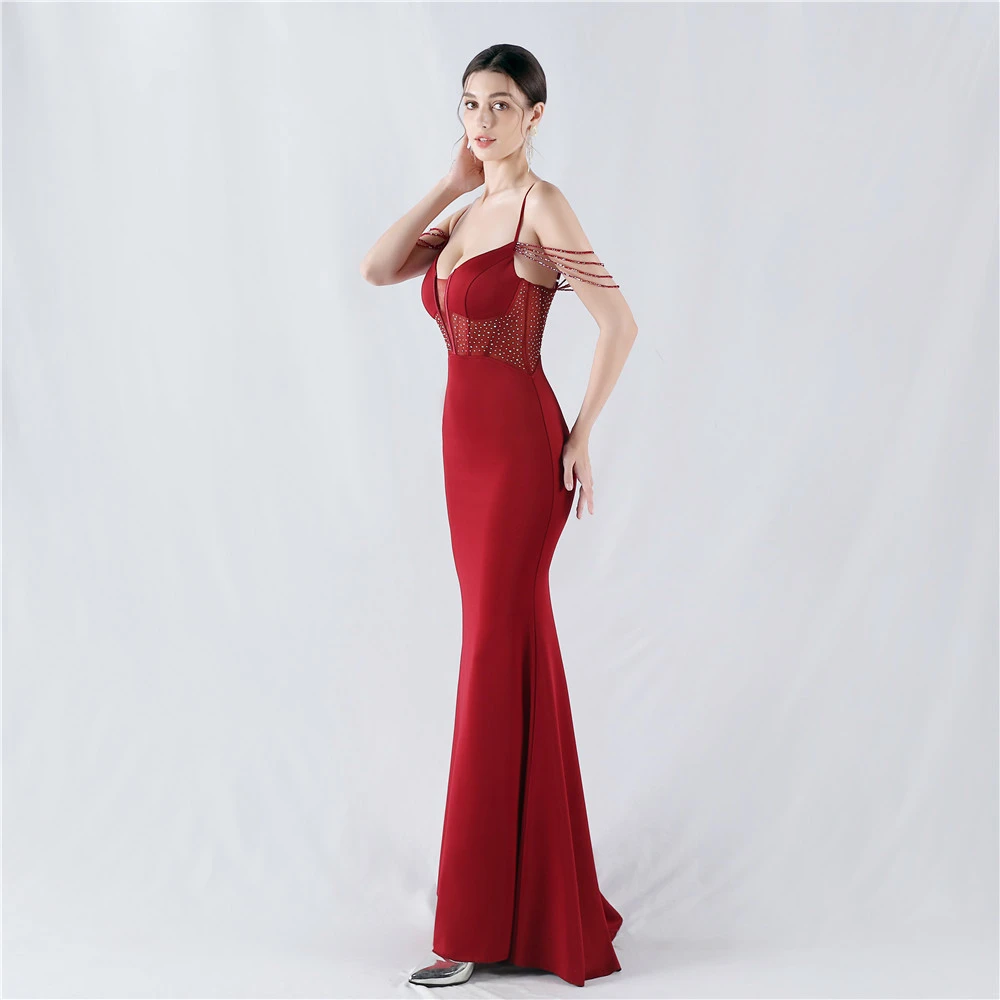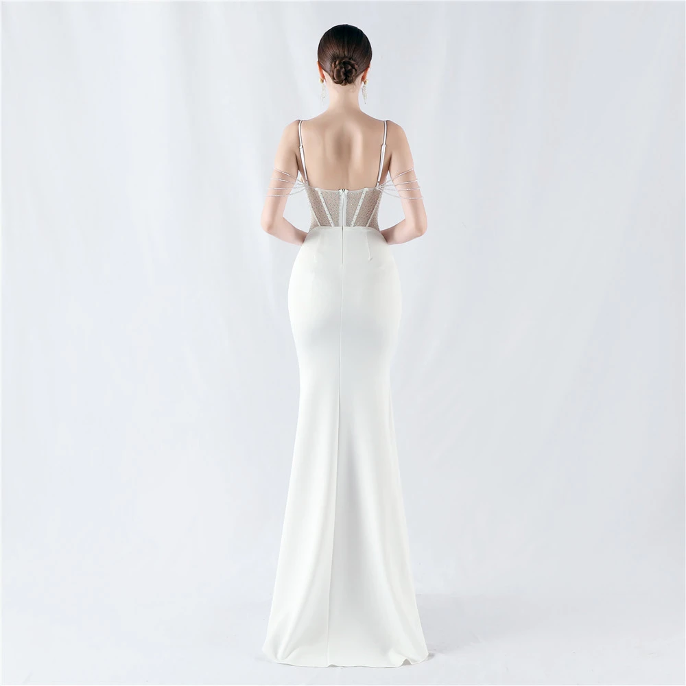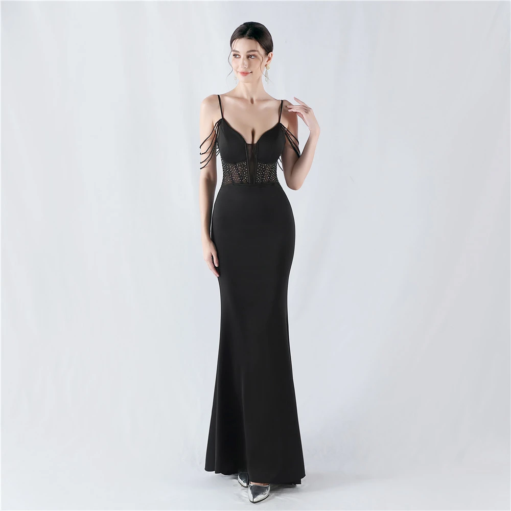 Evening Dress Waist Fishbone Beaded Hot Diamond Banquet Performance Host Evening Dress