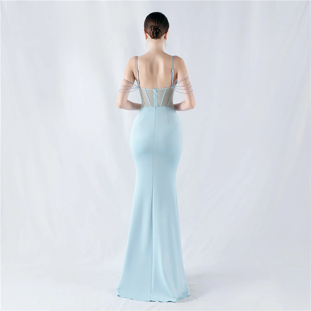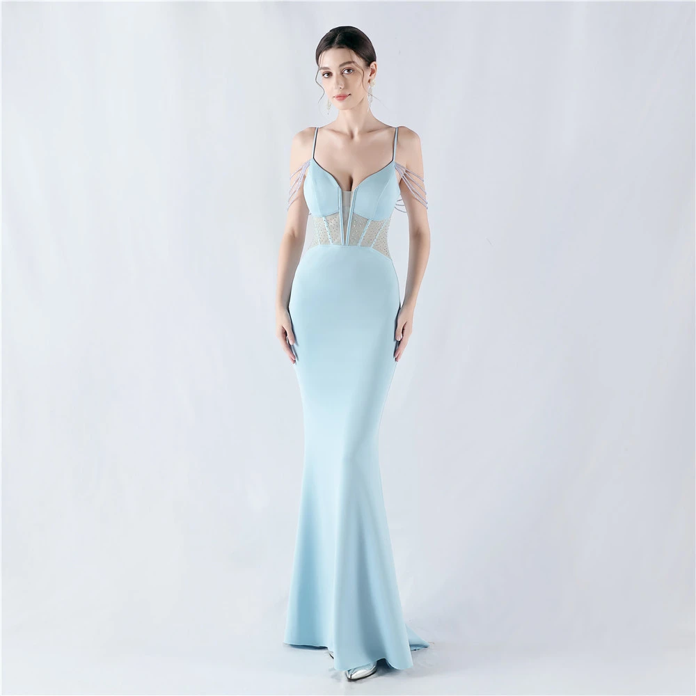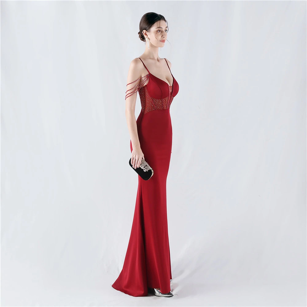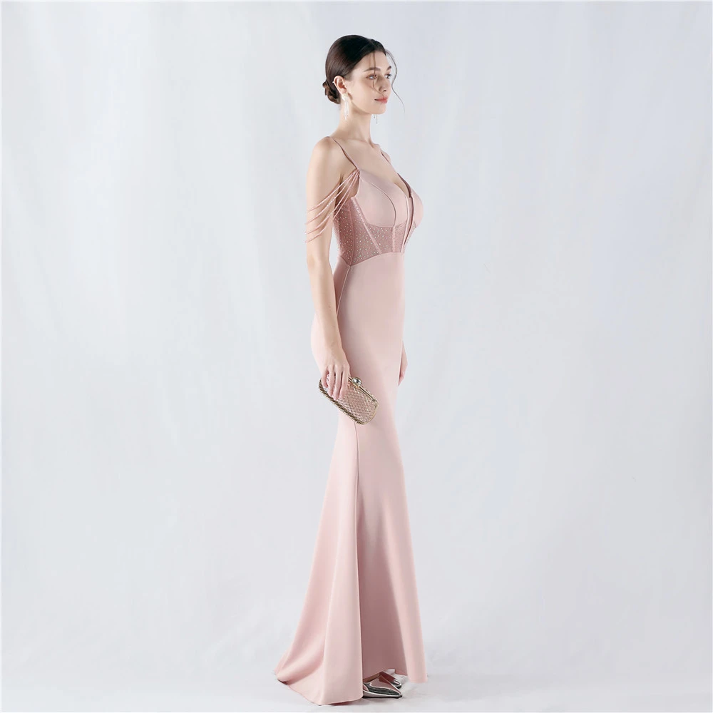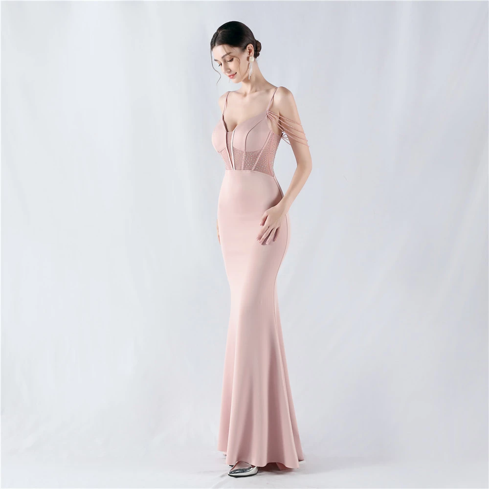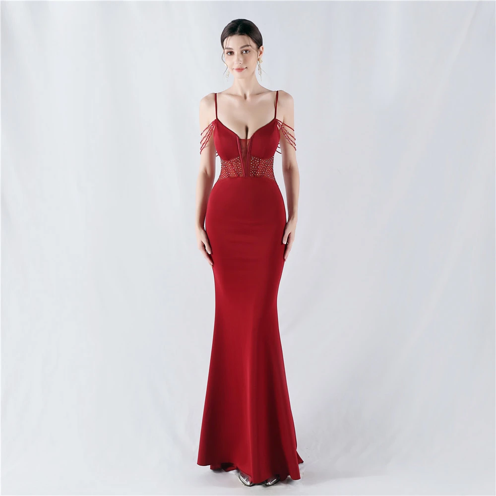 Evening Dress Waist Fishbone Beaded Hot Diamond Banquet Performance Host Evening Dress