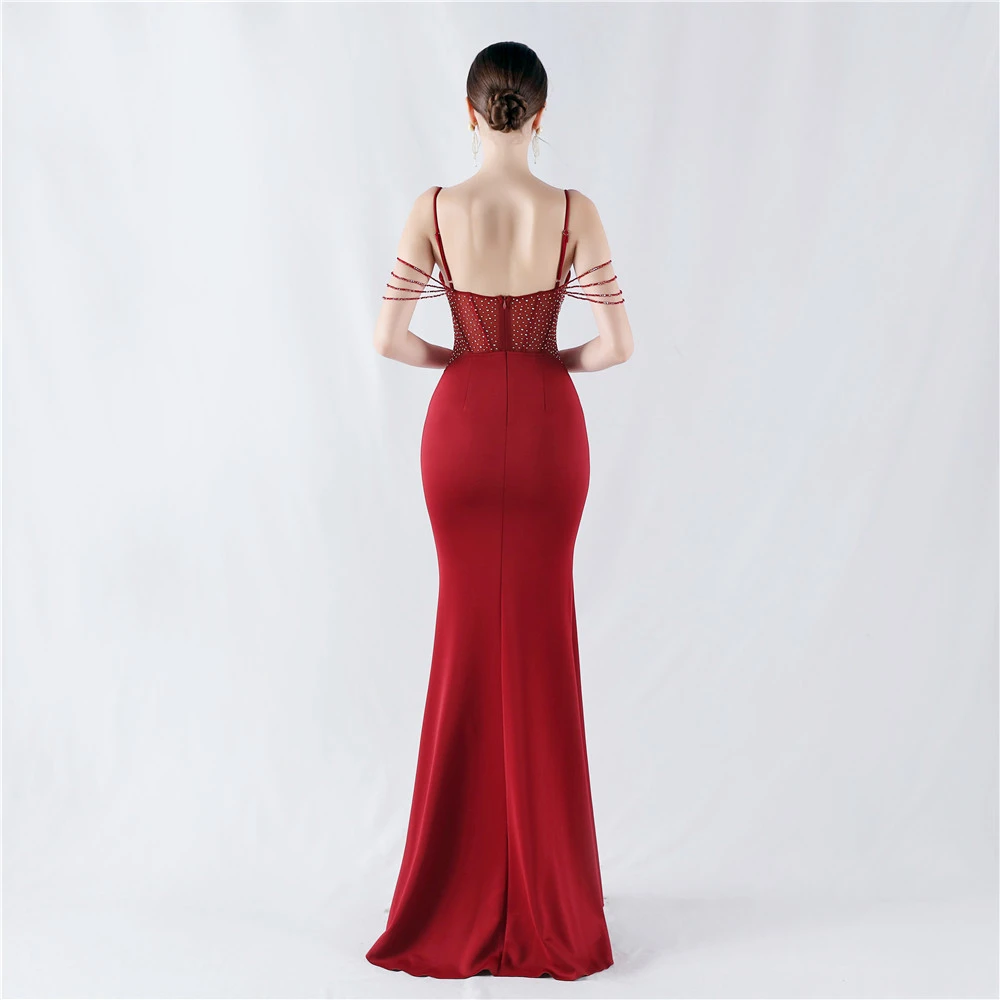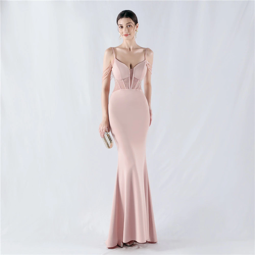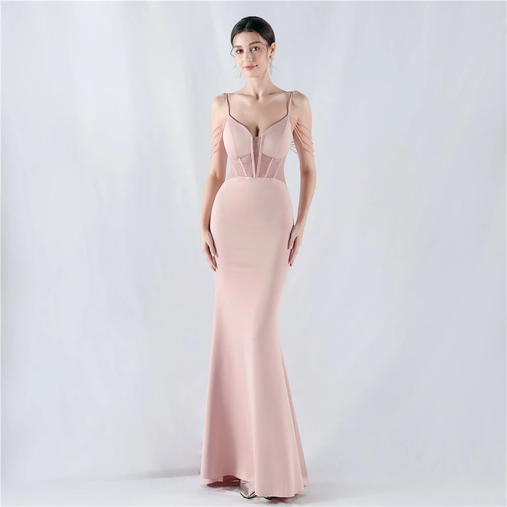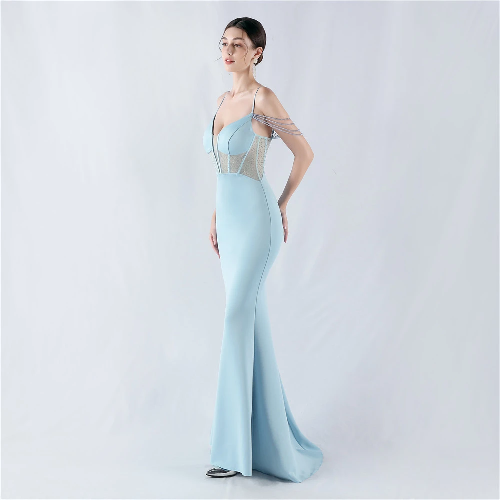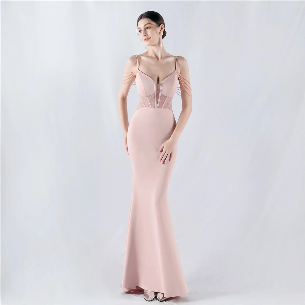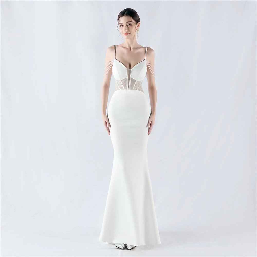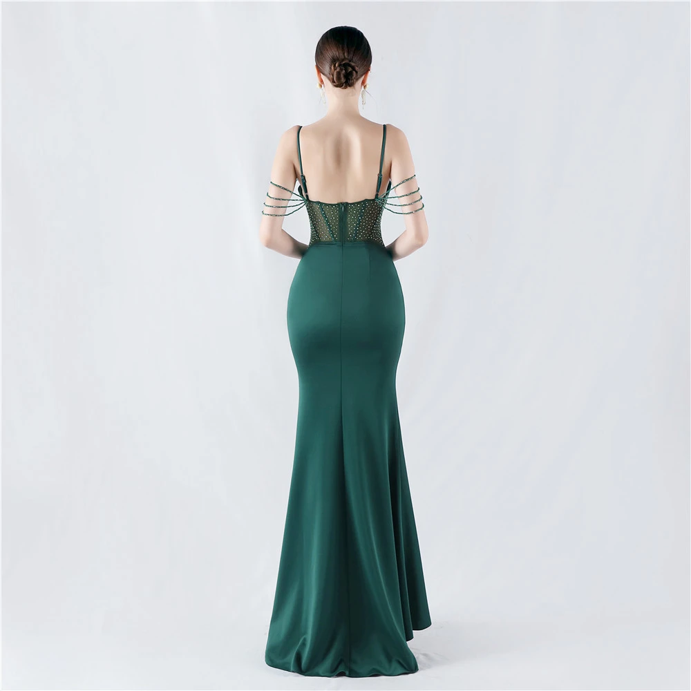 Evening Dress Waist Fishbone Beaded Hot Diamond Banquet Performance Host Evening Dress