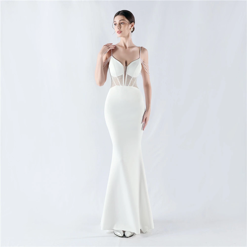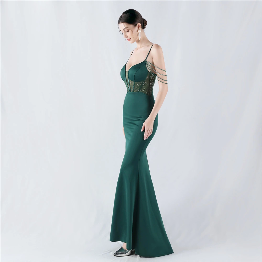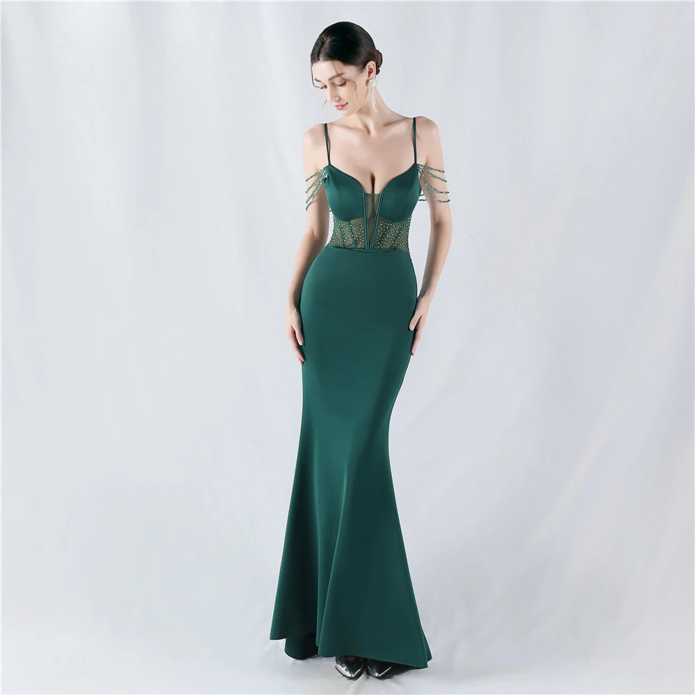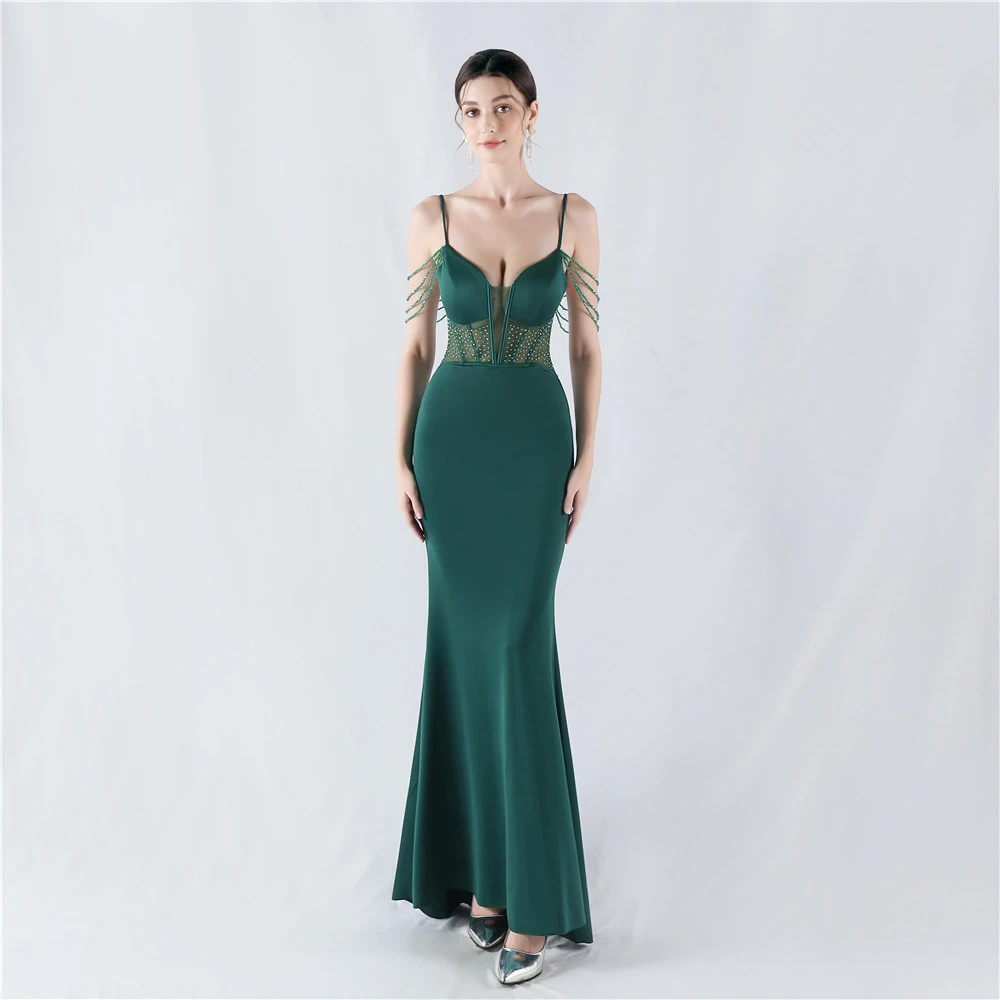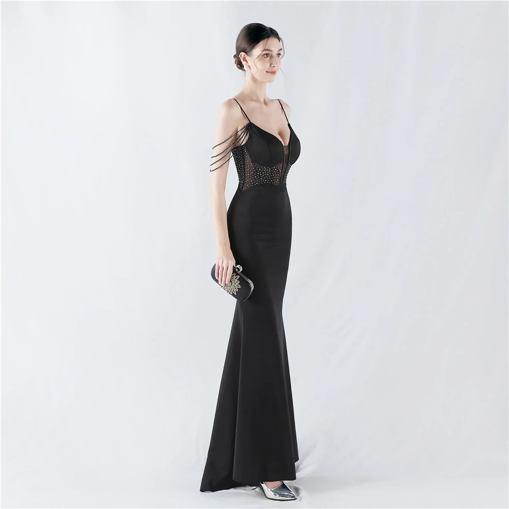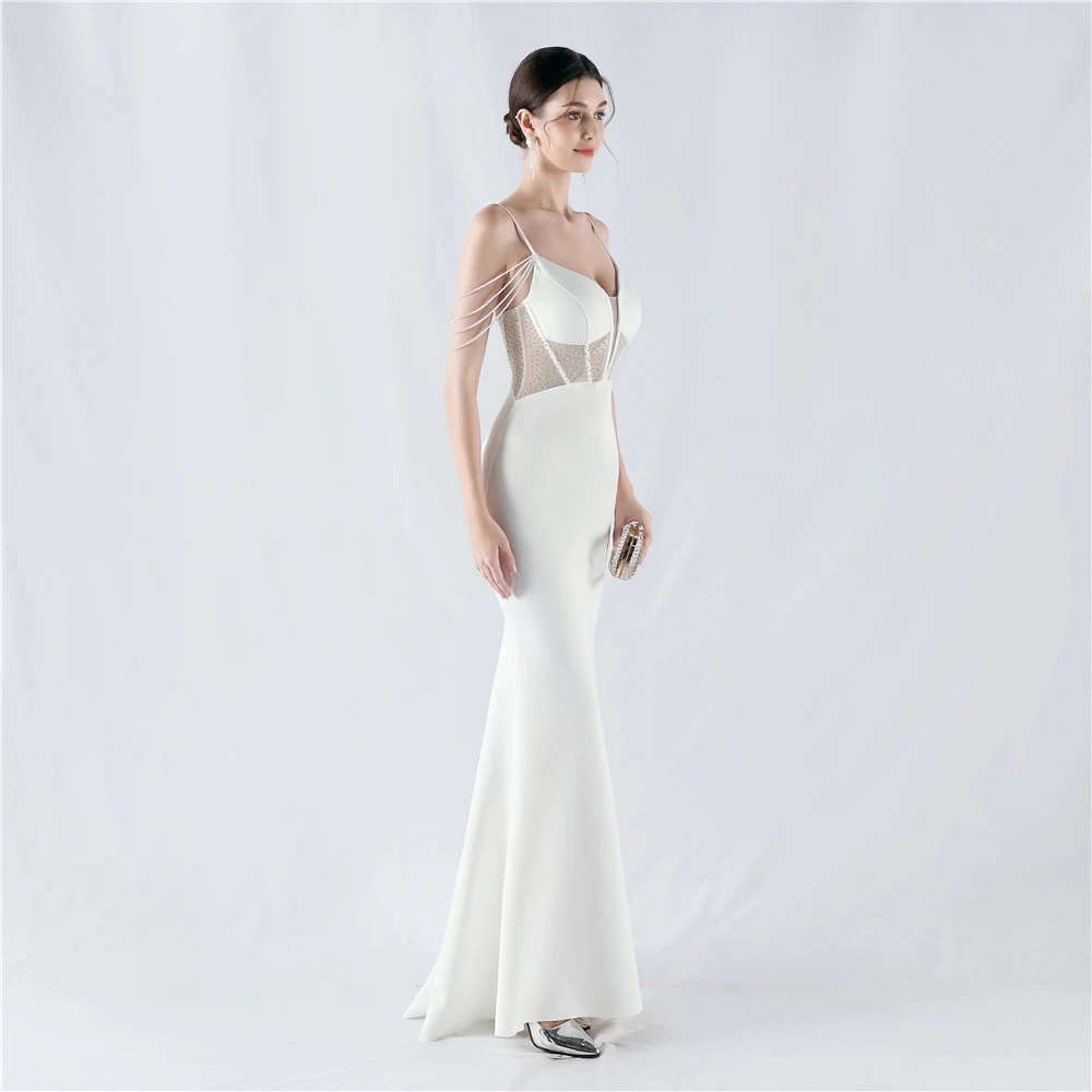 Evening Dress Waist Fishbone Beaded Hot Diamond Banquet Performance Host Evening Dress