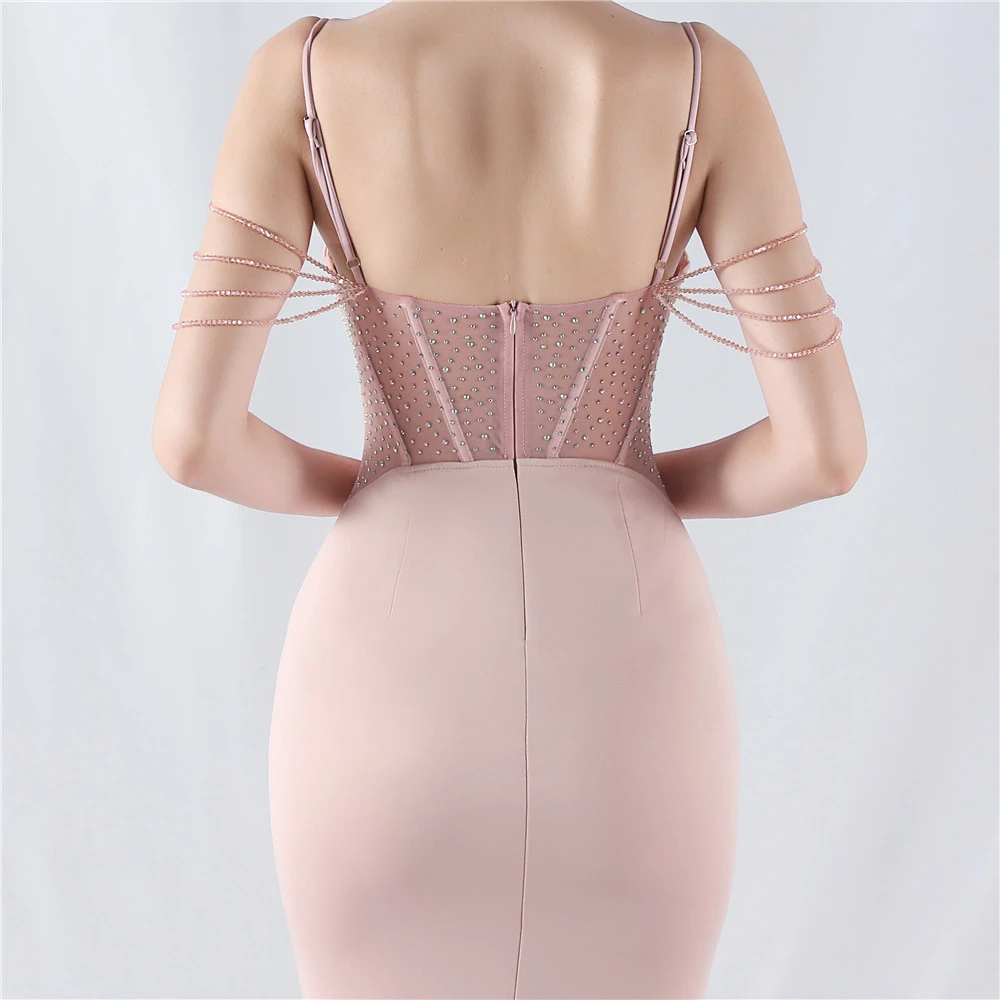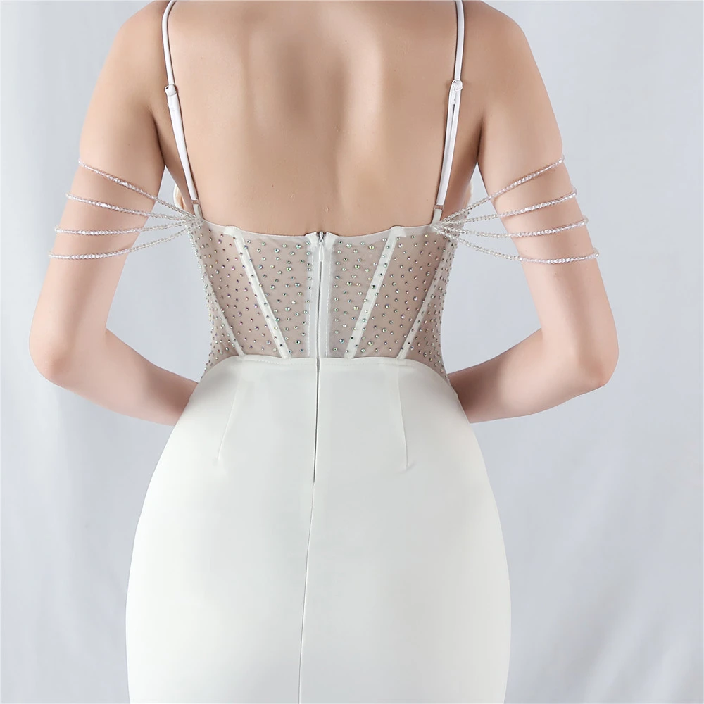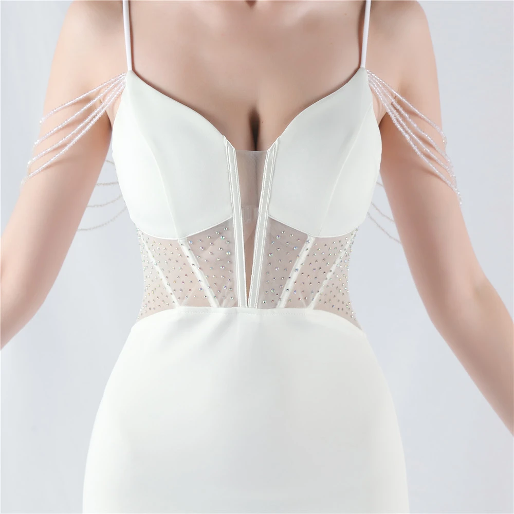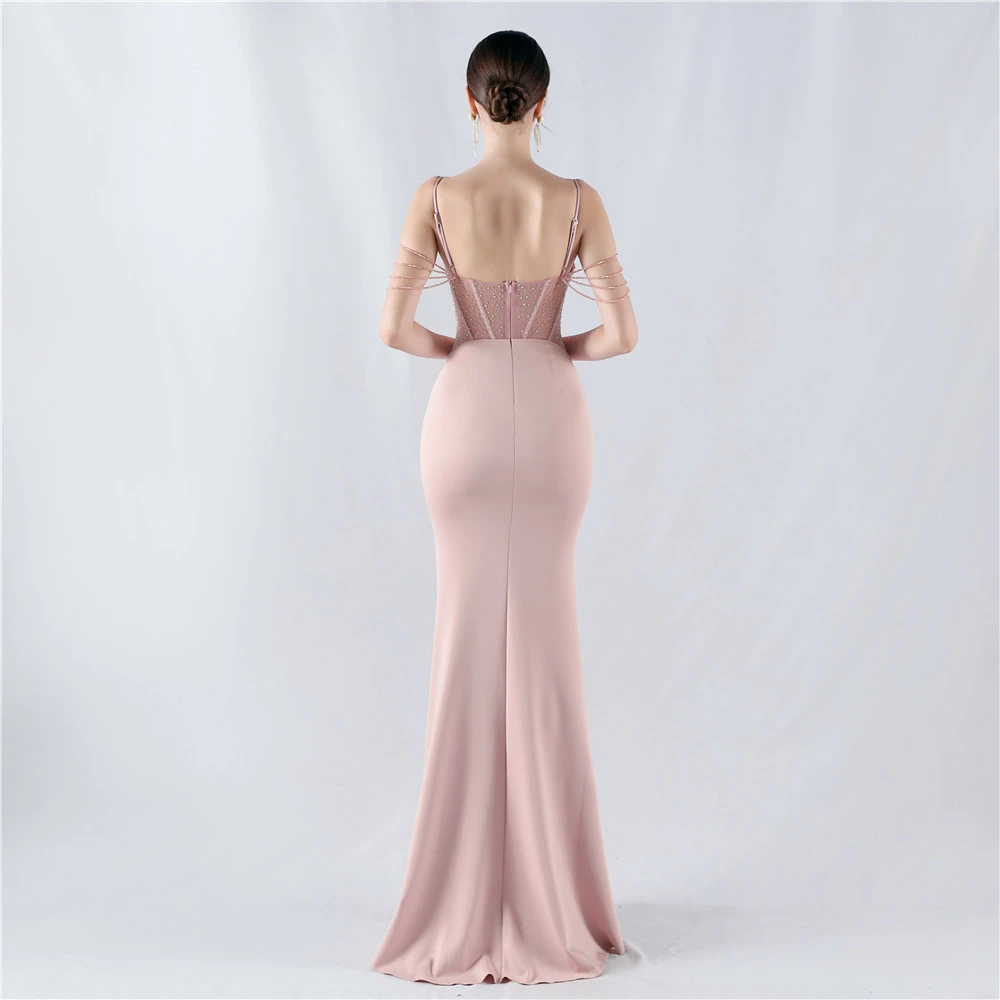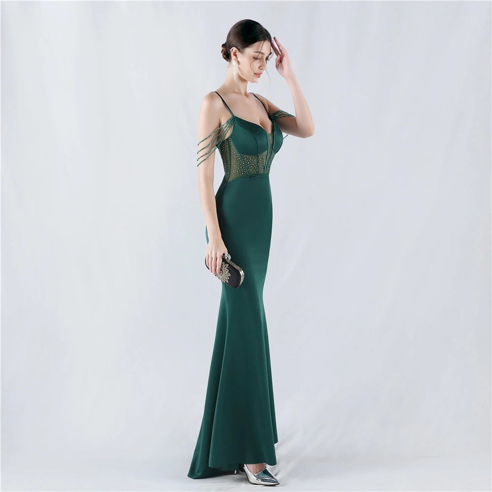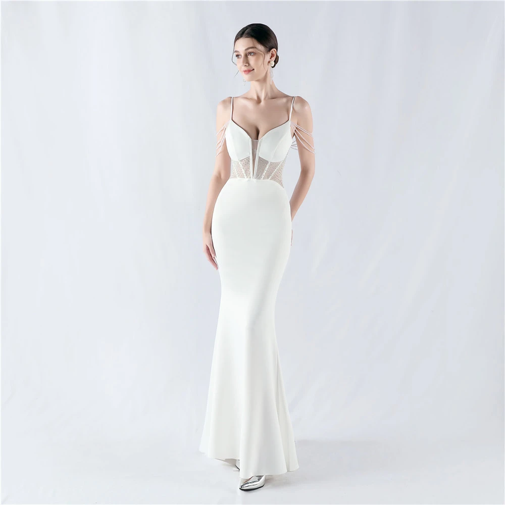 Evening Dress Waist Fishbone Beaded Hot Diamond Banquet Performance Host Evening Dress