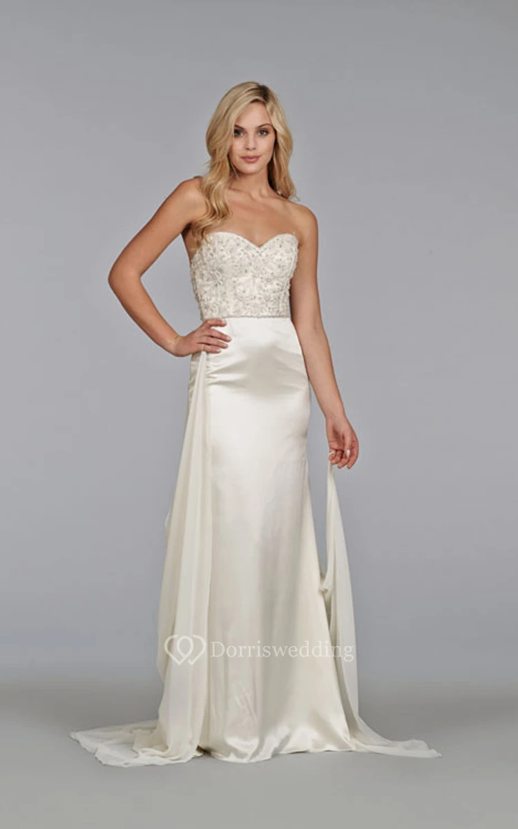 Exquisite Beaded Embroidered Bodice Charmeuse Sheath Dress