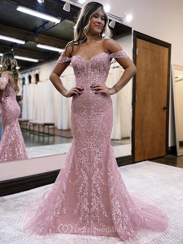 Exquisite Off-the-shoulder Beaded Mermaid Low-v Back Prom Dress