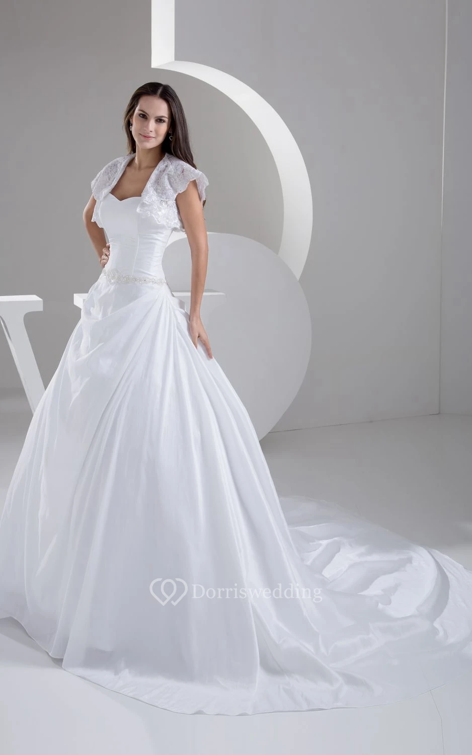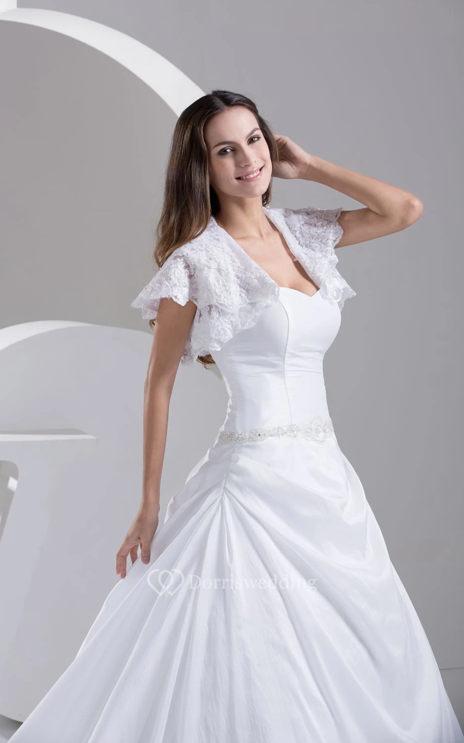 Exquisite Ruched A-Line Gown With Beading and Jacket