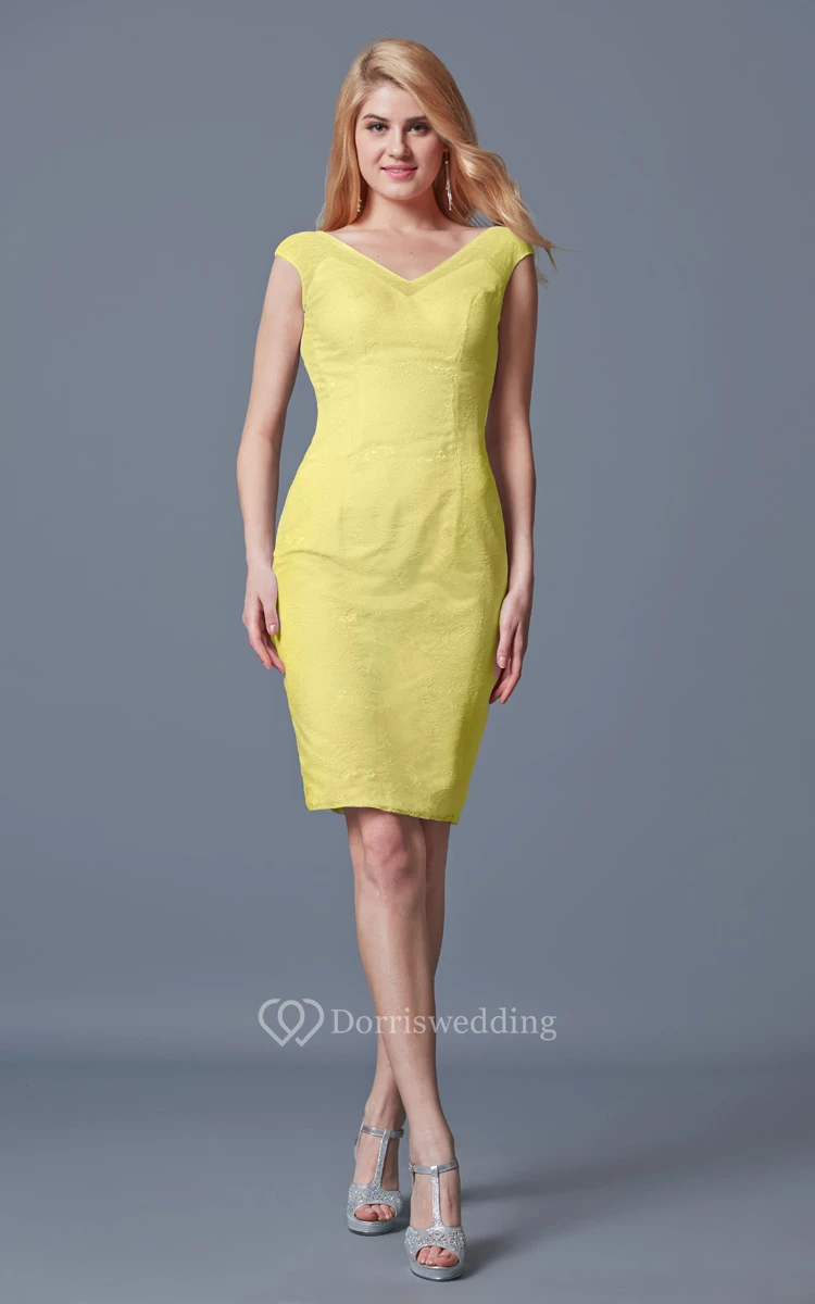 Exquisite Short Sleeve V Neck Lace Dress With Low-v Back