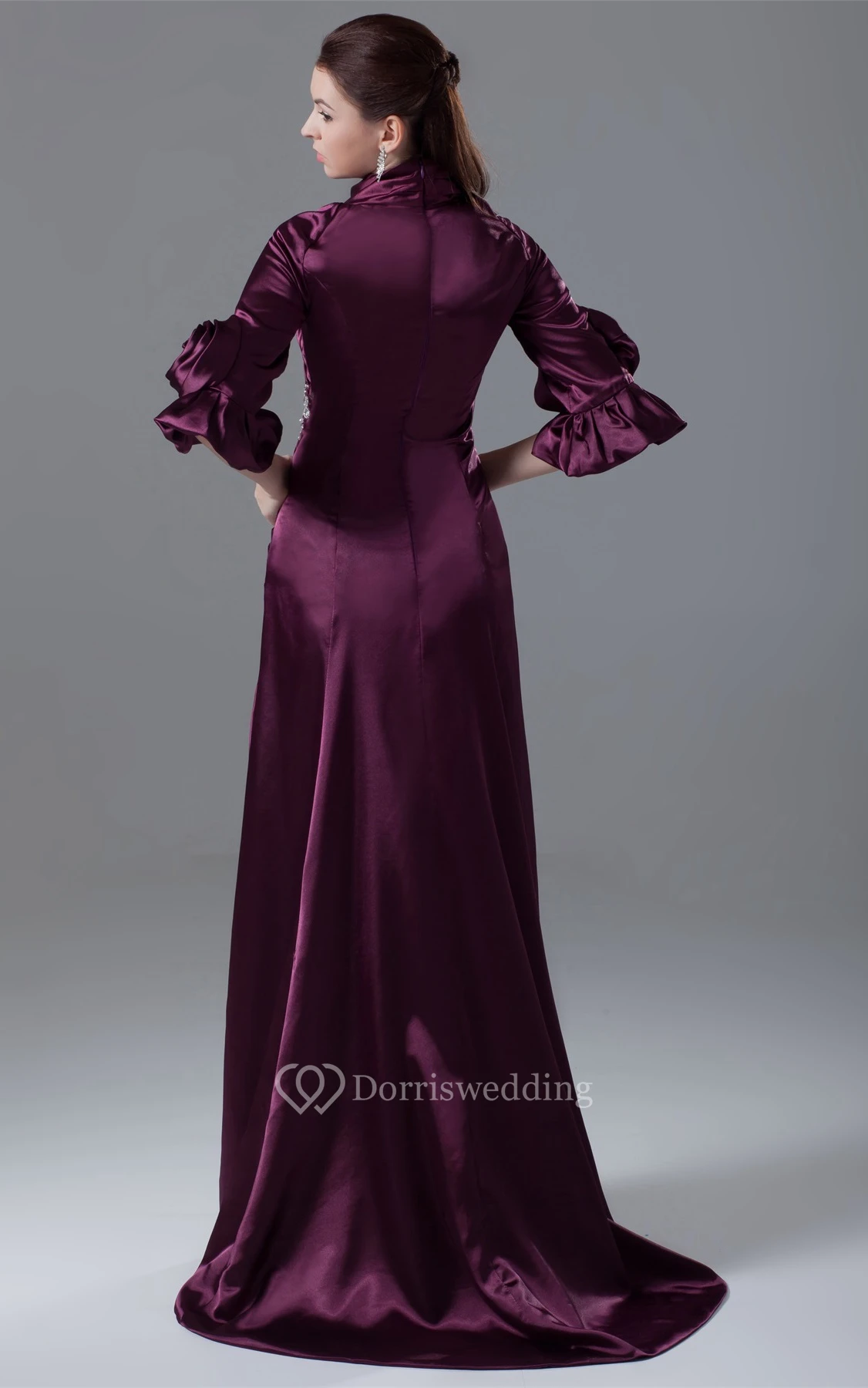 • Hemline/Train: Floor-length, Sweep/Brush Train