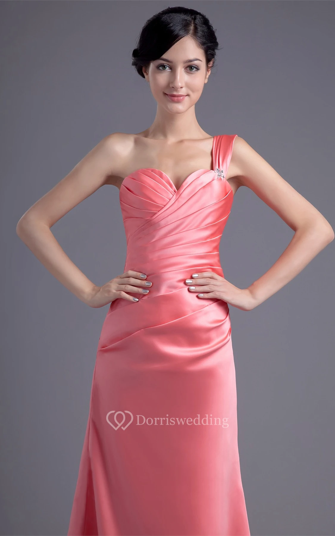 Exquisite Sleeveless One Shoulder Beaded Satin a Line Bridesmaid Dresses