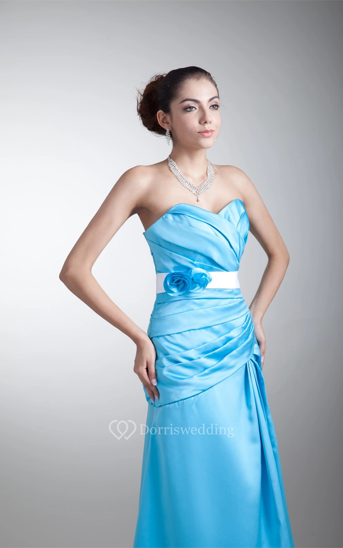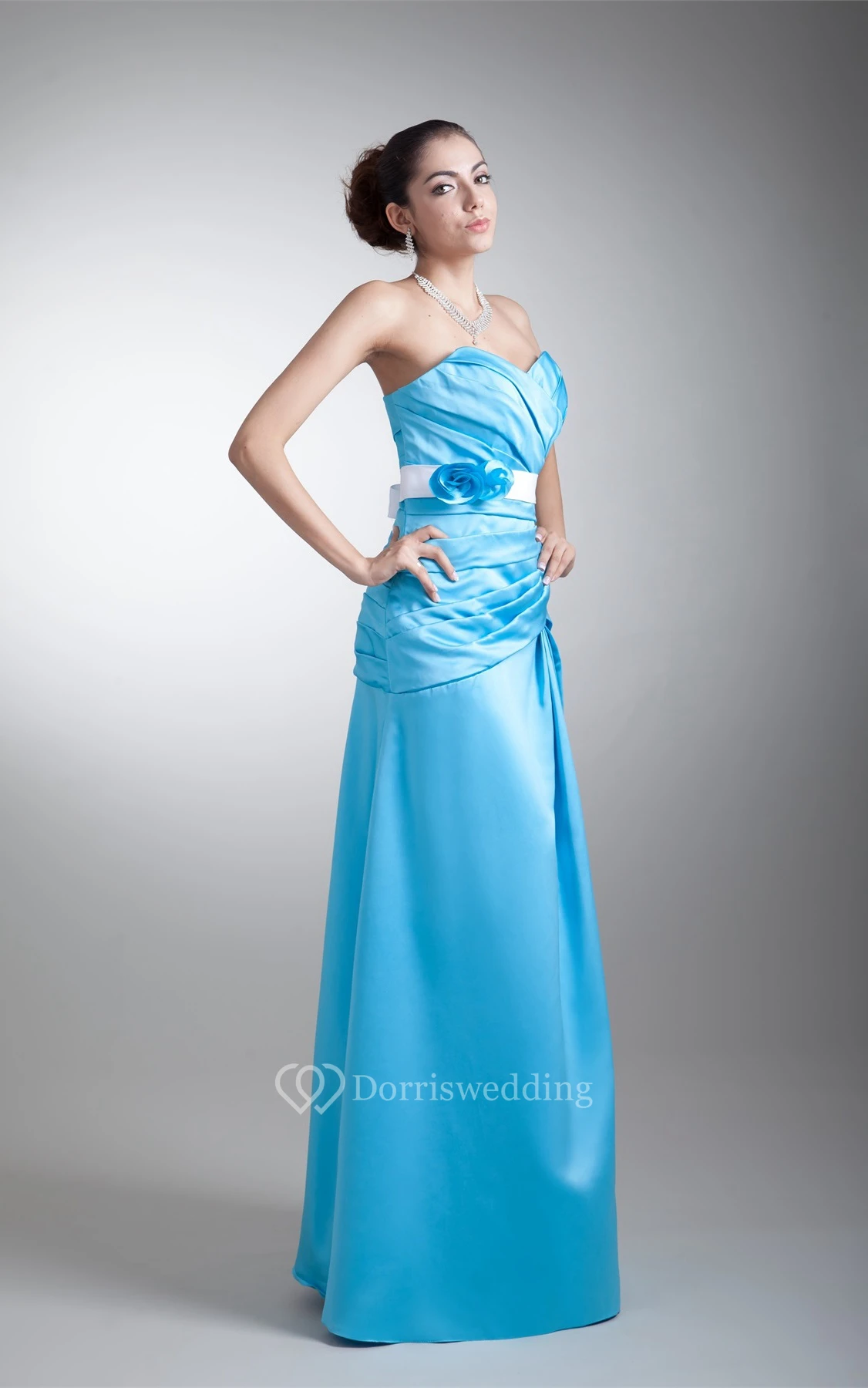 Exquisite Sleeveless Satin a Line Maxi Floral Bridesmaid Dresses