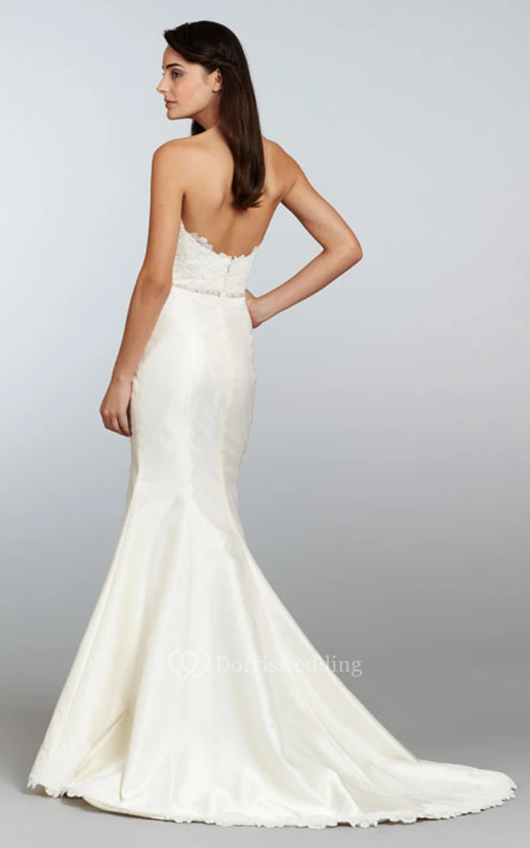 Exquisite Strapless Lace Bodice Mikado Gown With Beaded Waist