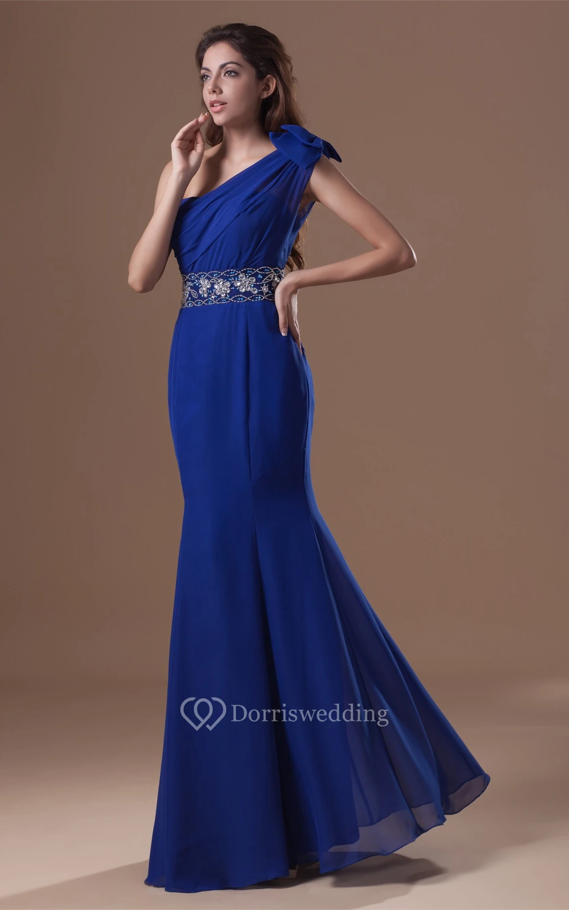 Exquisite Trumpet One Shoulder Beaded Chiffon Satin Special Occasion Dresses