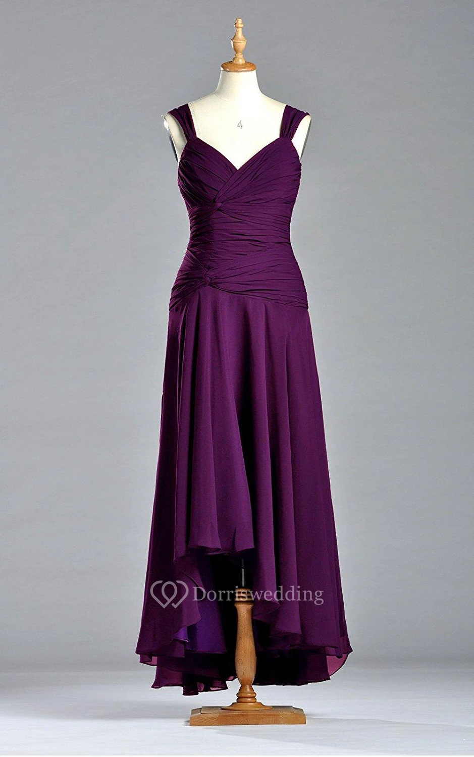 Fabulous A-line V-neck Long Chiffon Dress with Ruches