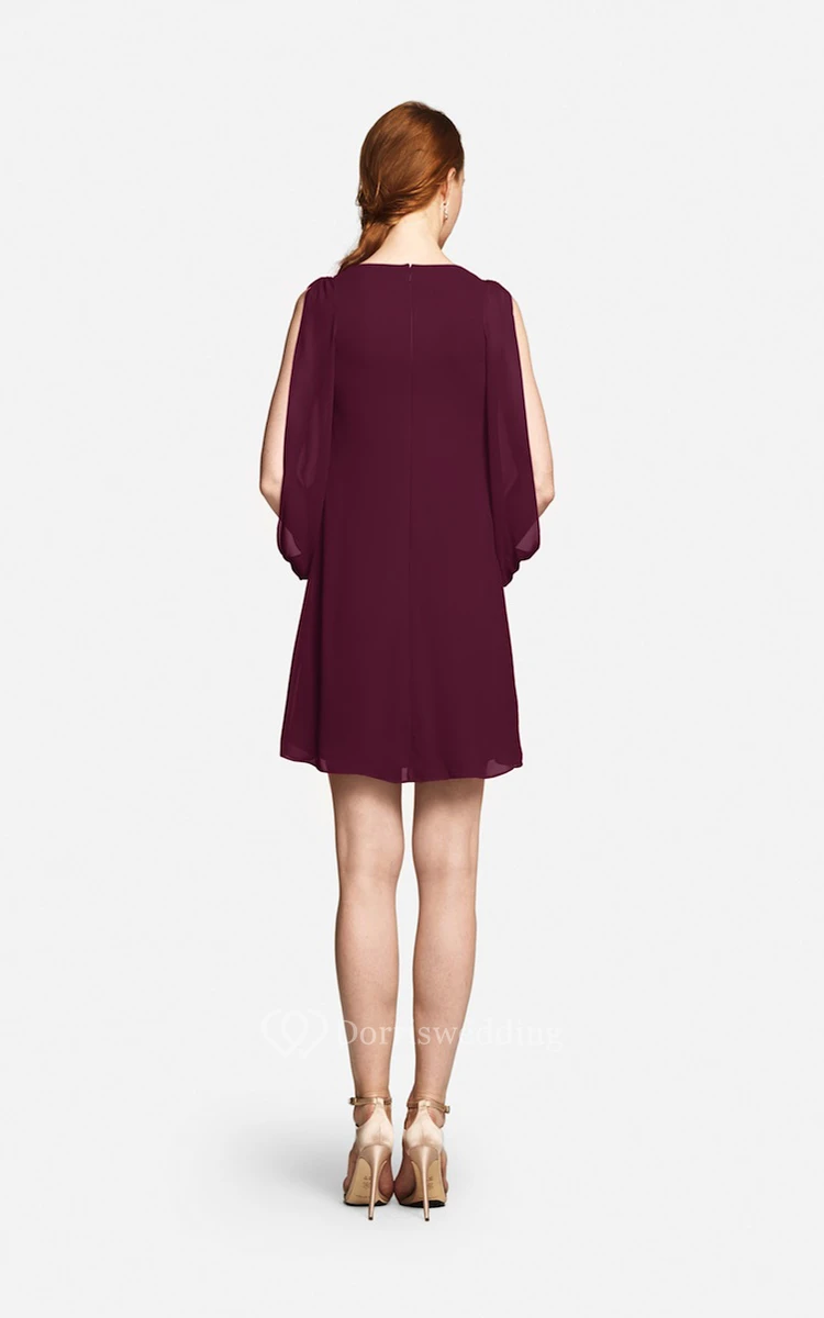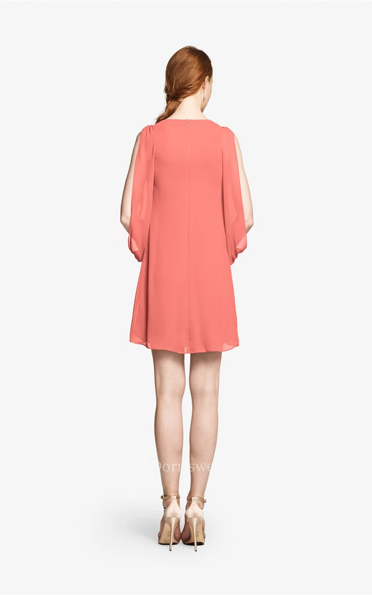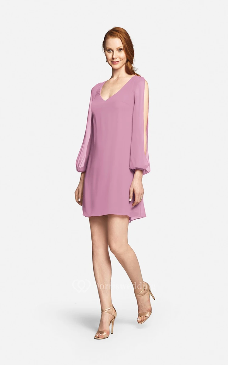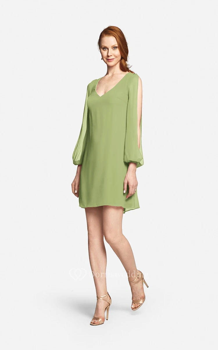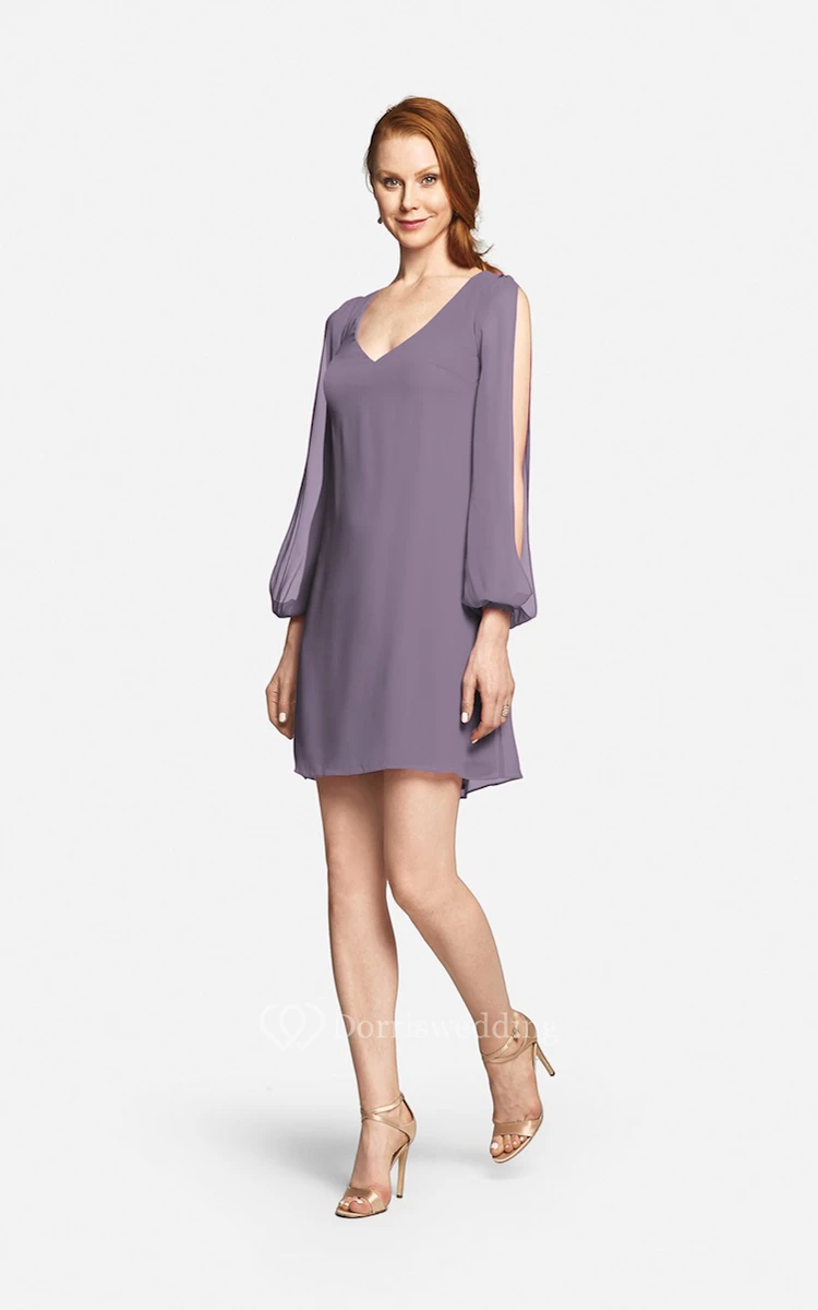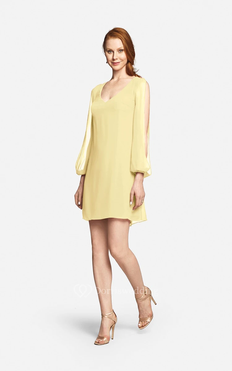 Fabulous Mini Sweetheart V-neck Chiffon Dress With Long Sleeves