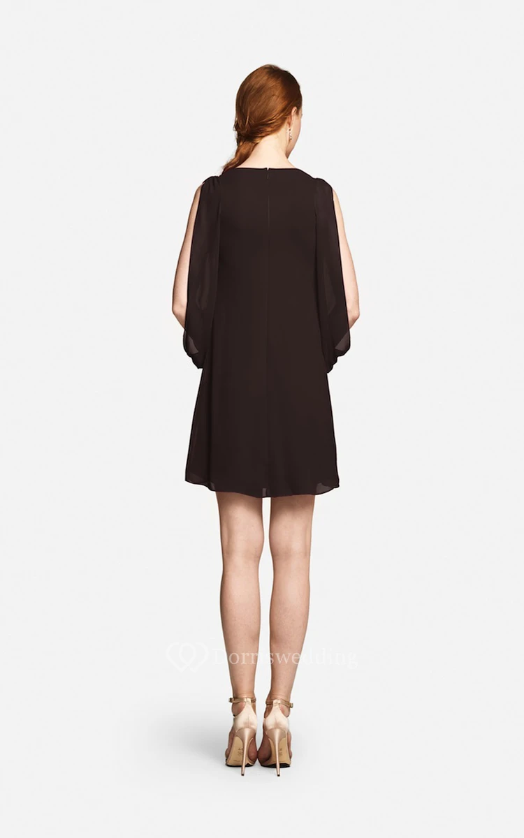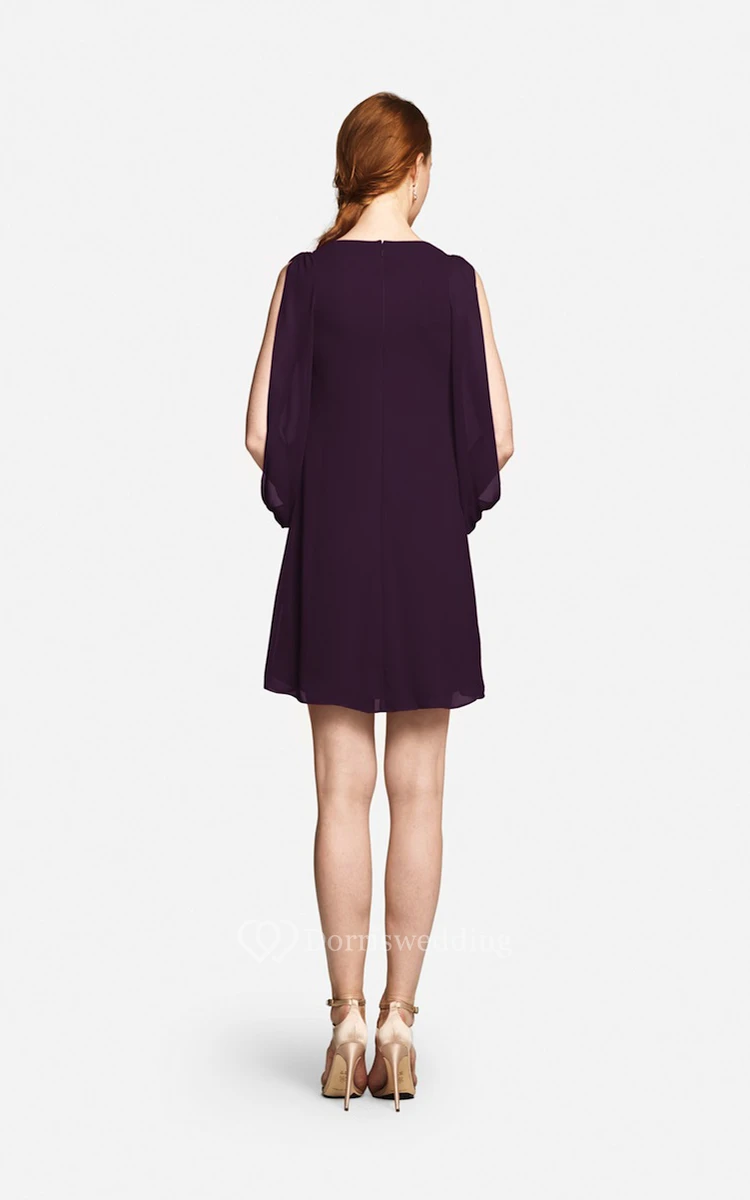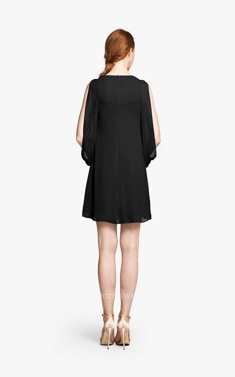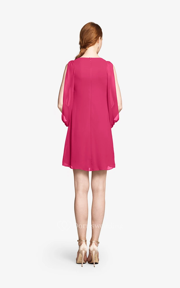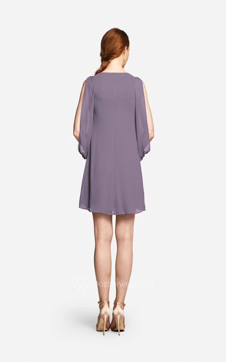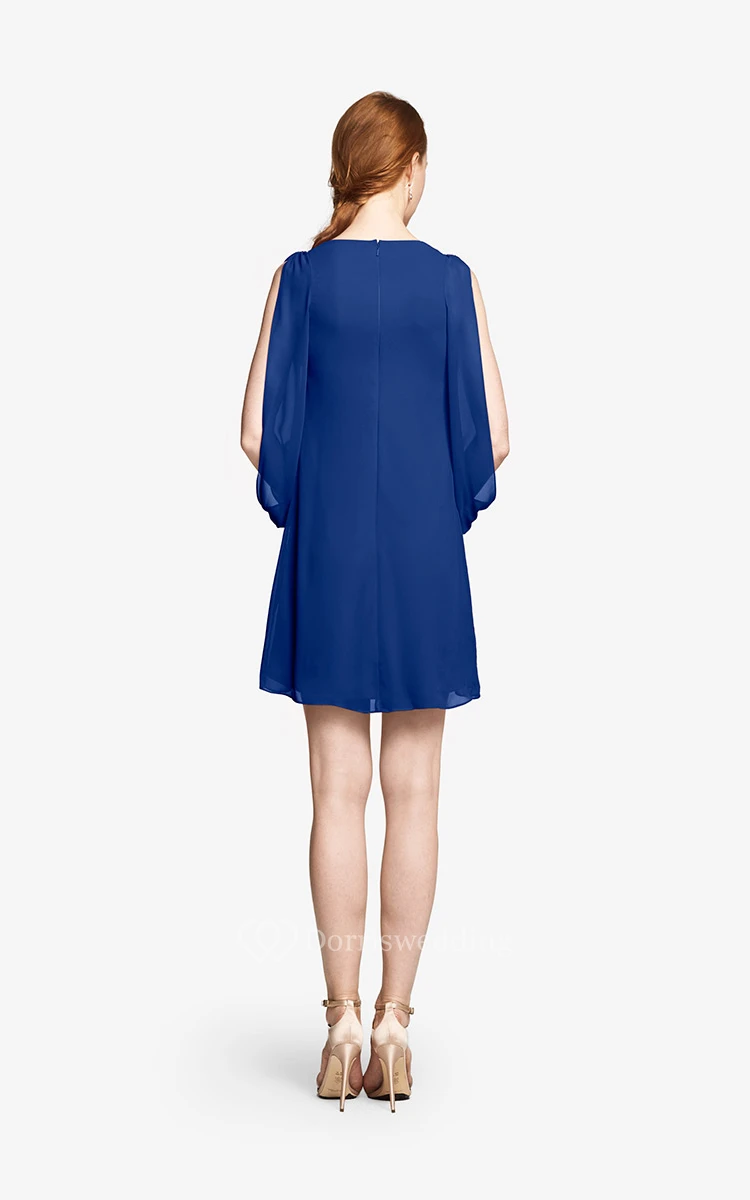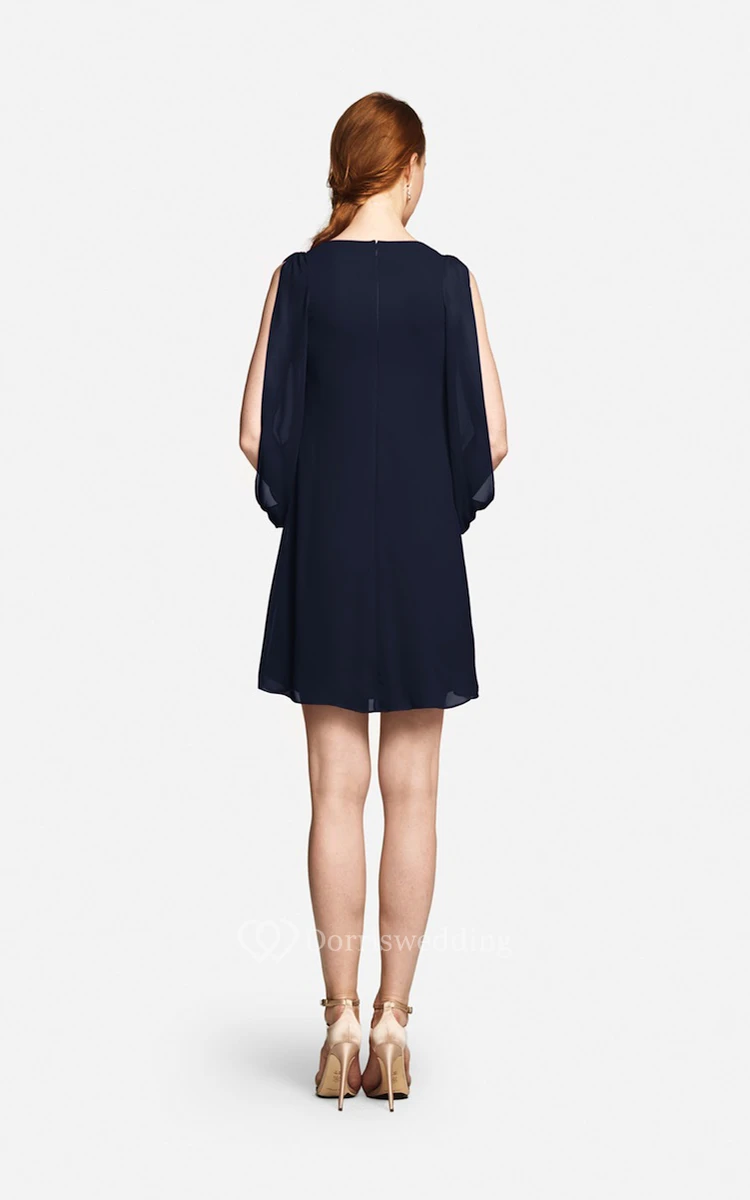 Fabulous Mini Sweetheart V-neck Chiffon Dress With Long Sleeves
