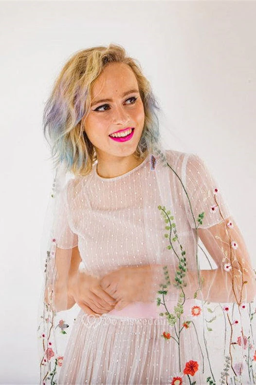 Fairy Tulle Wedding Veil With Embroidery Flower Patterns