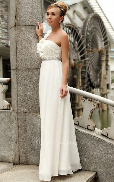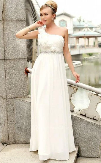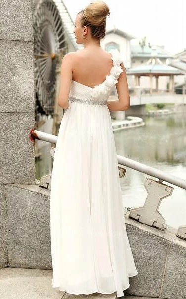 Fancy One Shouder Chiffon sheath Beading Prom Dress