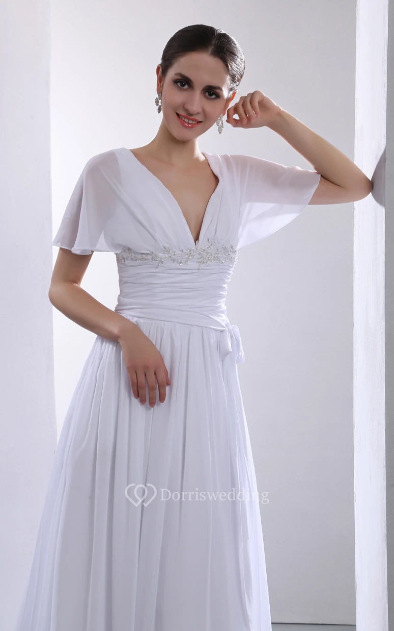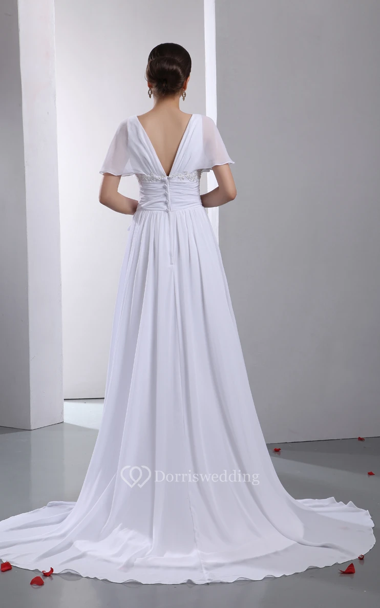 Fantastic V-Neck Capped A-Line Pleated Chiffon
