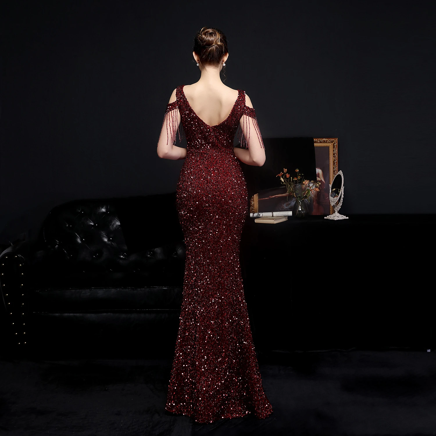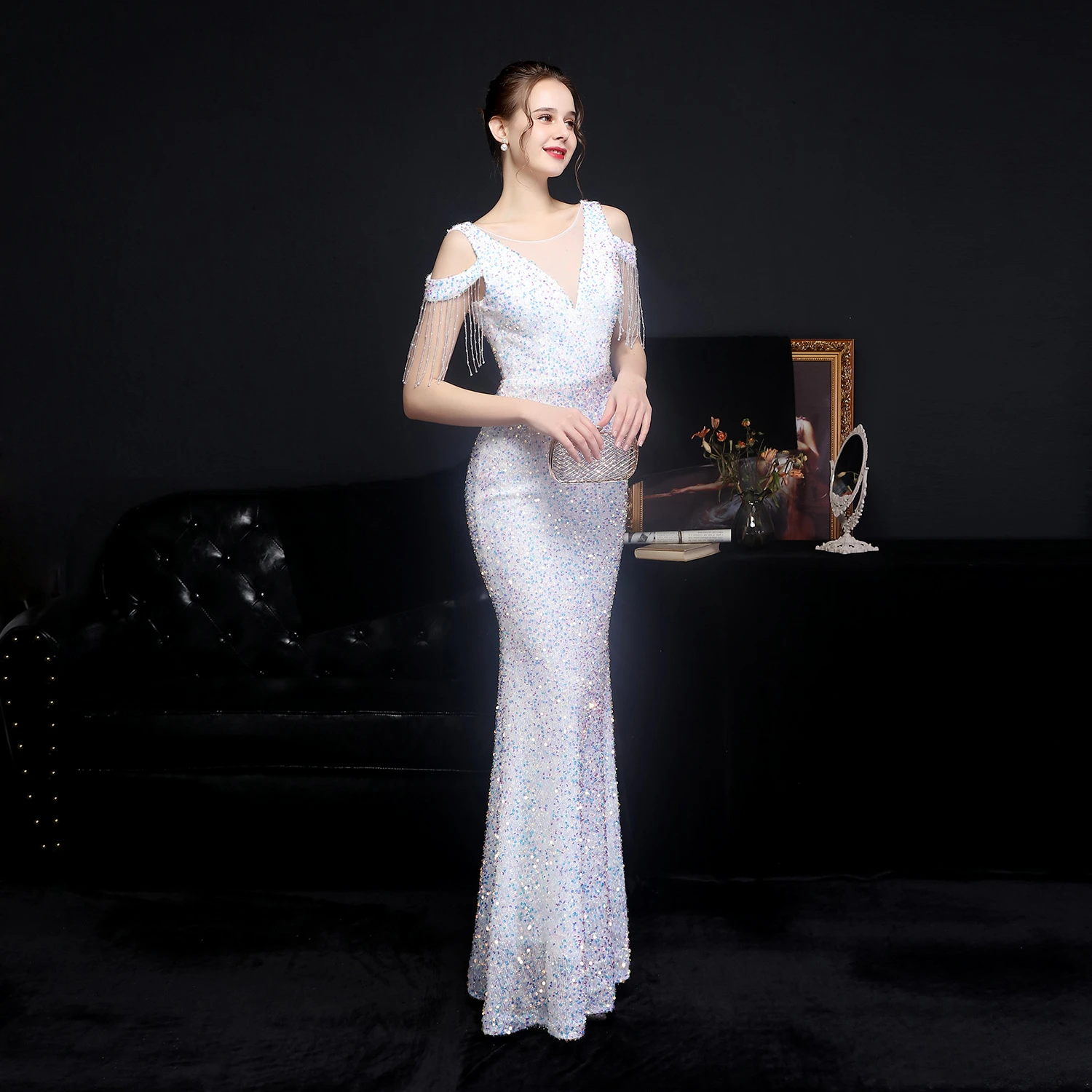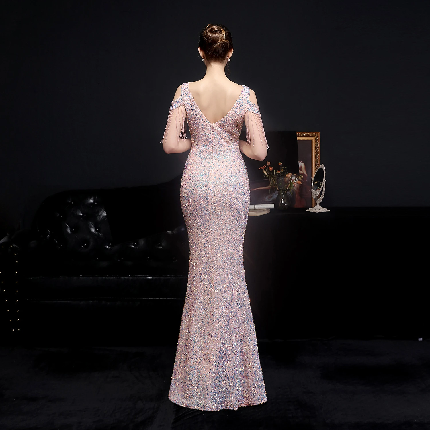 Fantasy Sequin Toast Dress Bride Long Thank You Banquet Slim Fishtail Skirt Wedding Car Model Exhibition Dress