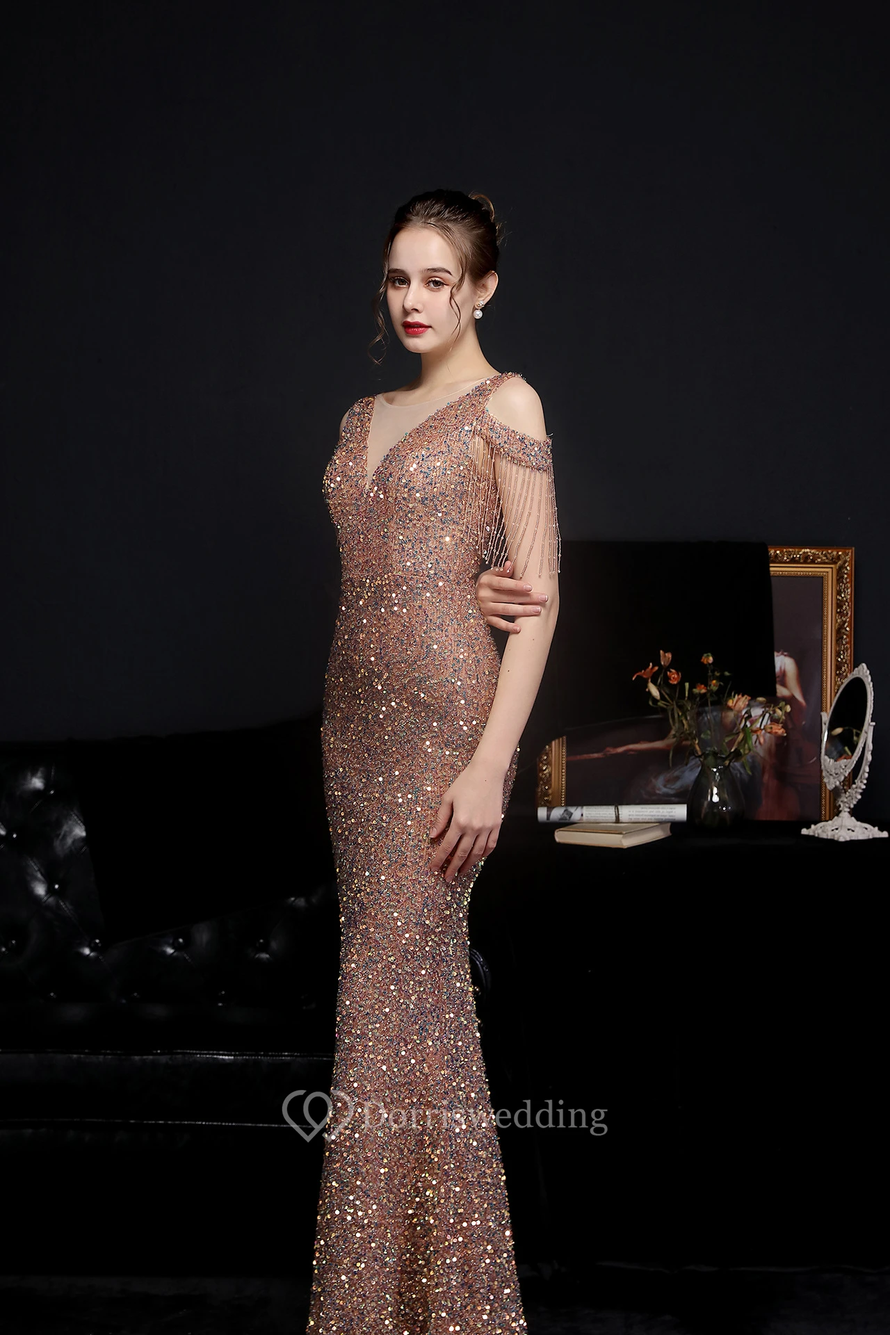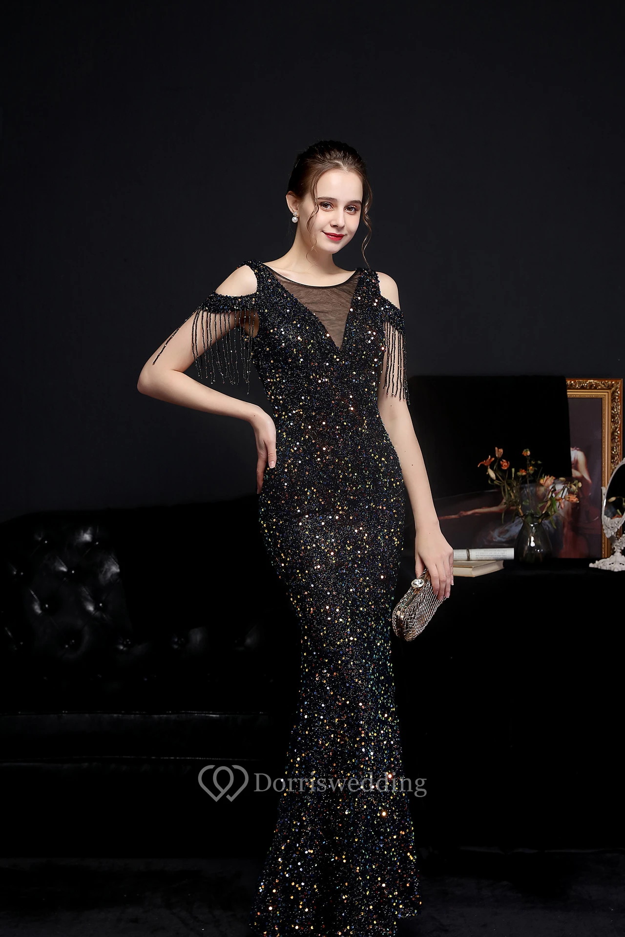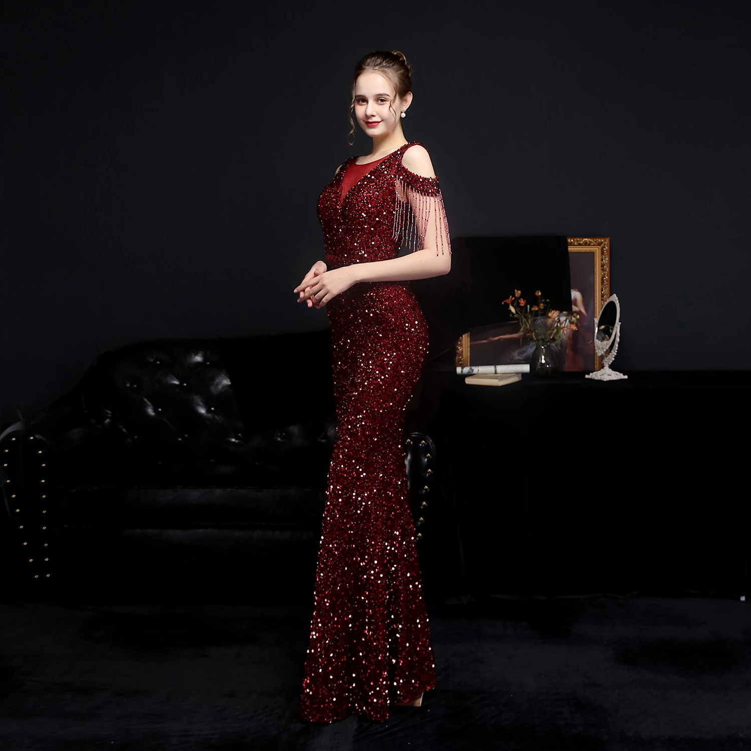 Fantasy Sequin Toast Dress Bride Long Thank You Banquet Slim Fishtail Skirt Wedding Car Model Exhibition Dress