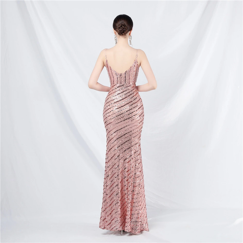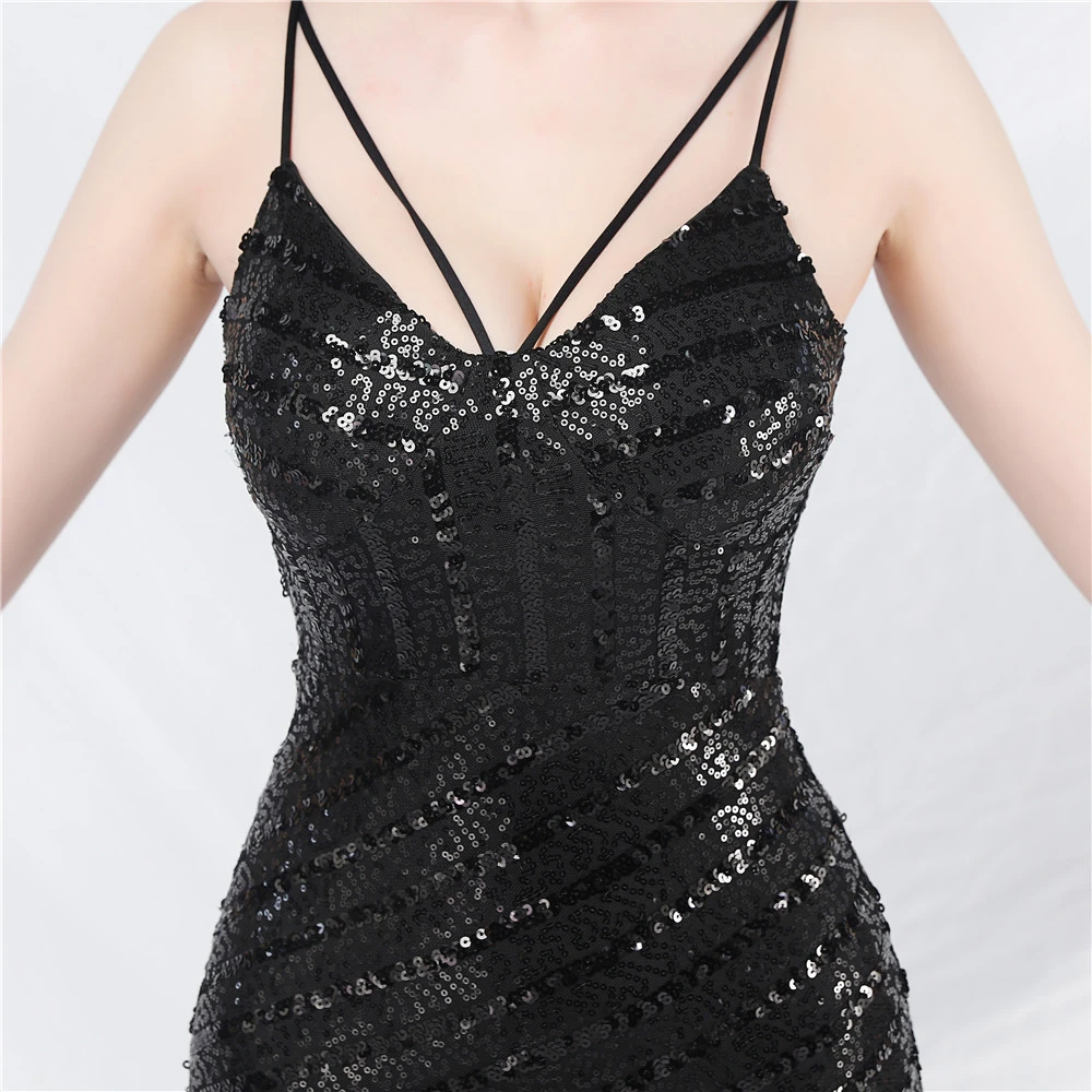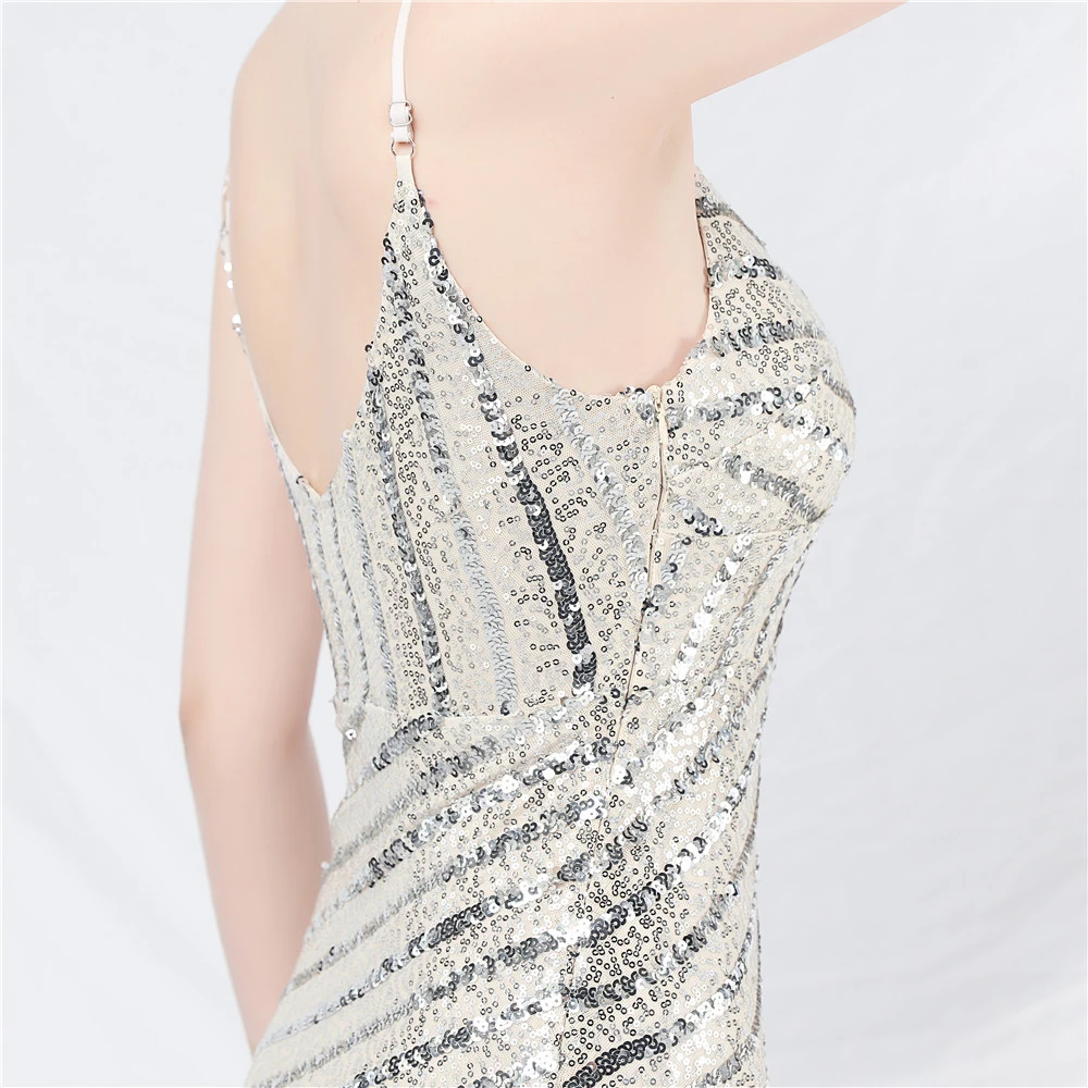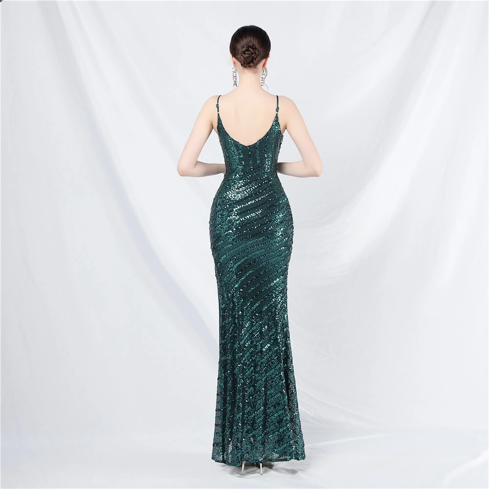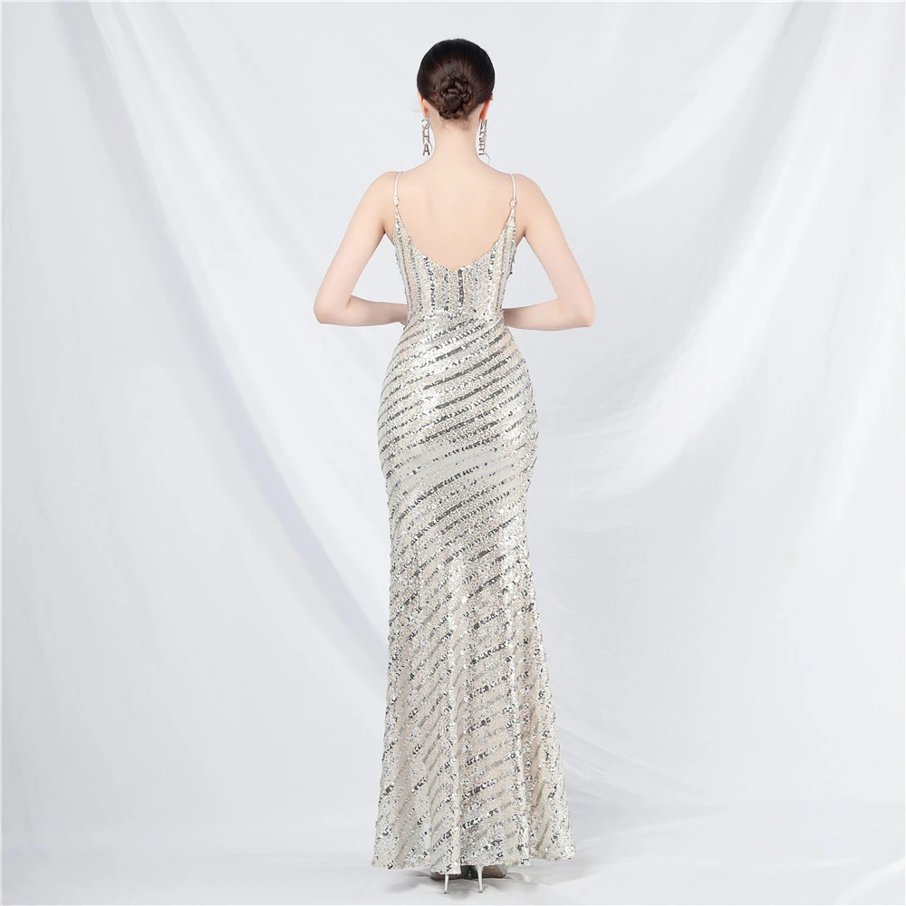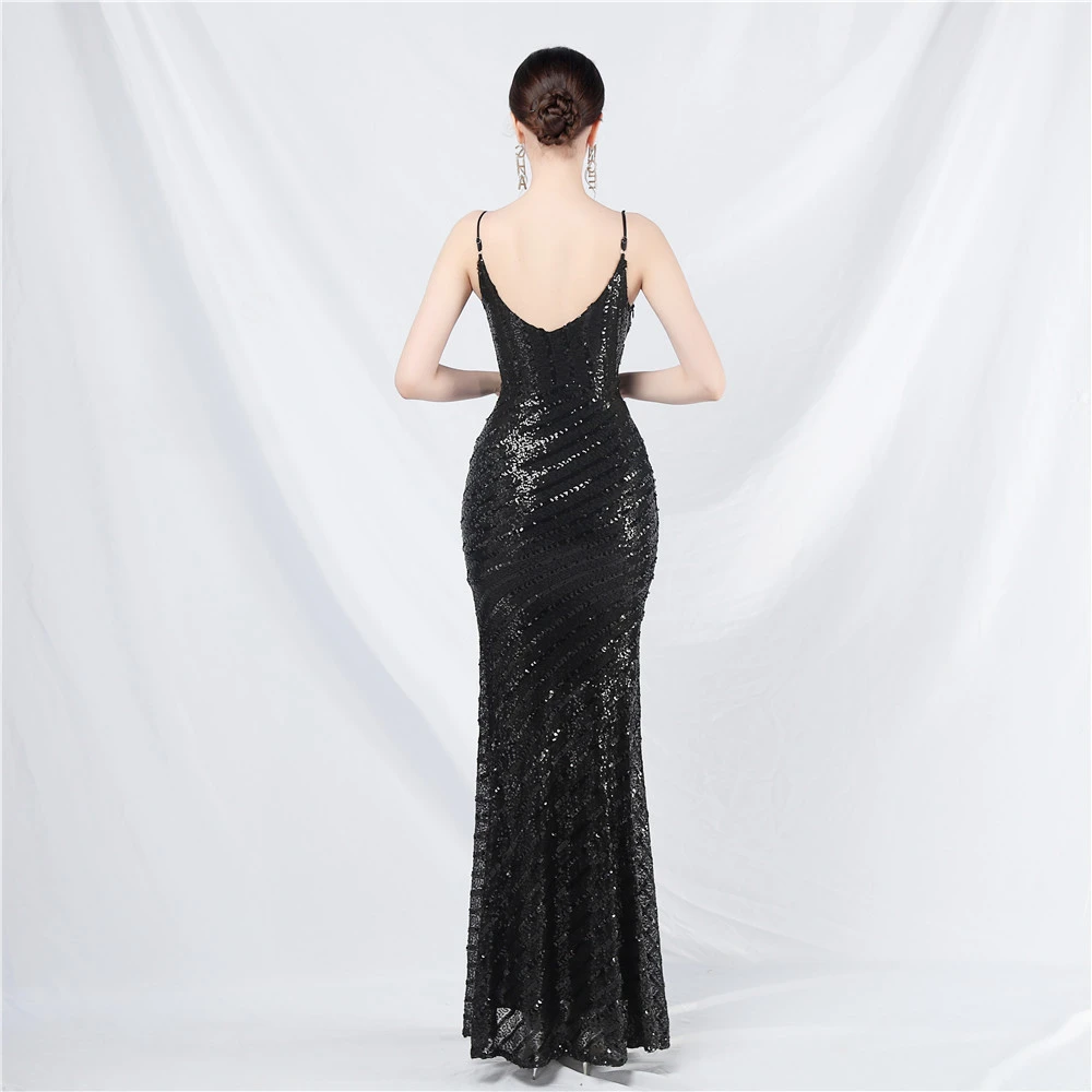 Fashionable Women'S Suspender Low-Cut Sequined Evening Dress