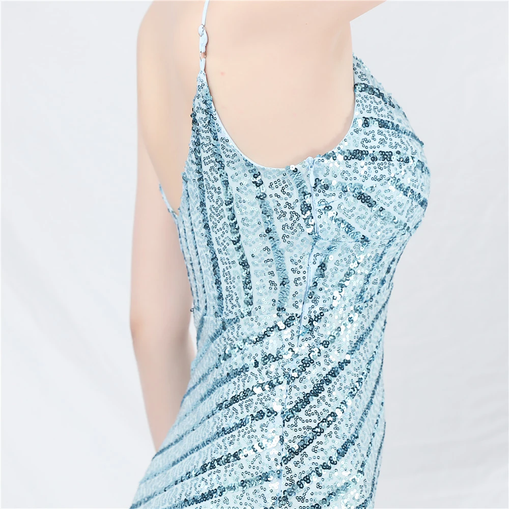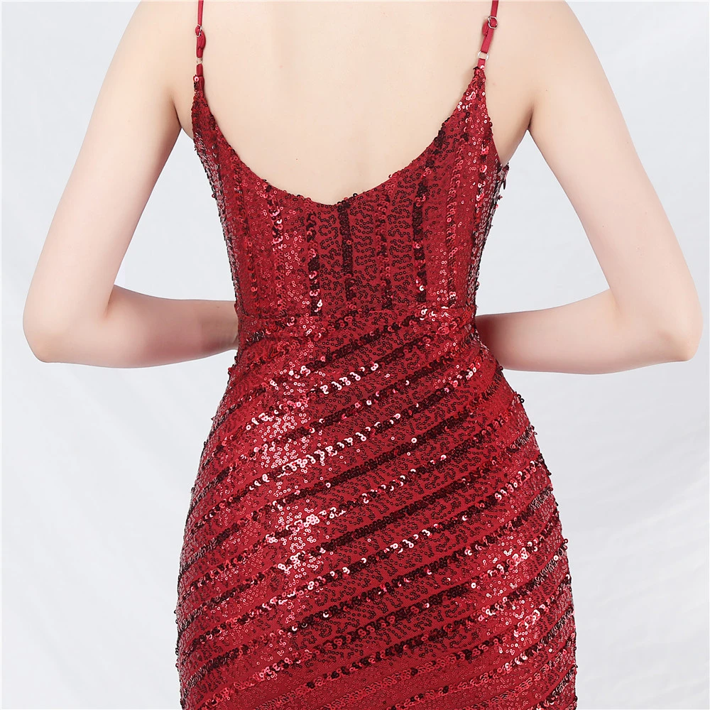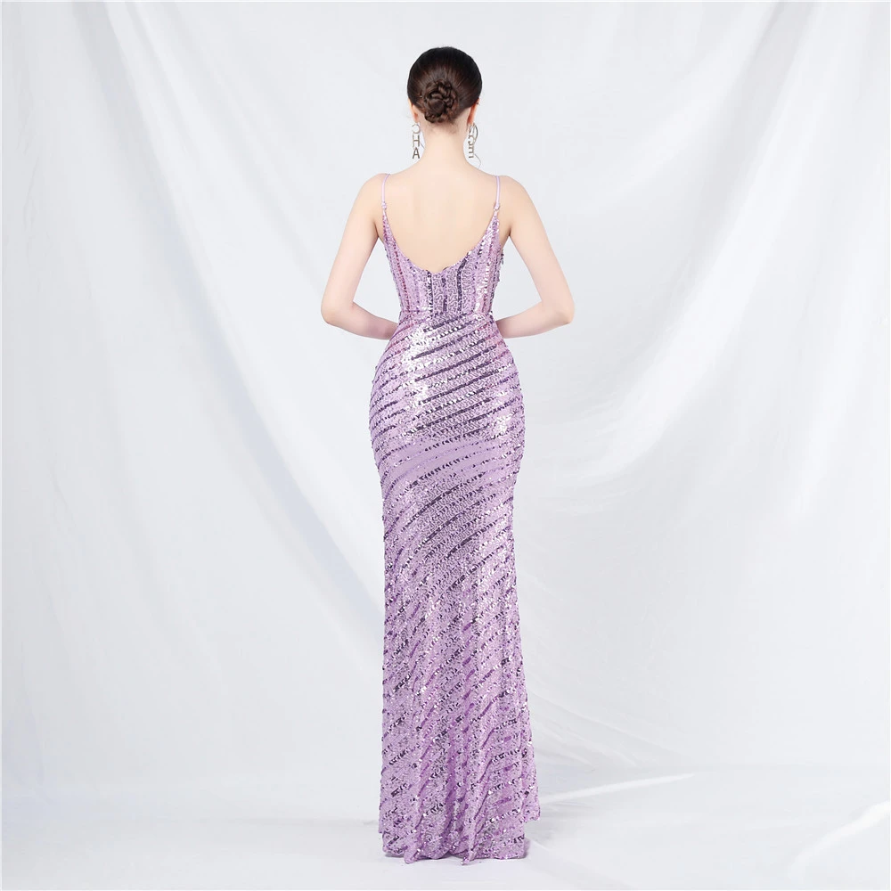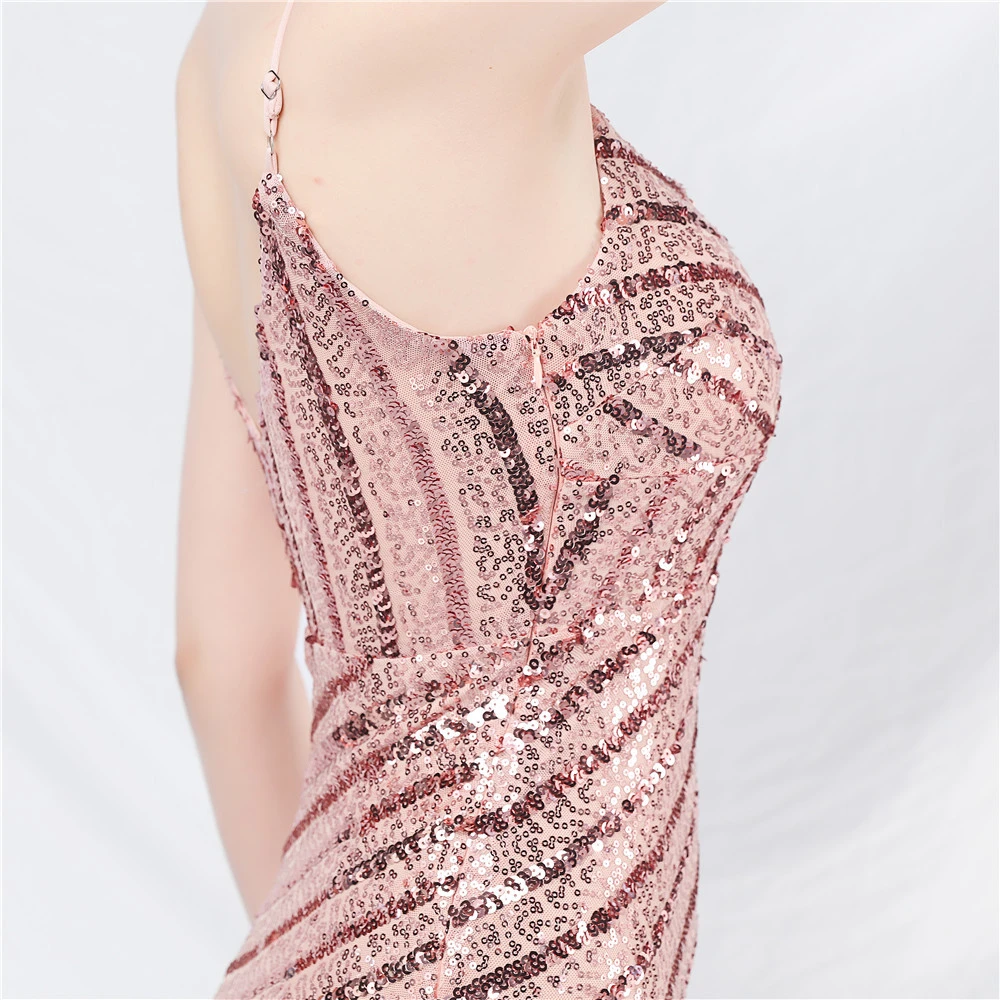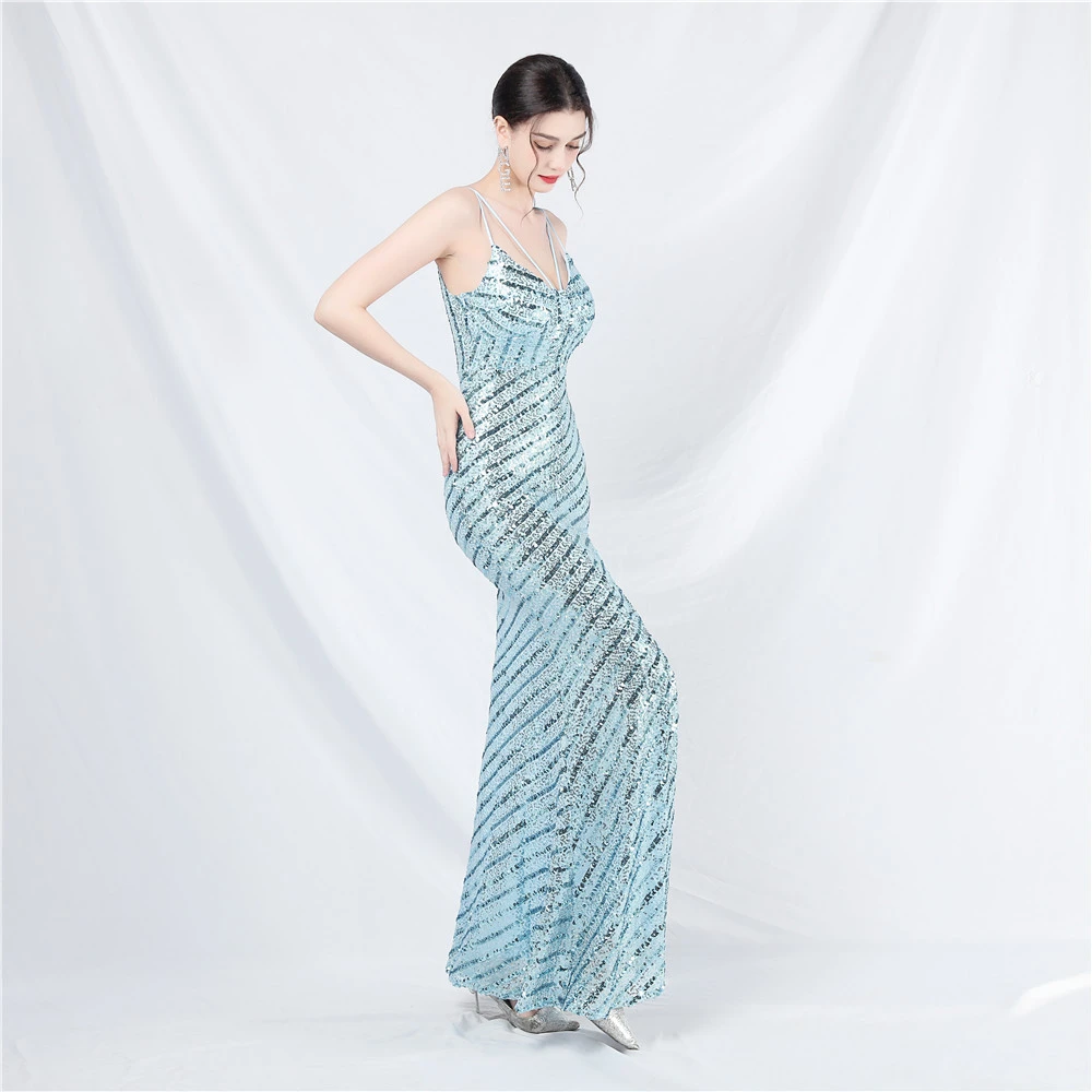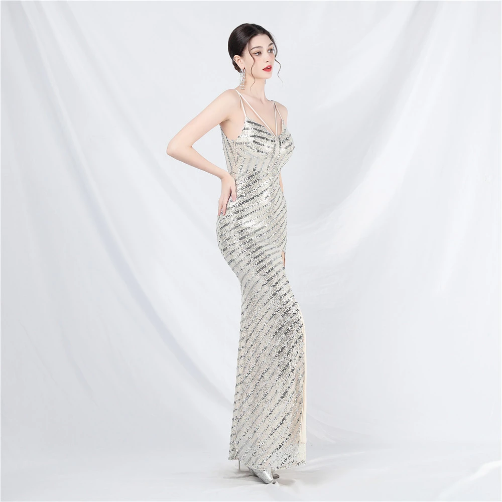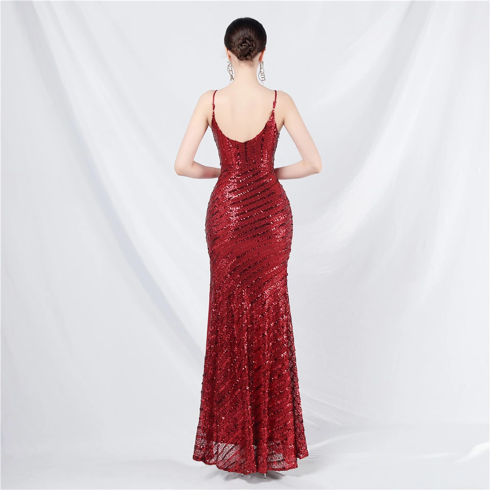 Fashionable Women'S Suspender Low-Cut Sequined Evening Dress